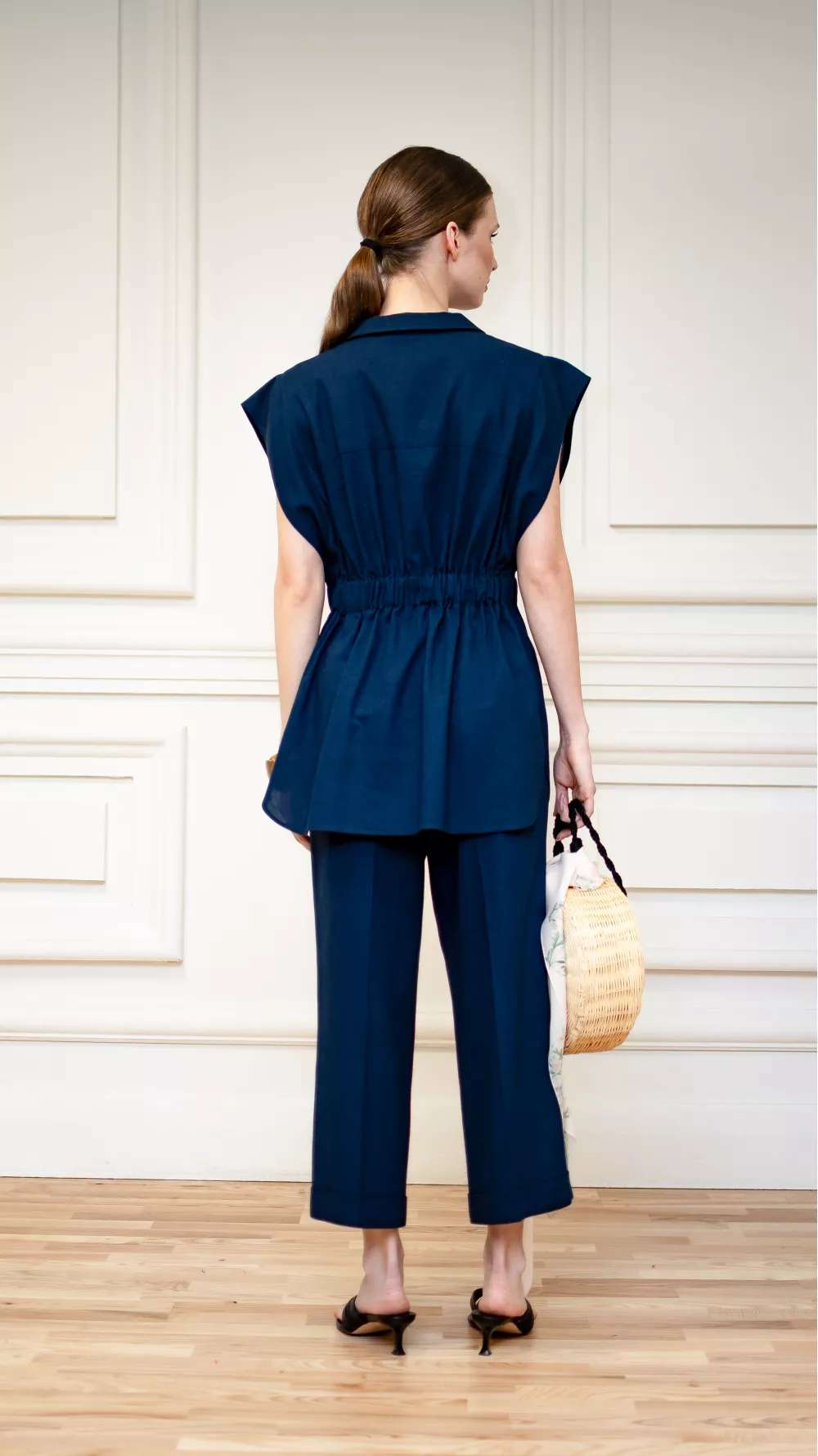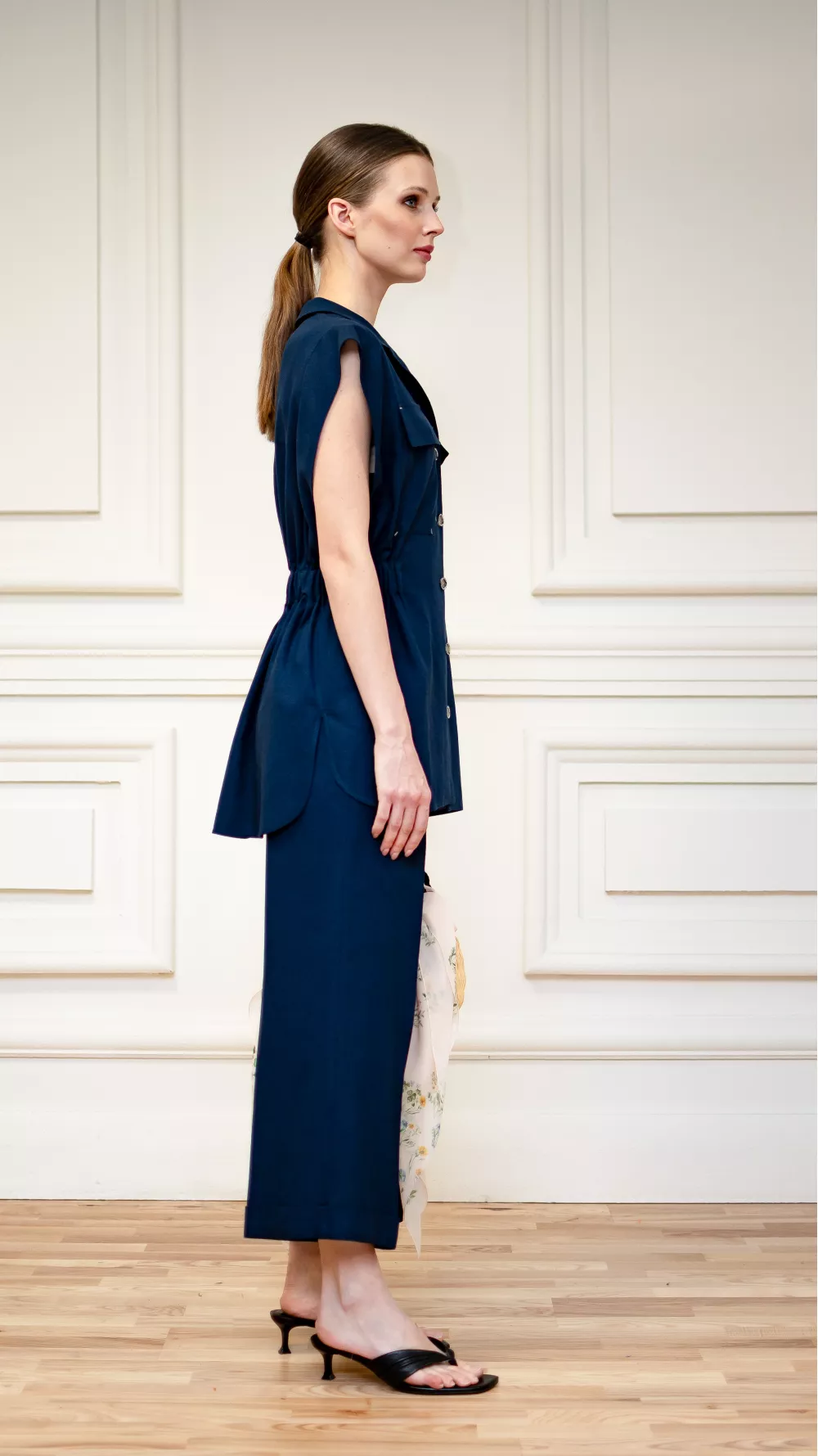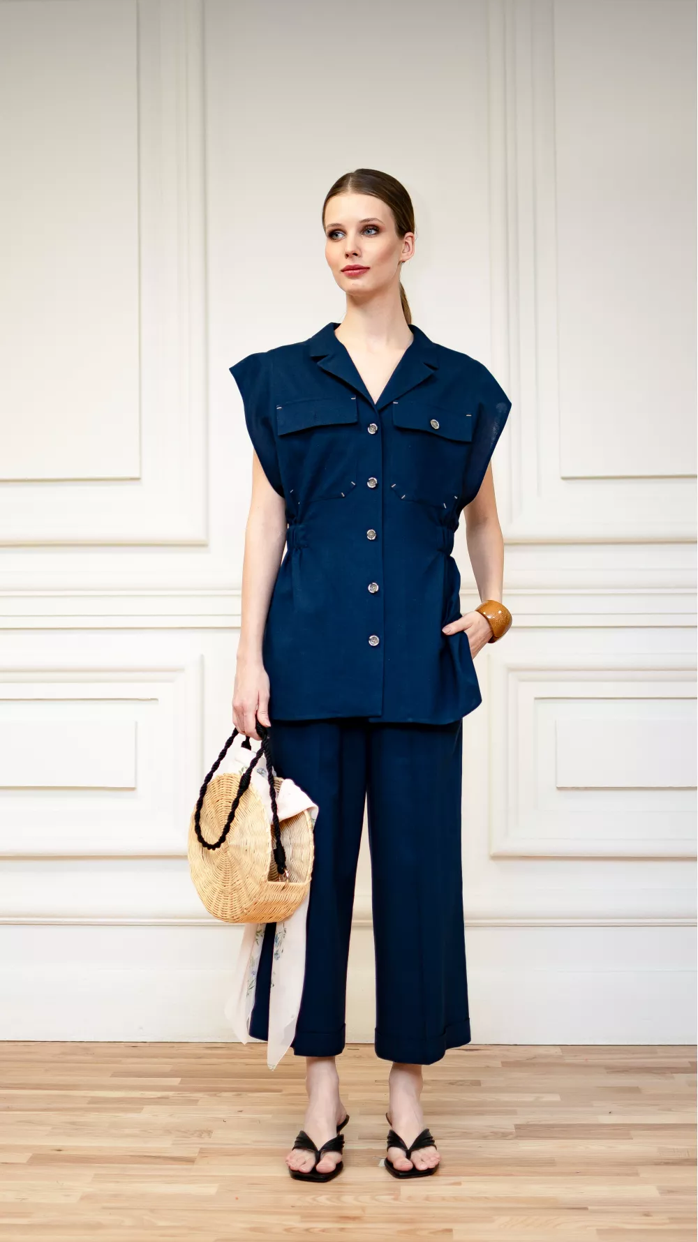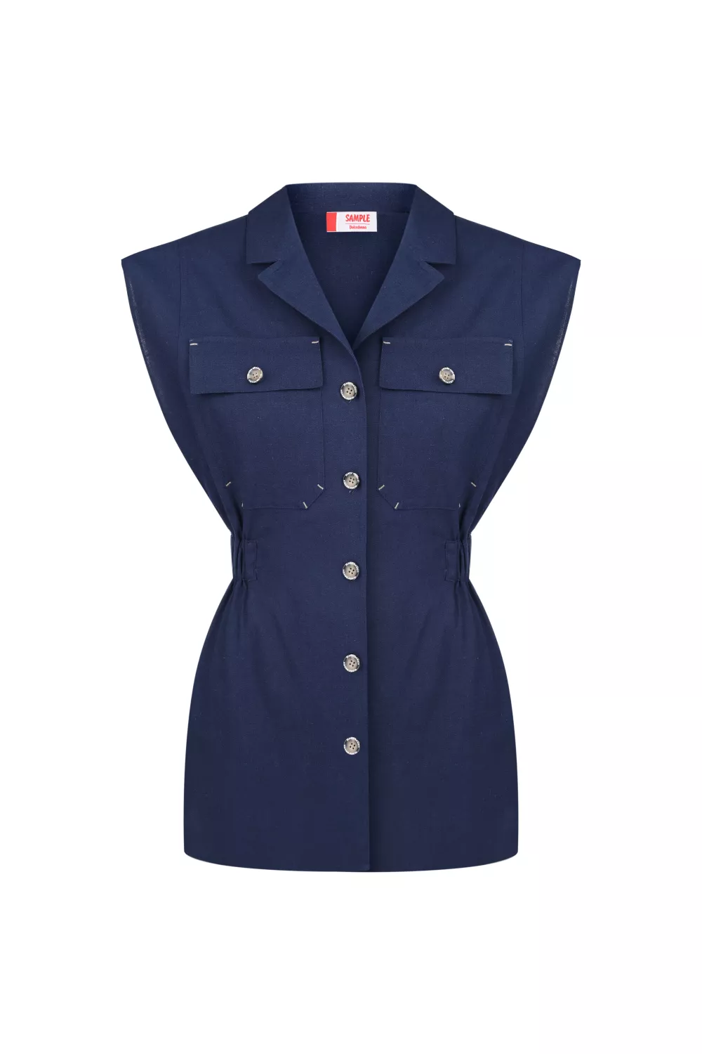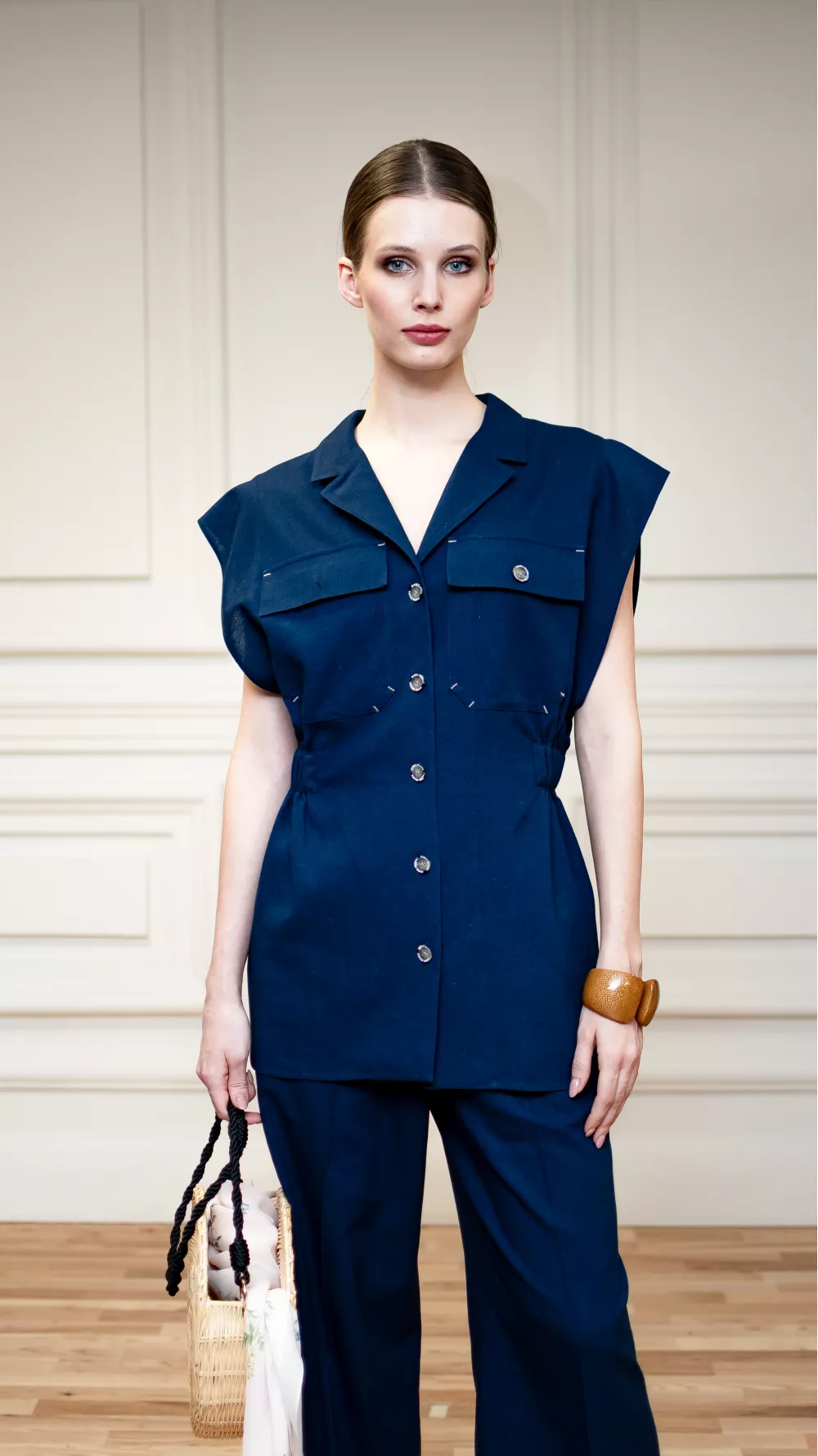 Льняная темно-синяя рубашка в стиле сафари Таубер