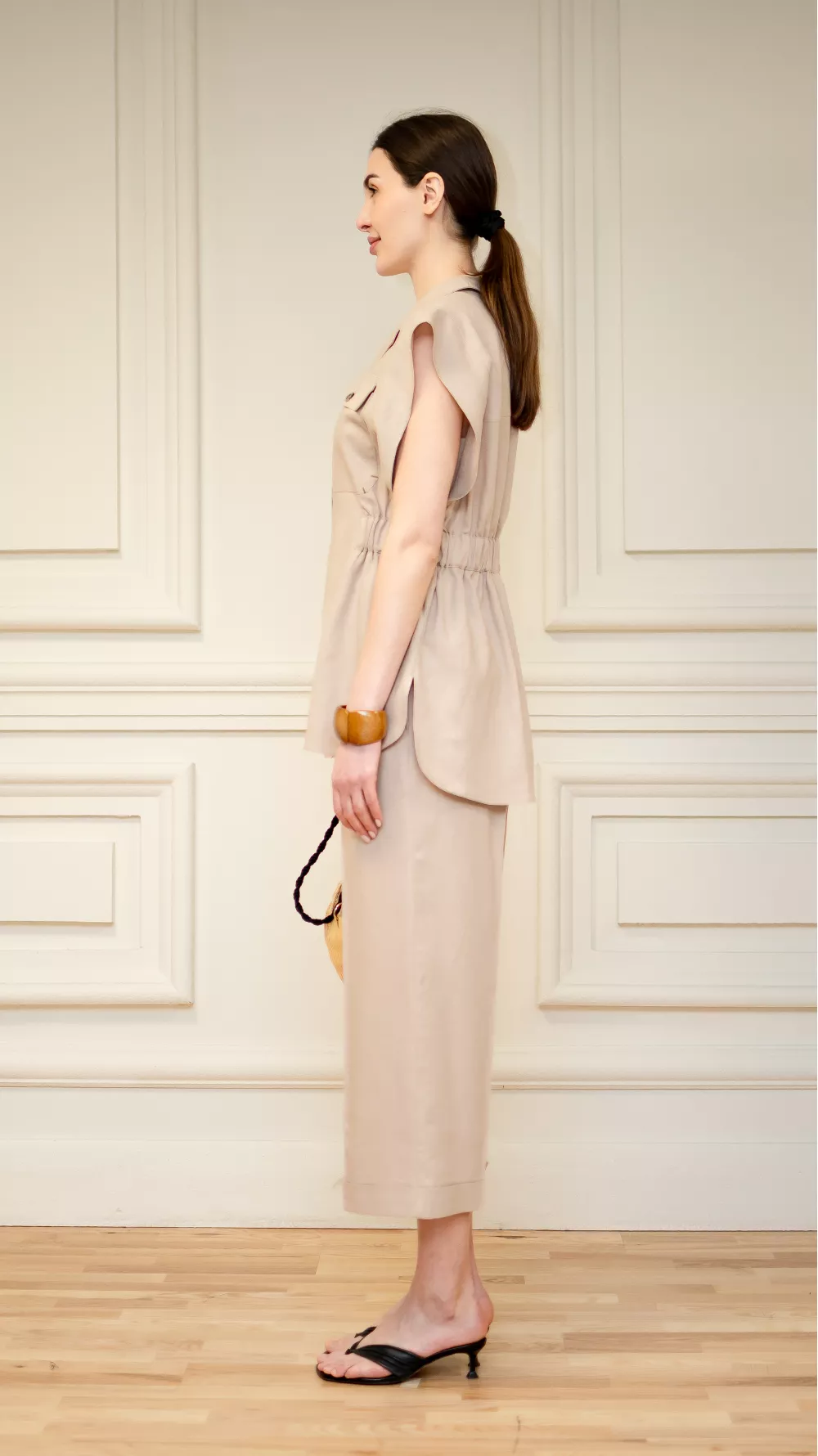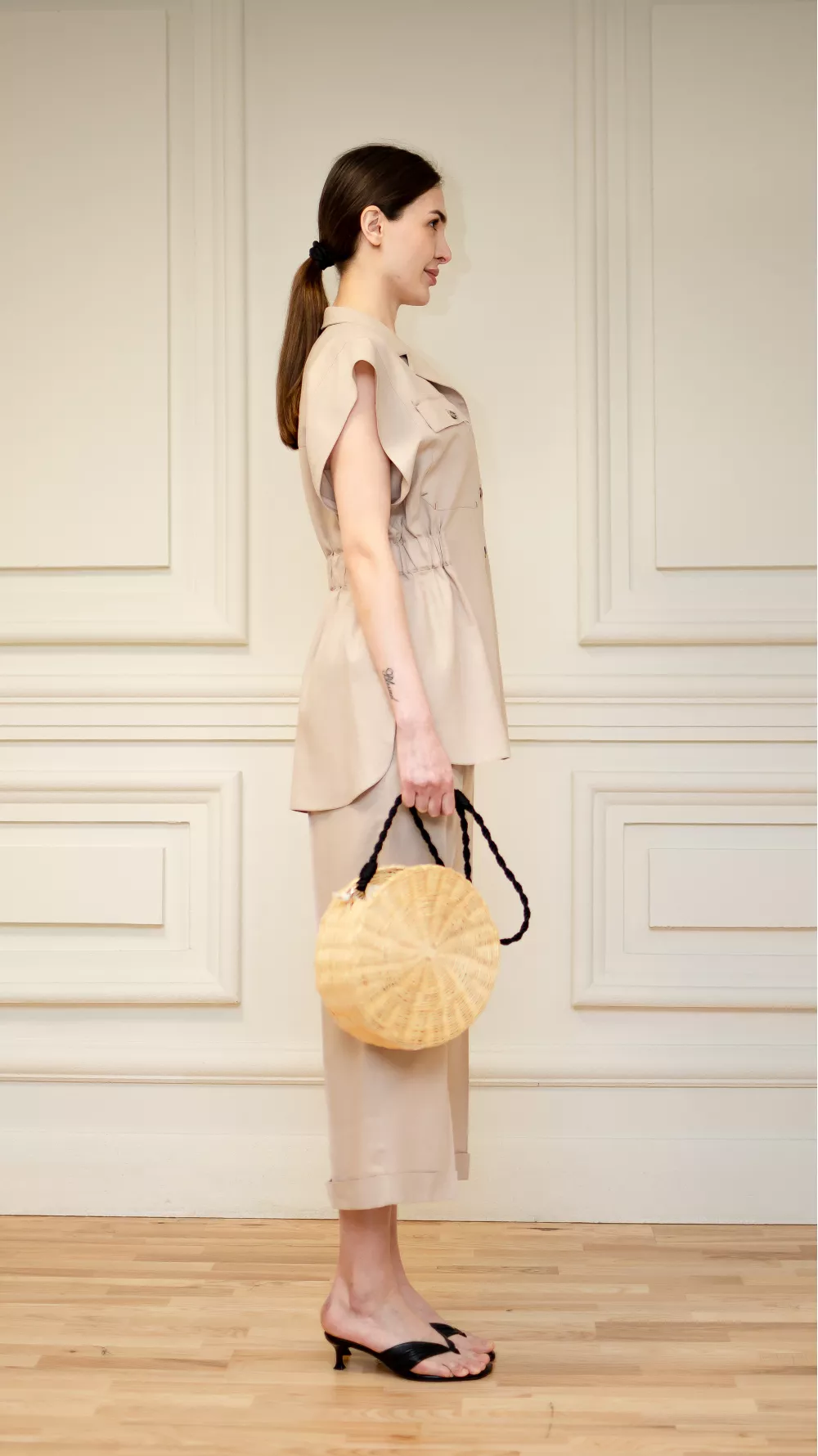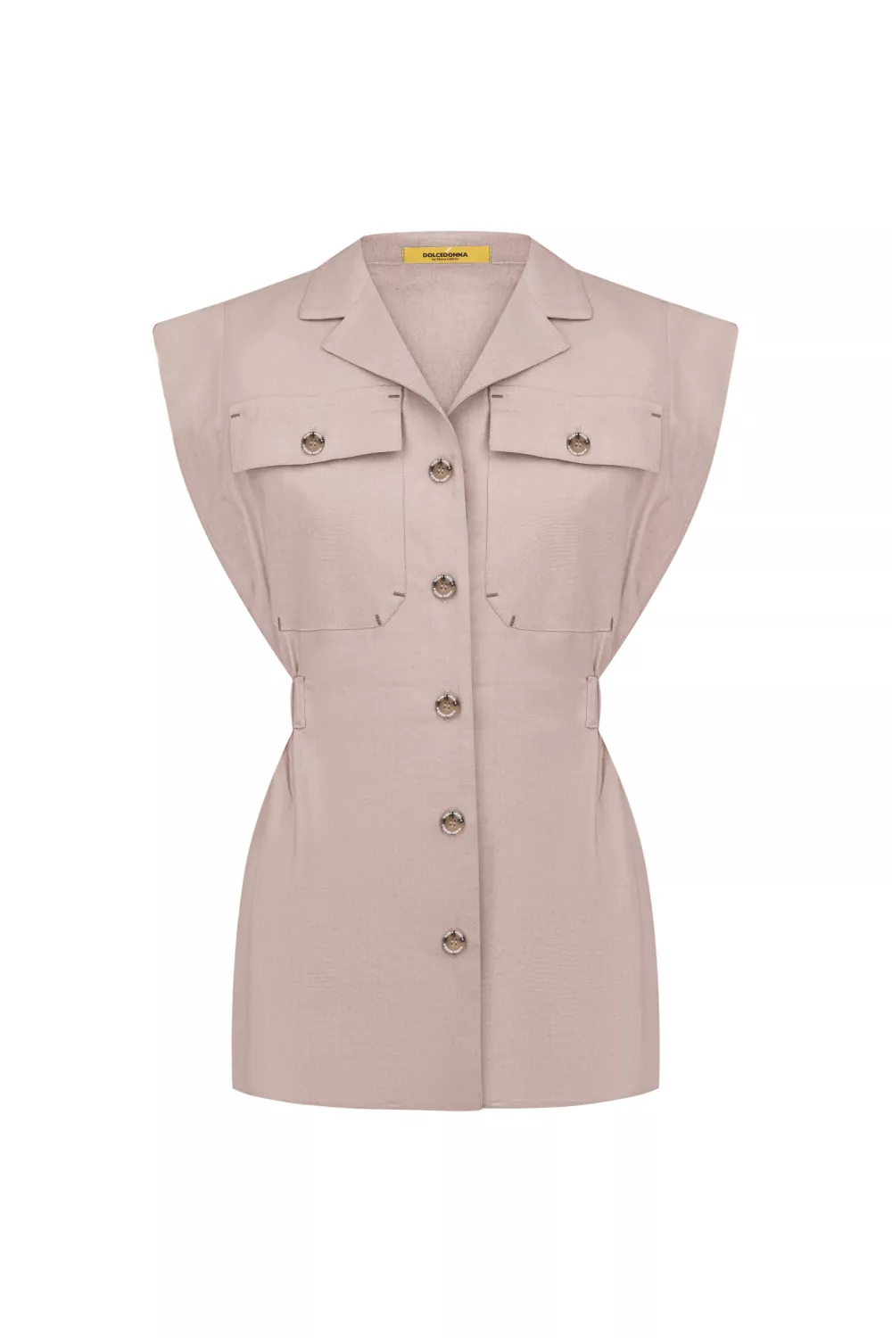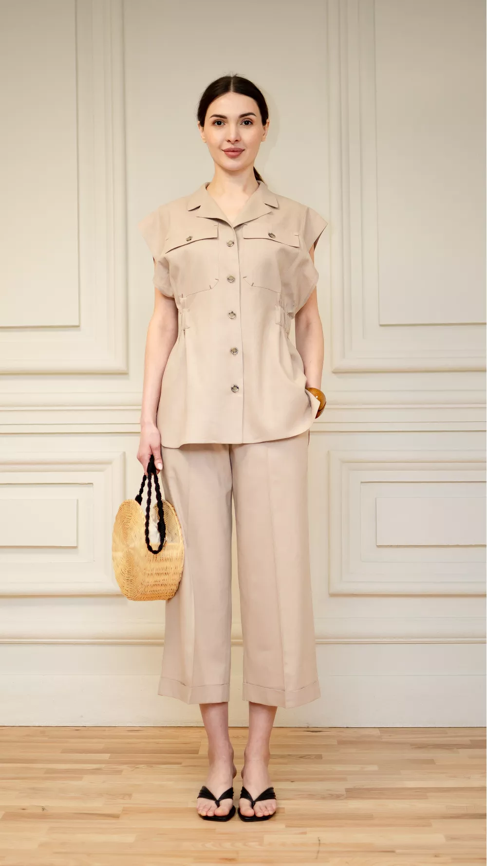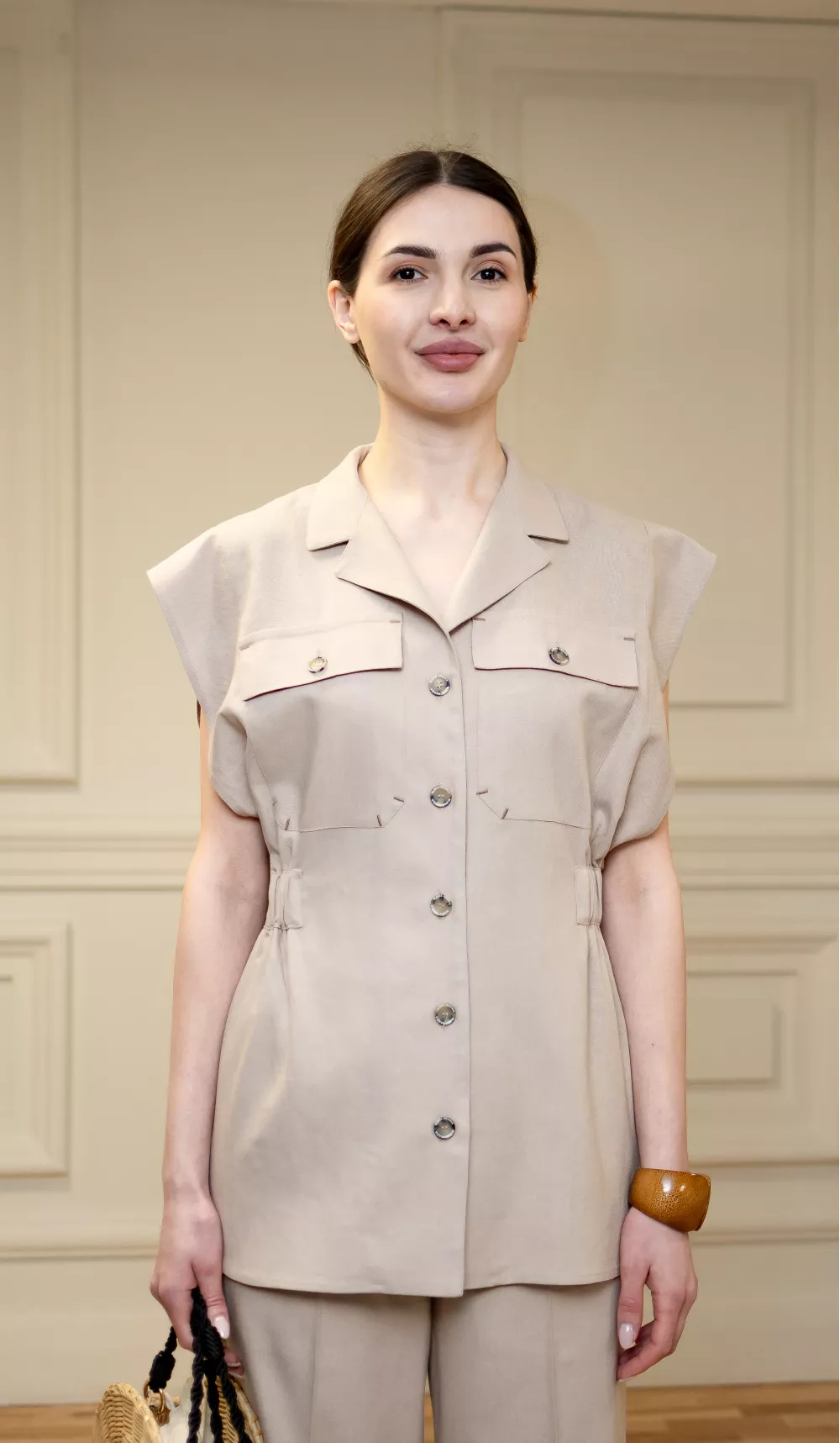 Рубашка в стиле сафари со свободной проймой в рукавах и резинкой на спинке для приталенности модели