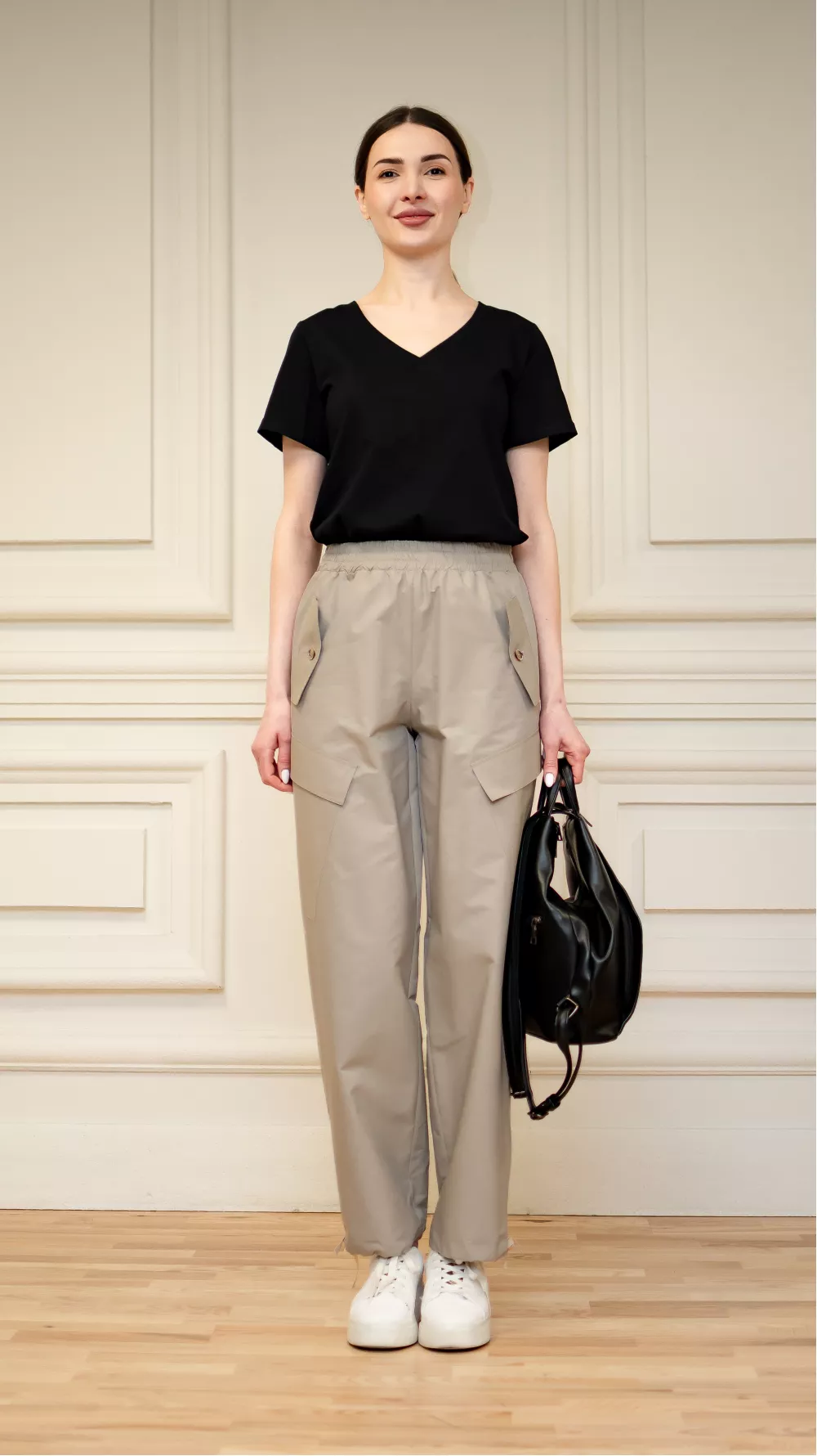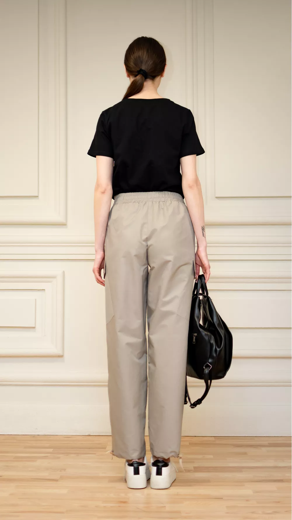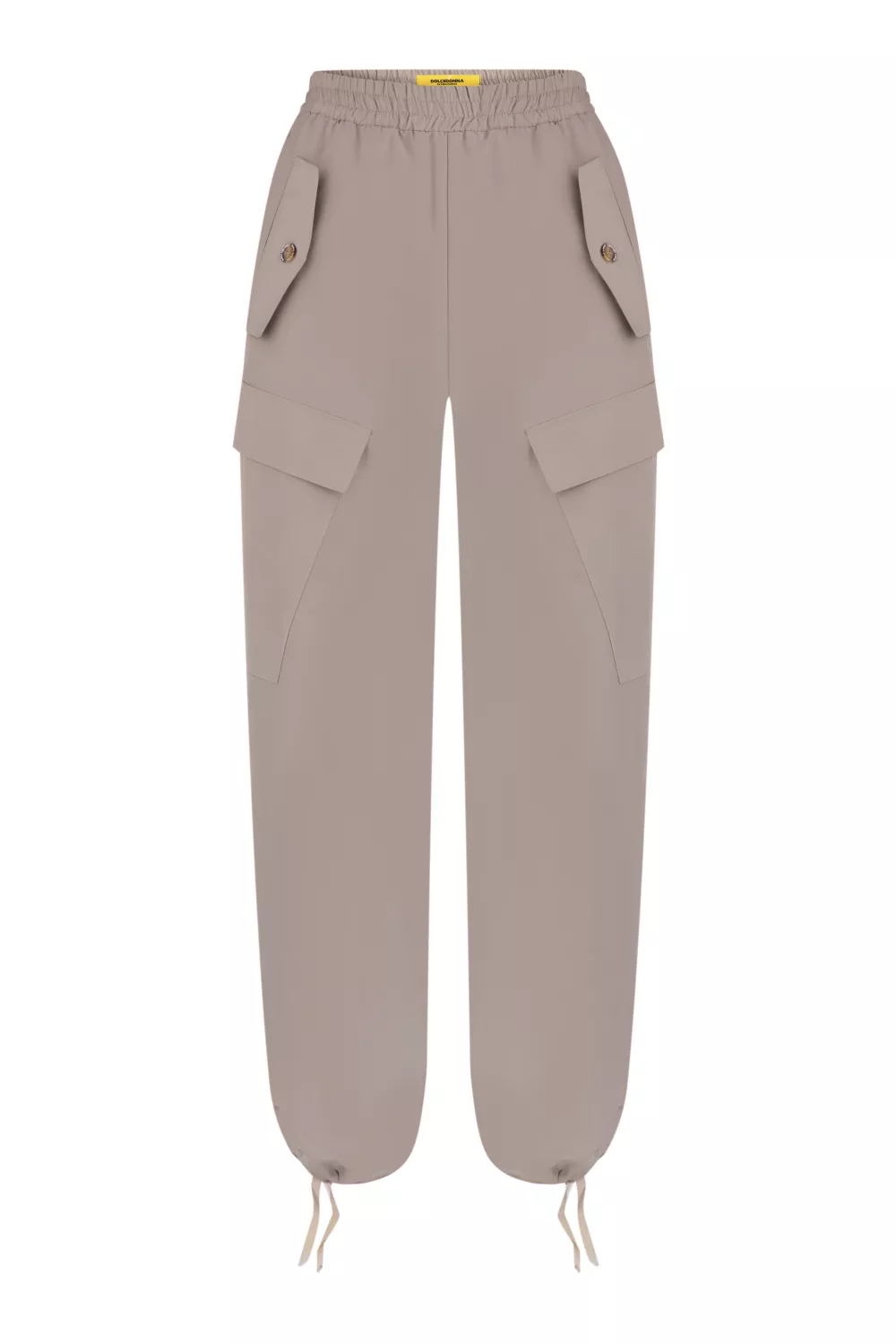 Трендовые брюки в спортивном стиле с накладными карманами и дополнительными завязками, регулируемыми снизу