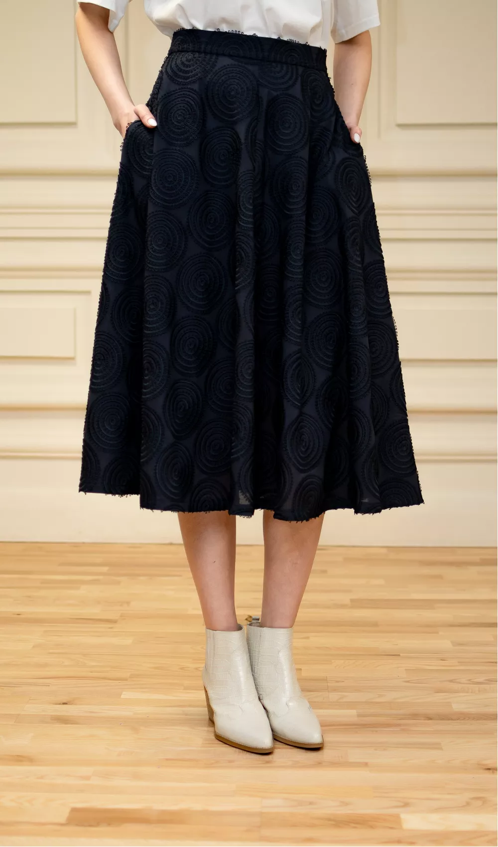 Романтическая юбка с кружевом, покрою солнце-клеш, идеально подчеркивающая талию