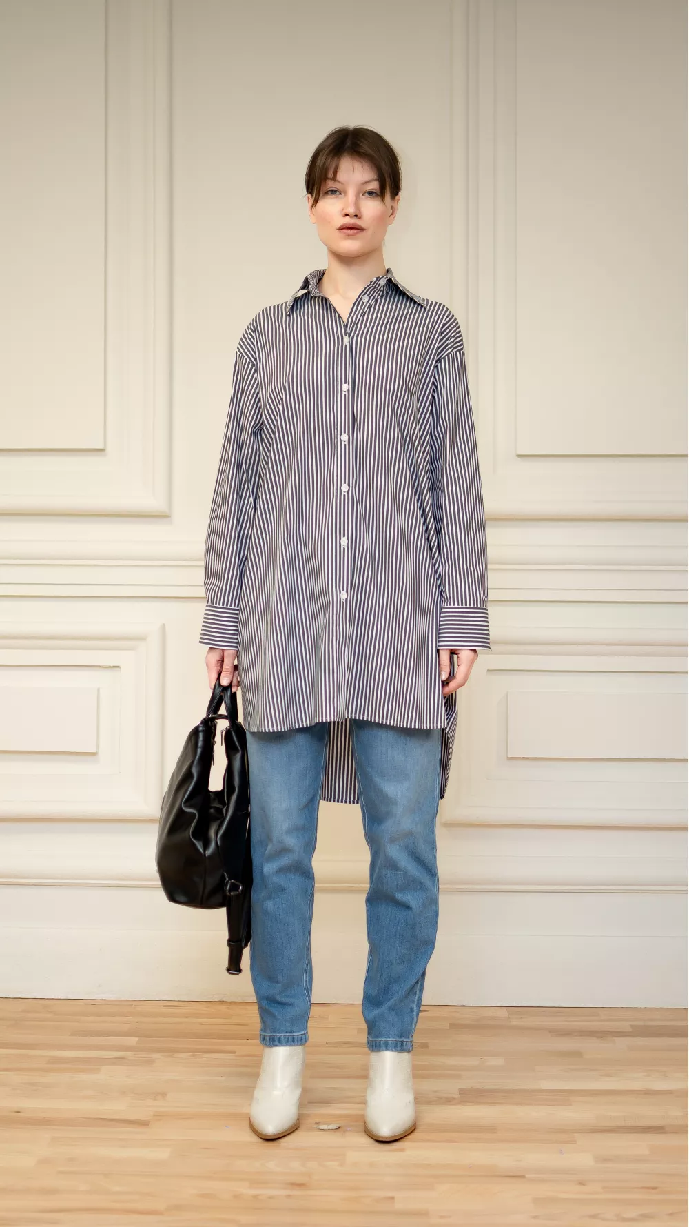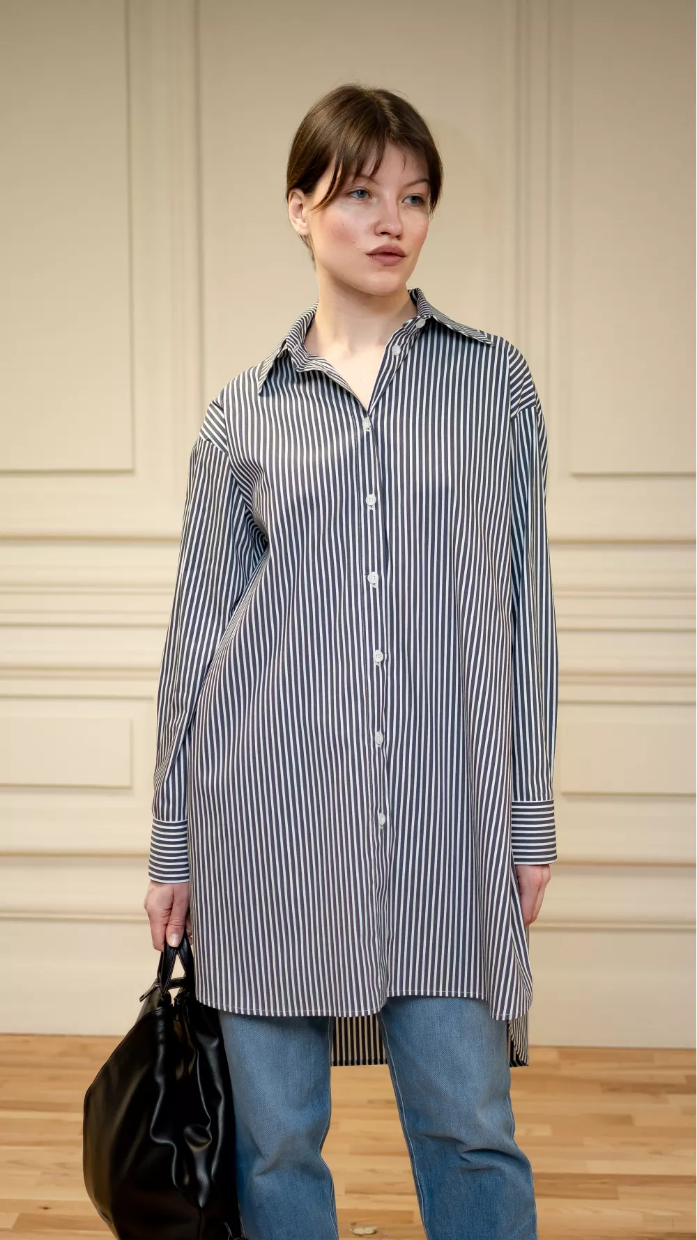 Длинная оверсайз рубашка с ассиметричной длиной станет стильным решением для ваших образов