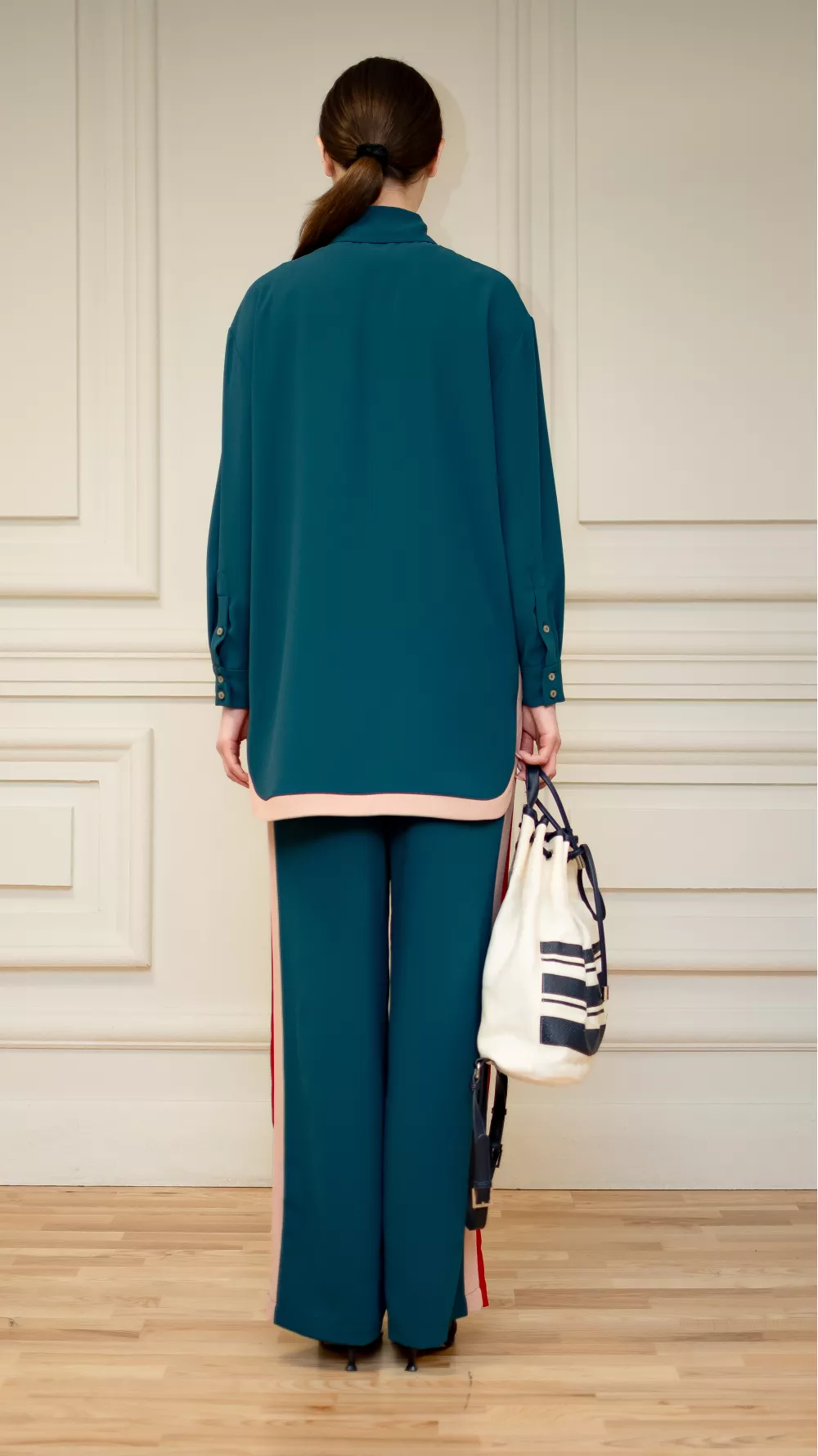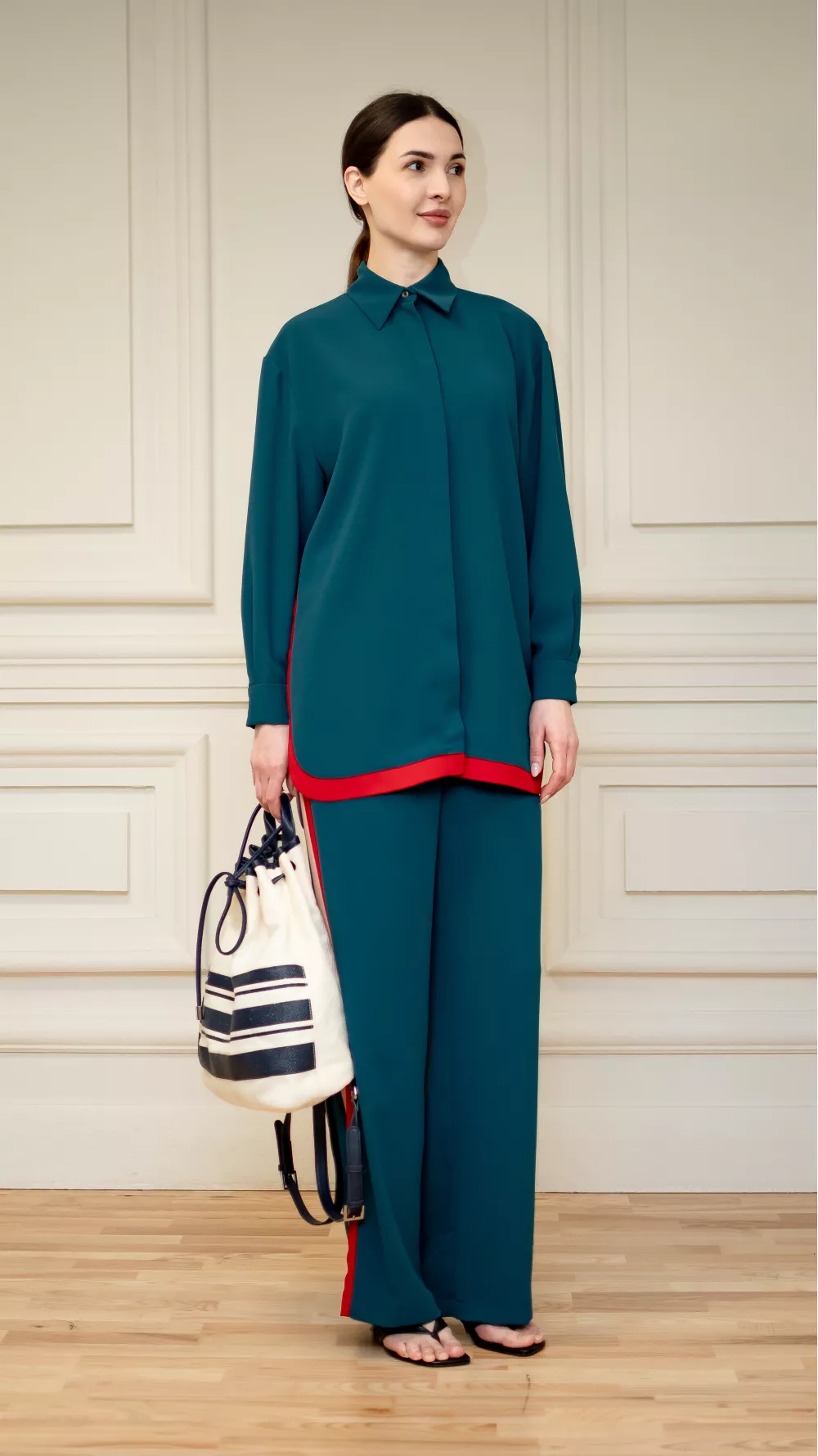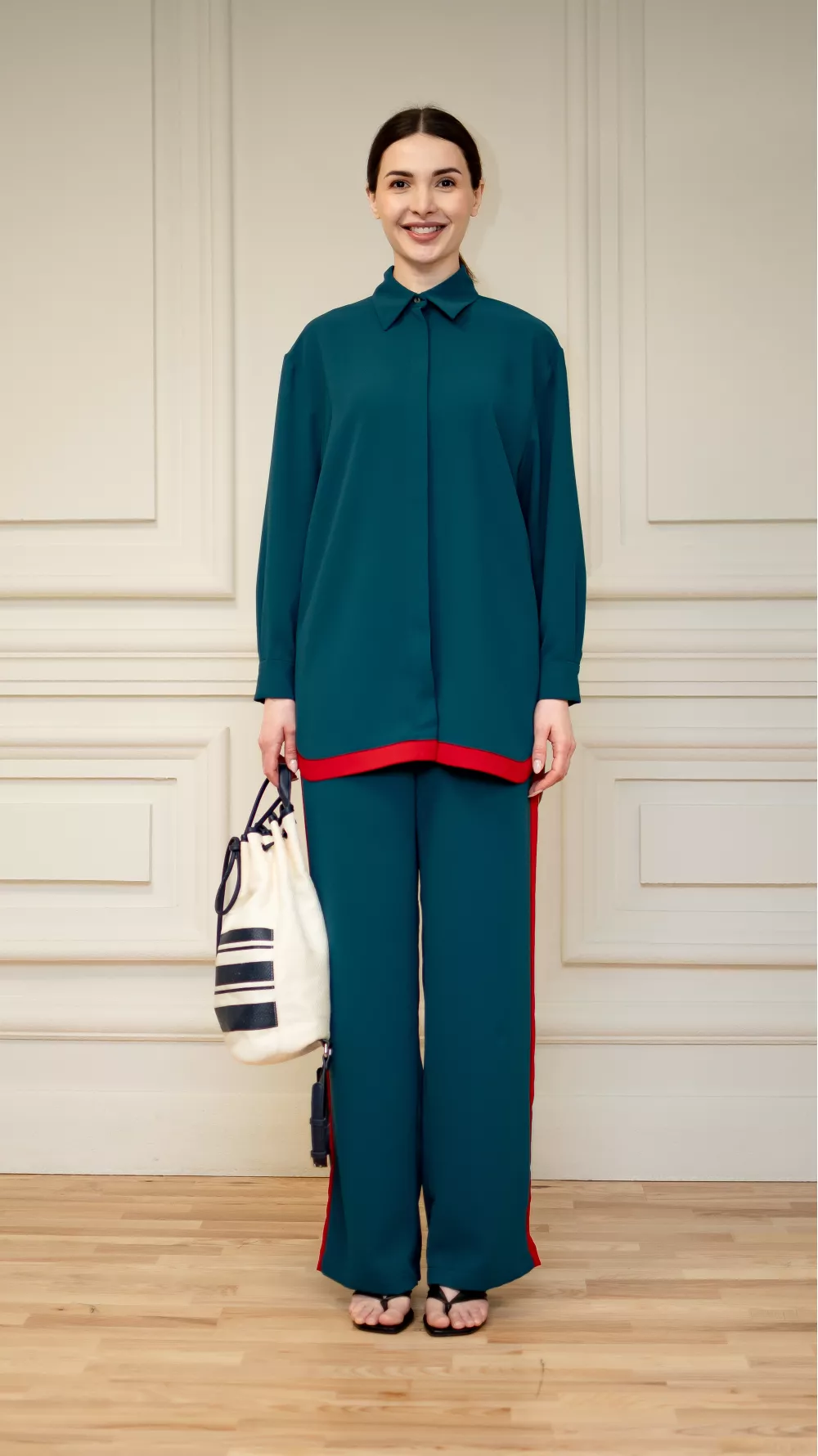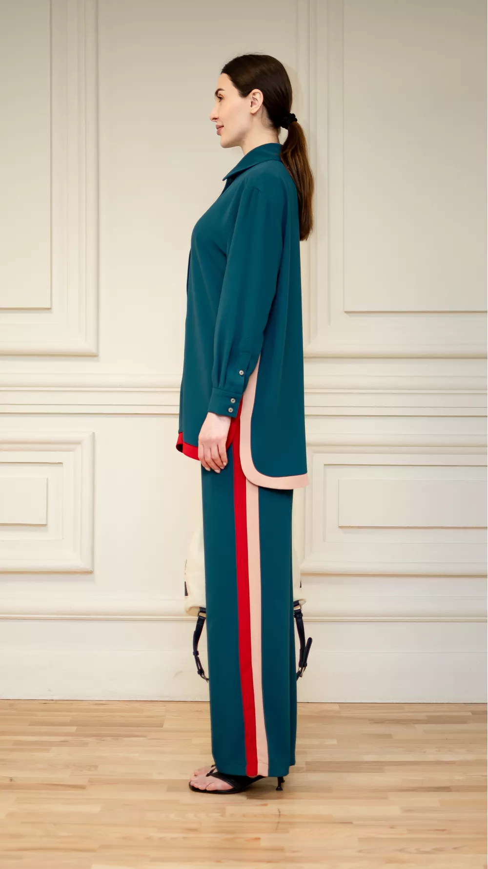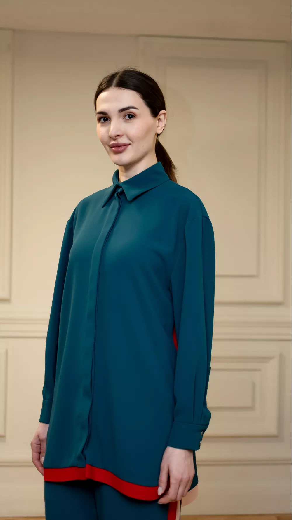 Универсальная удлиненная рубашка с контрастными лампасами сбоку. Дышащий полиэстер, потому что изготовлен из переработанной пластмассы