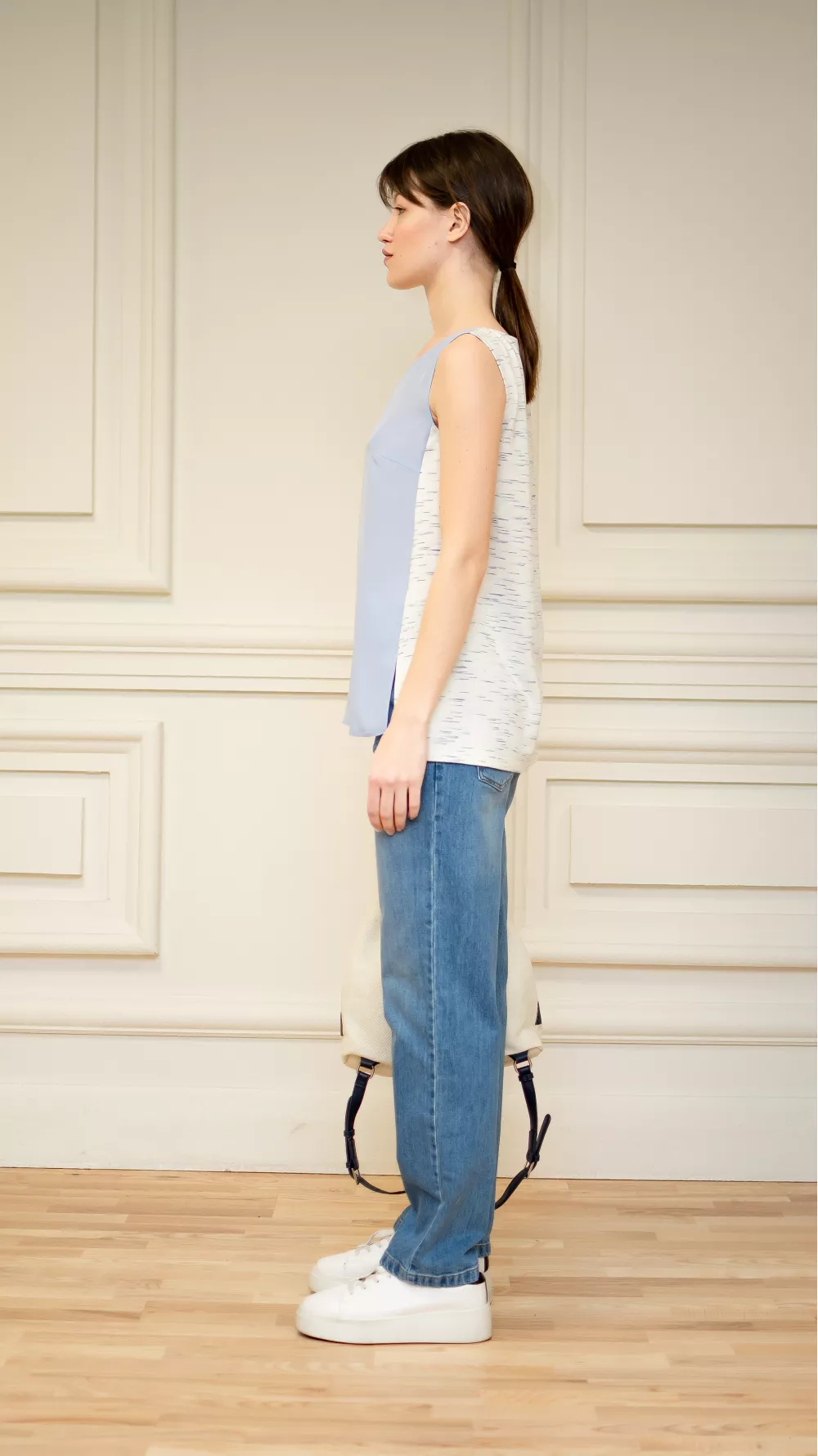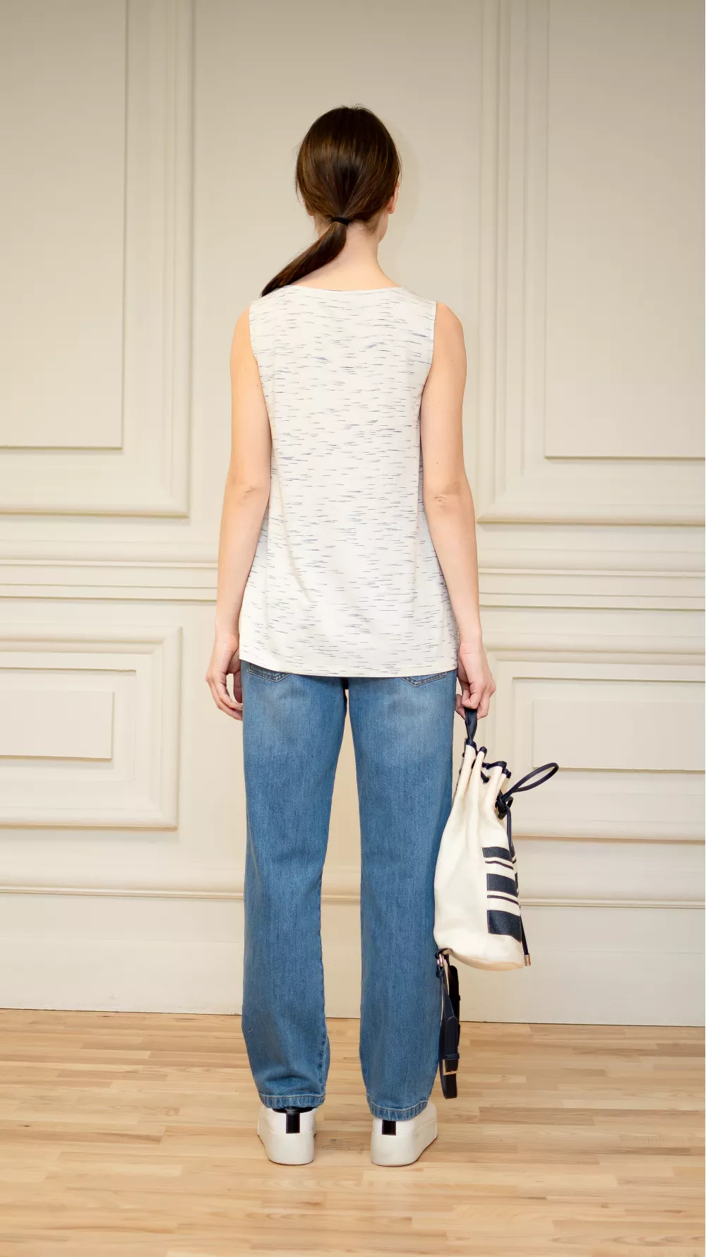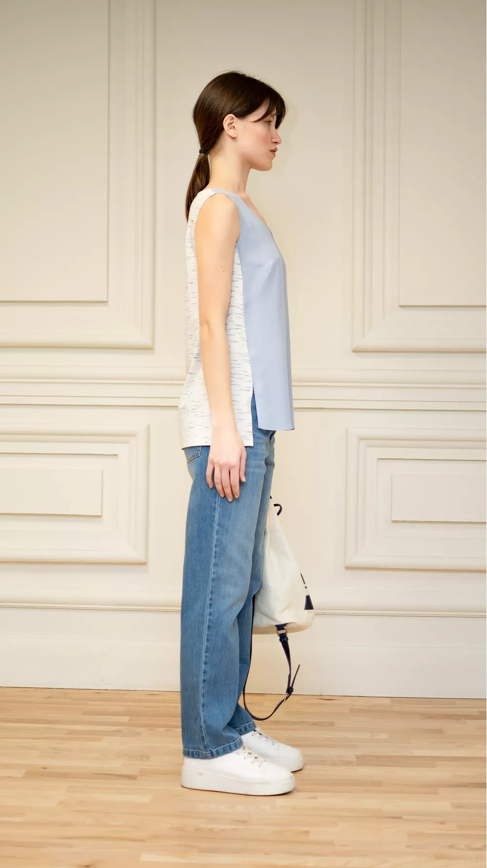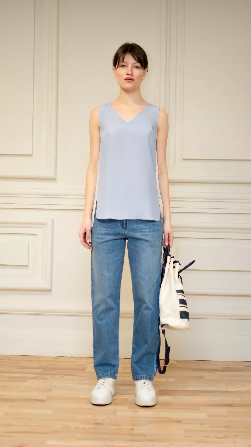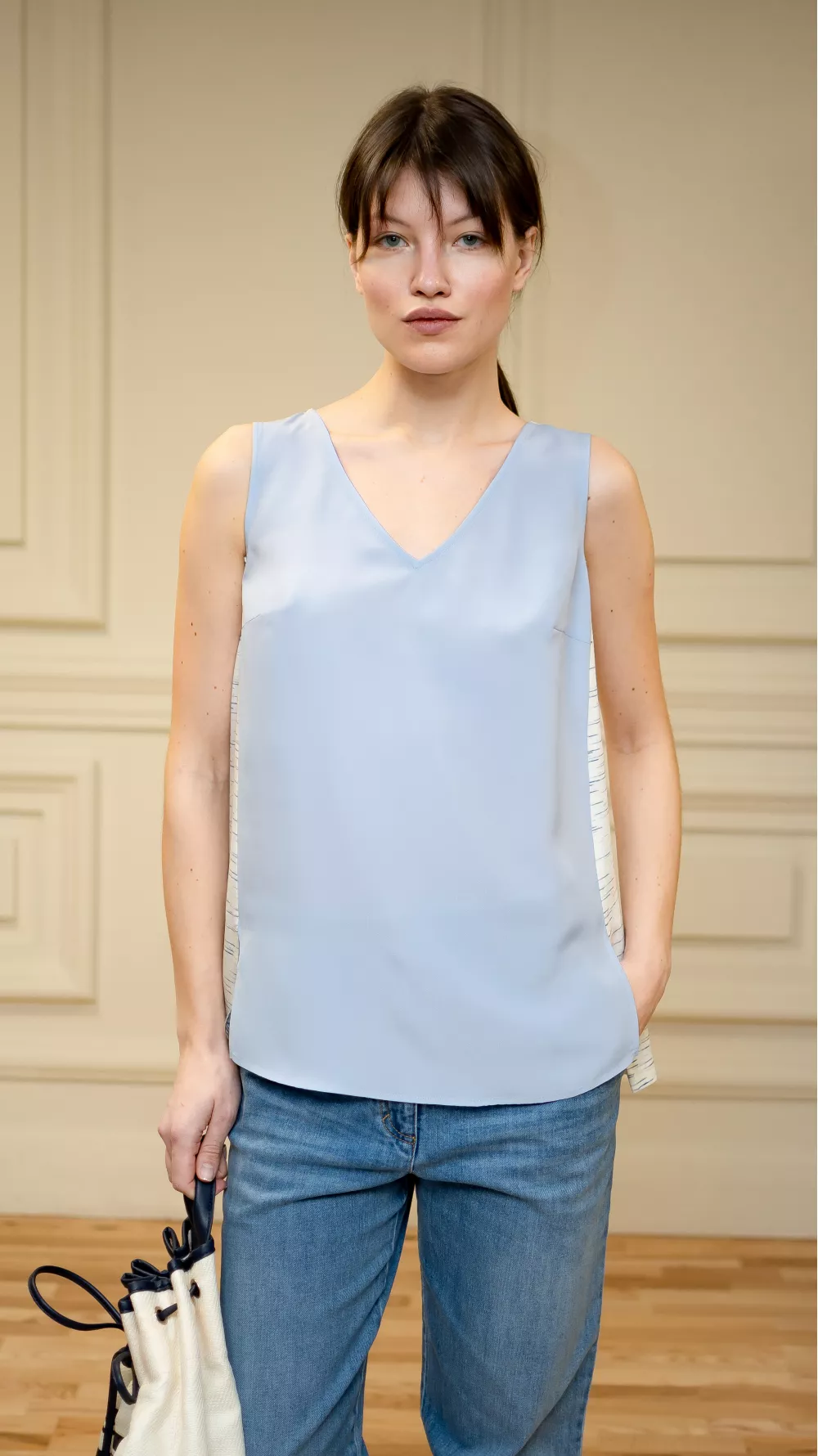Легкая блуза без рукавов со светлой спинкой и разрезами по бокам. Идеально подойдет как на каждый день, так и на праздничное событие в разгар сезона