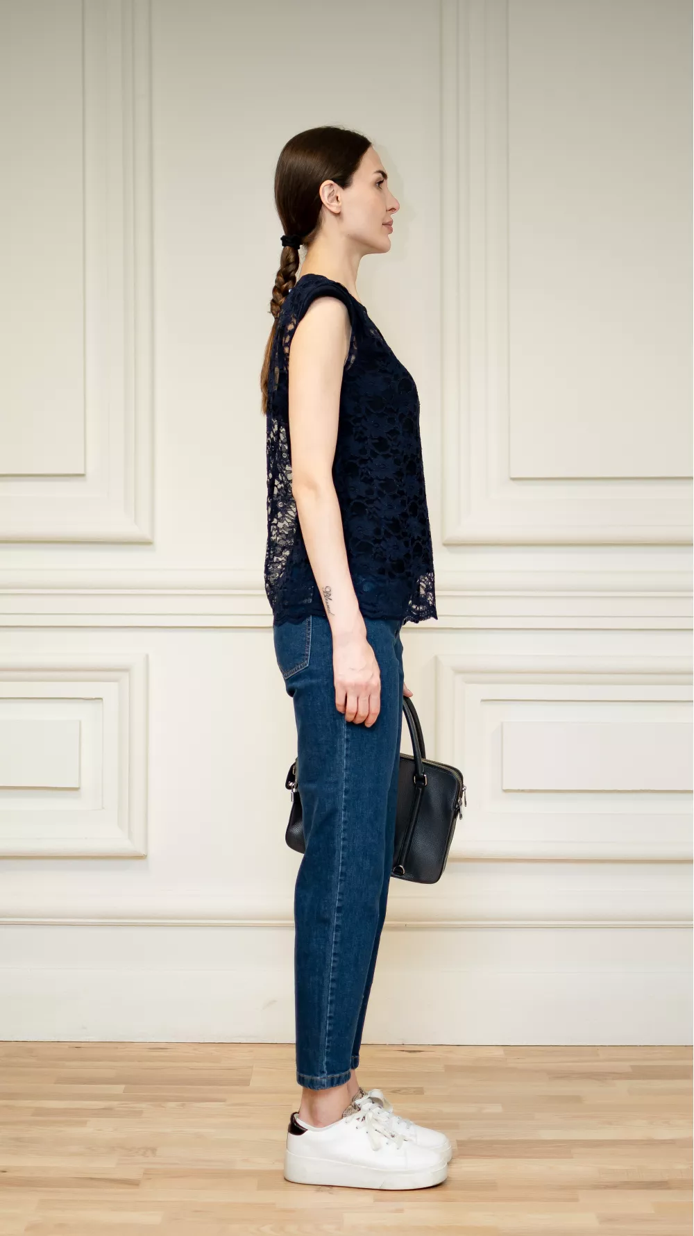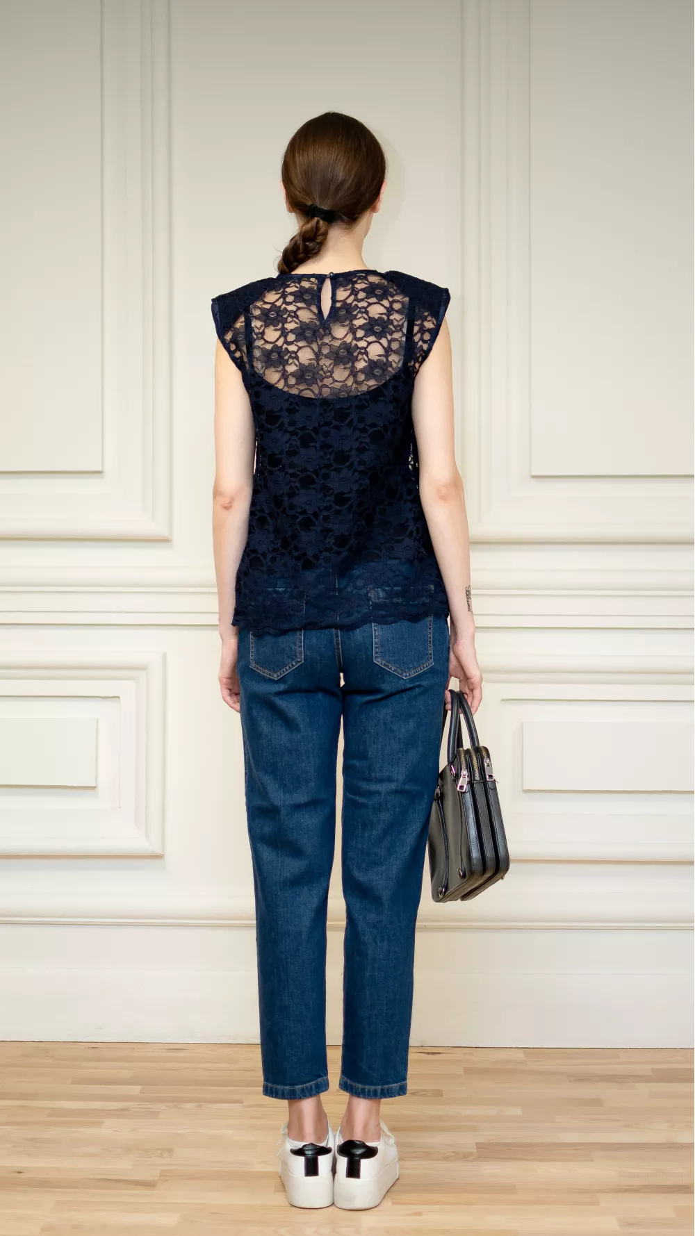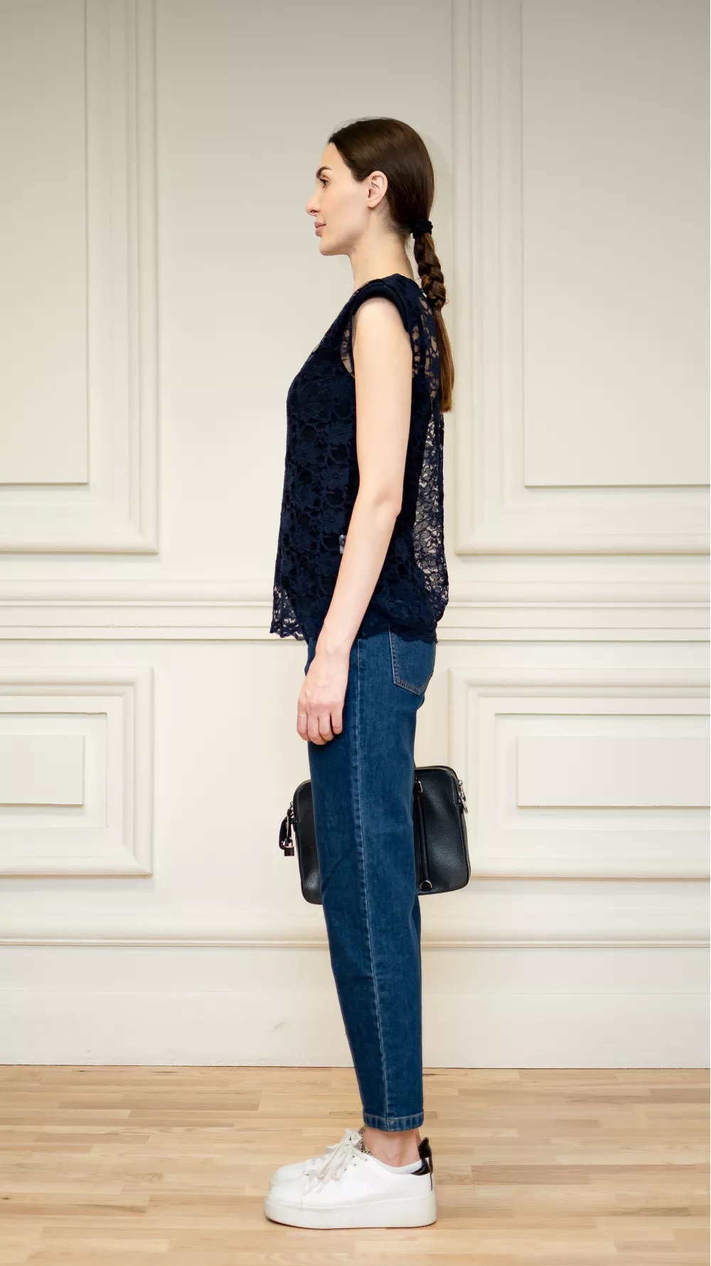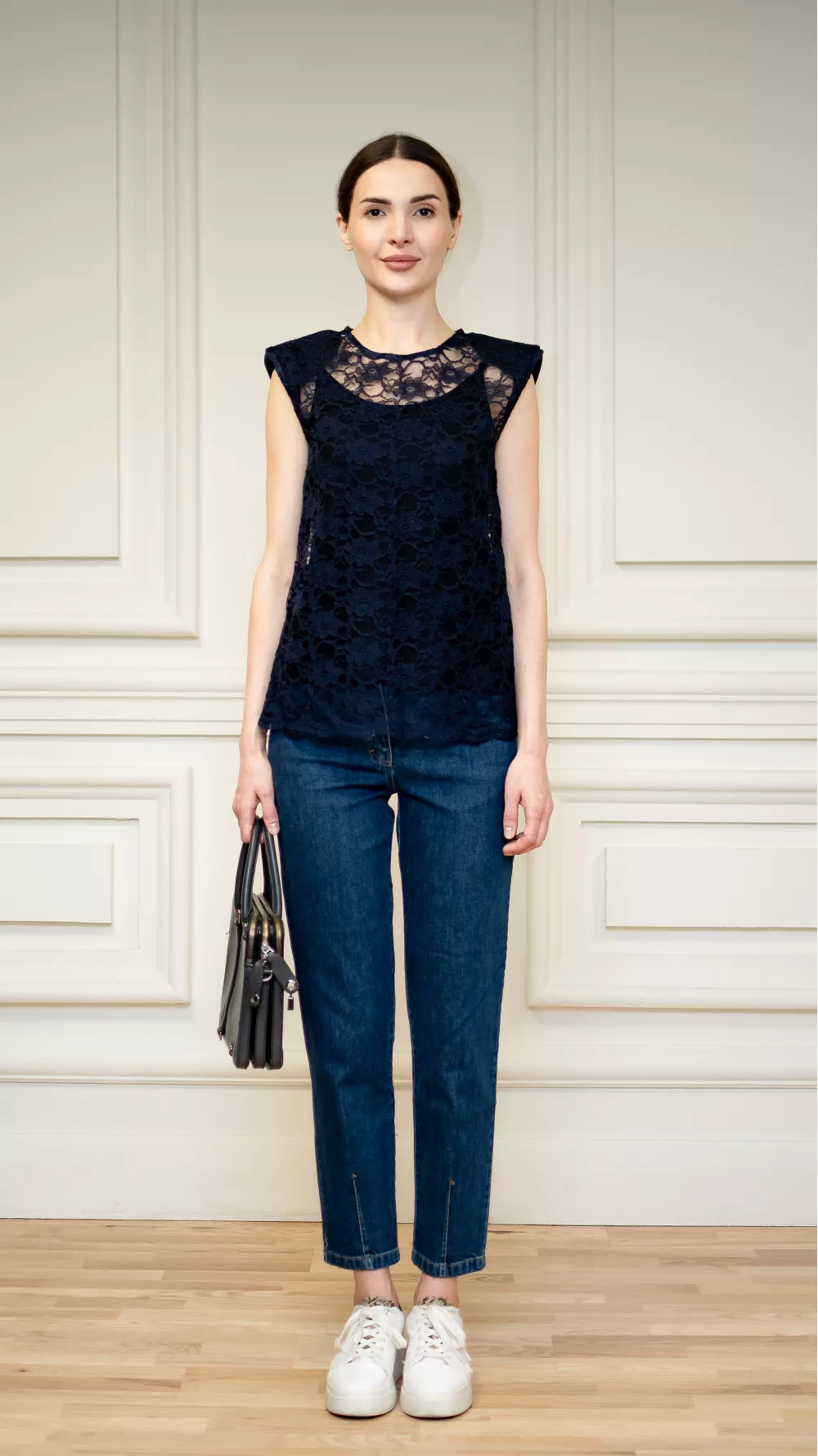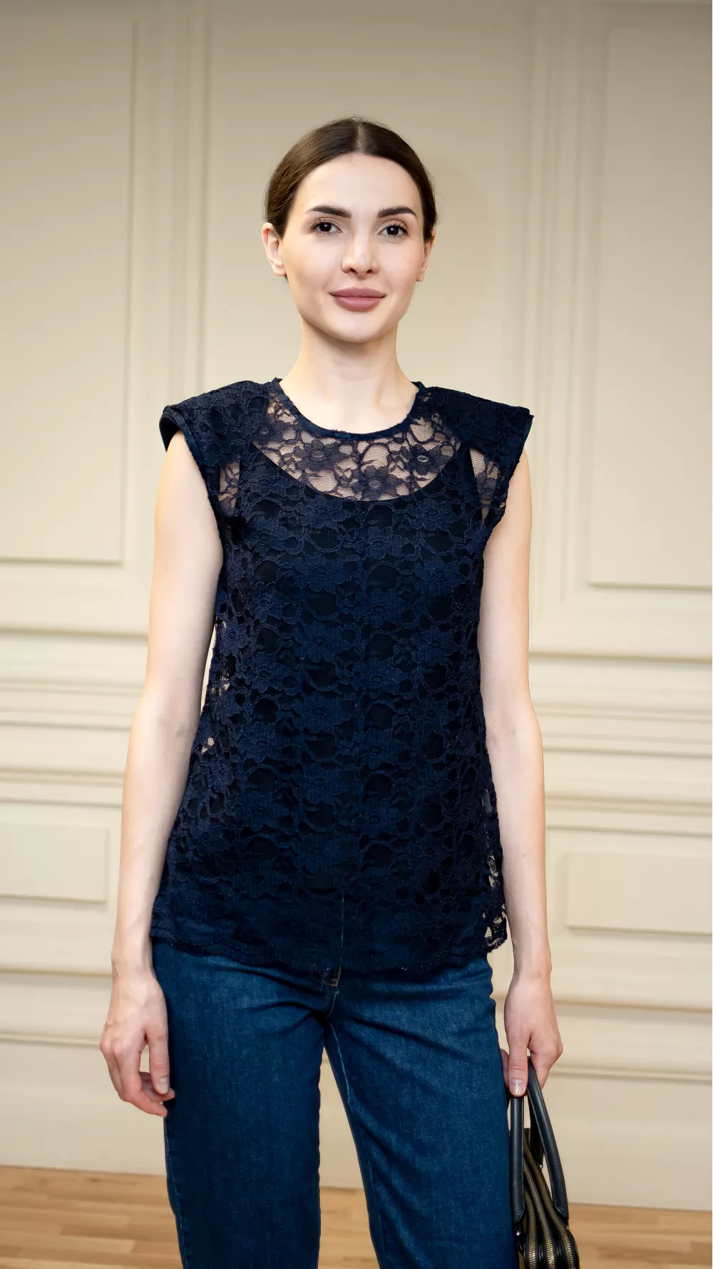 Кружевная синяя блуза Леонтина