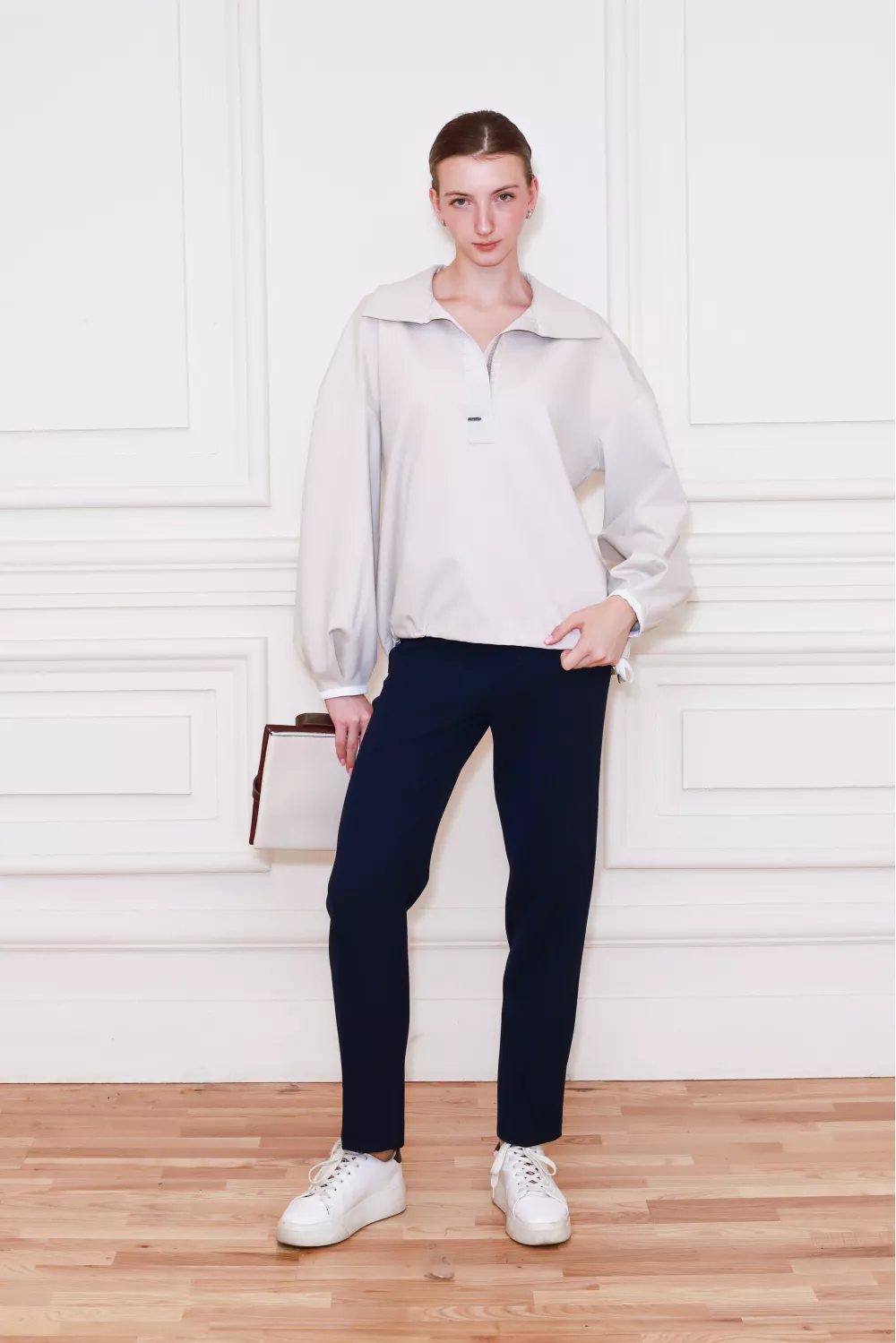 Модель в стиле спортшик с затяжками на поясе и отложным воротам идеально подойдет для повседневной жизни