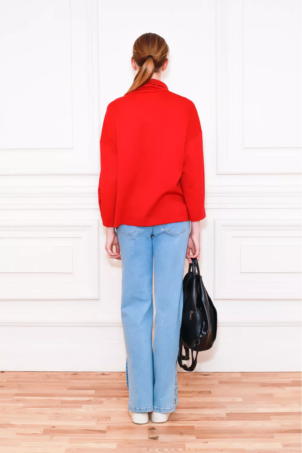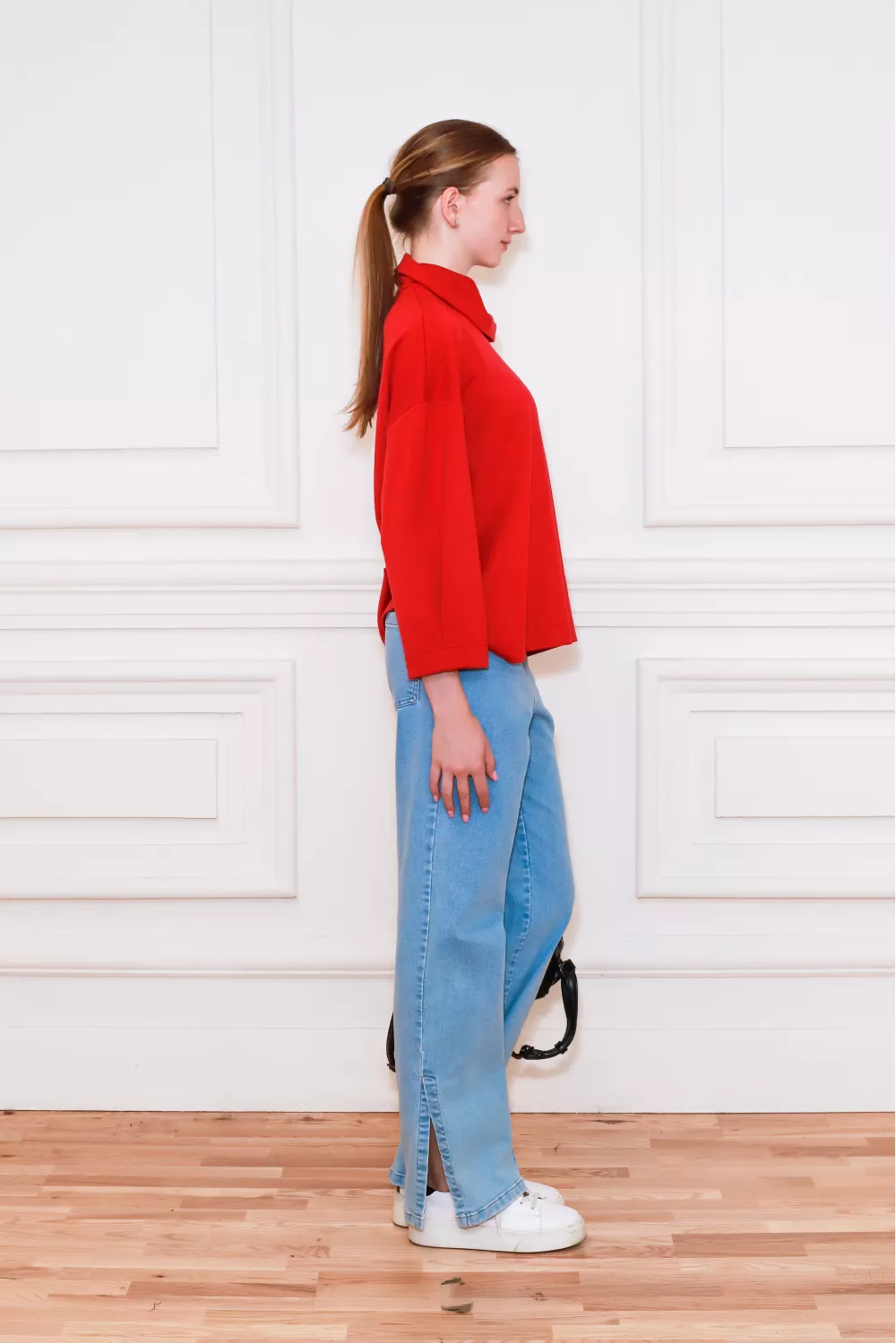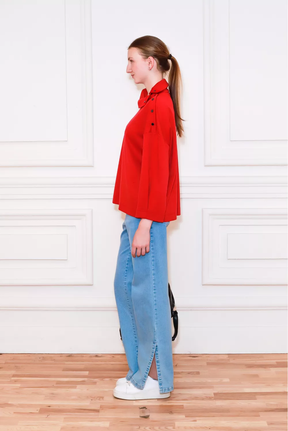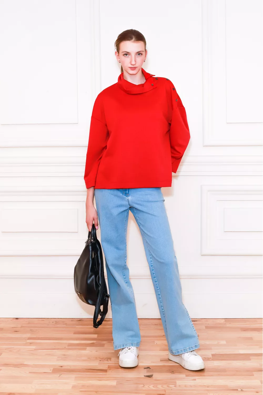 Стильная модель кофты с воротом, регулируемая кнопками и изменяющая вид