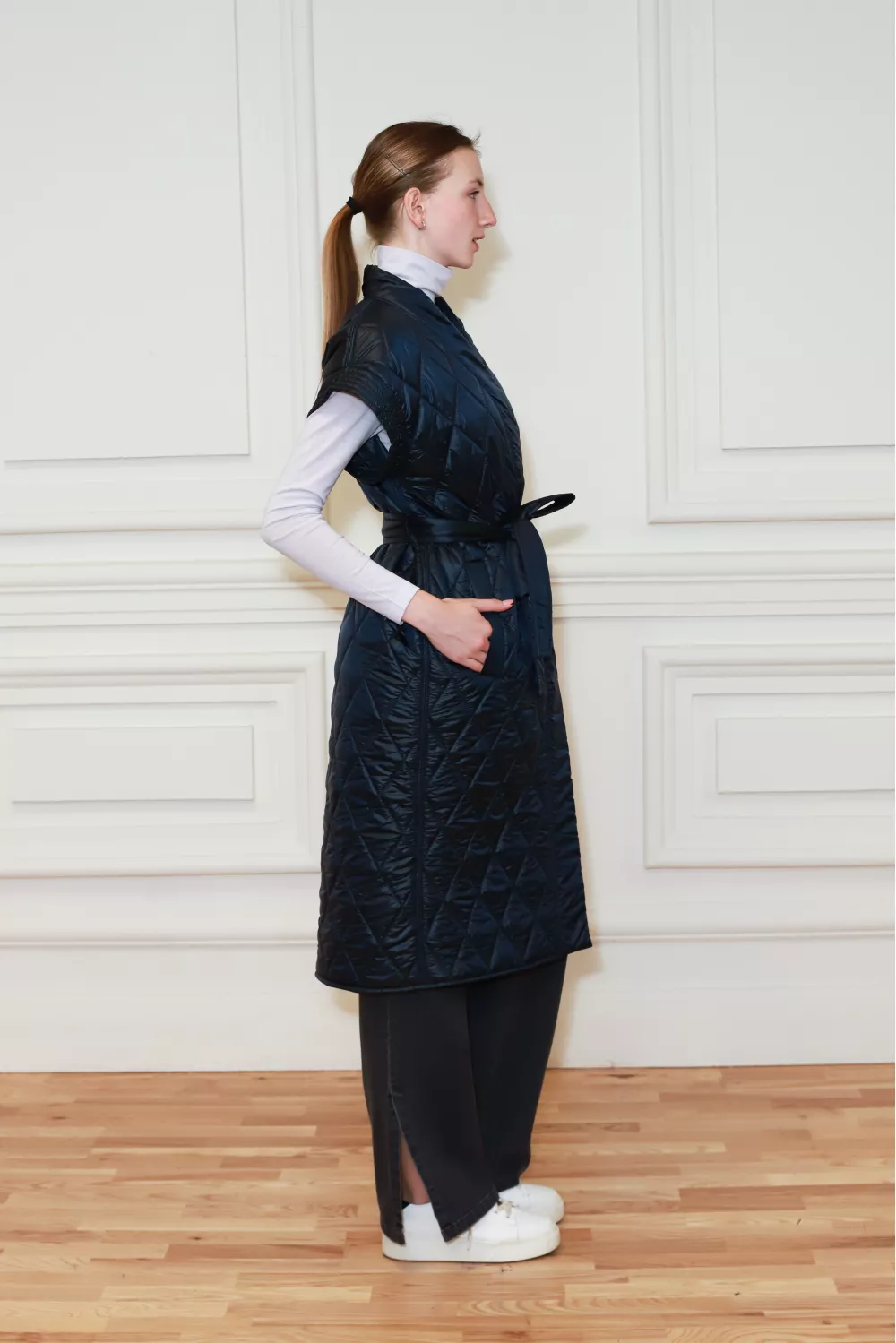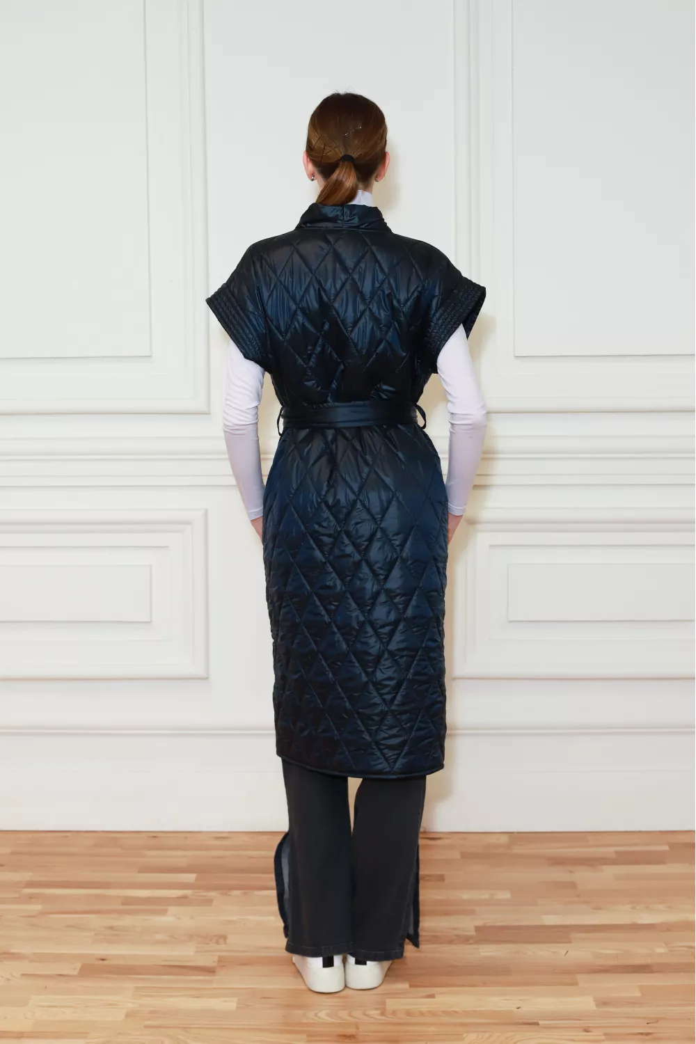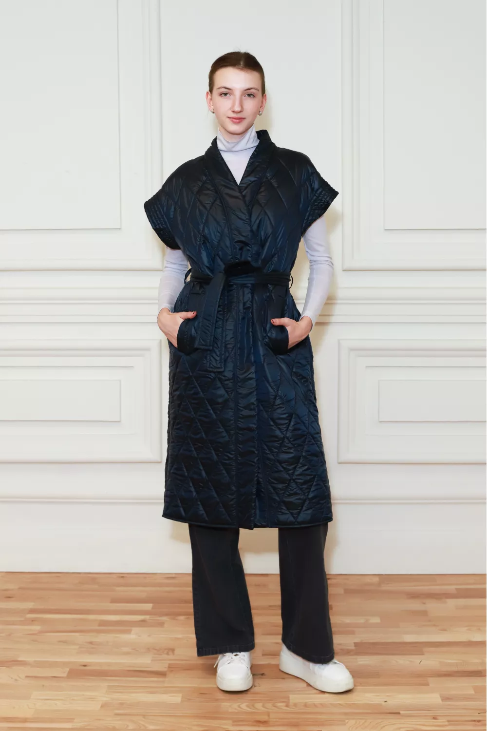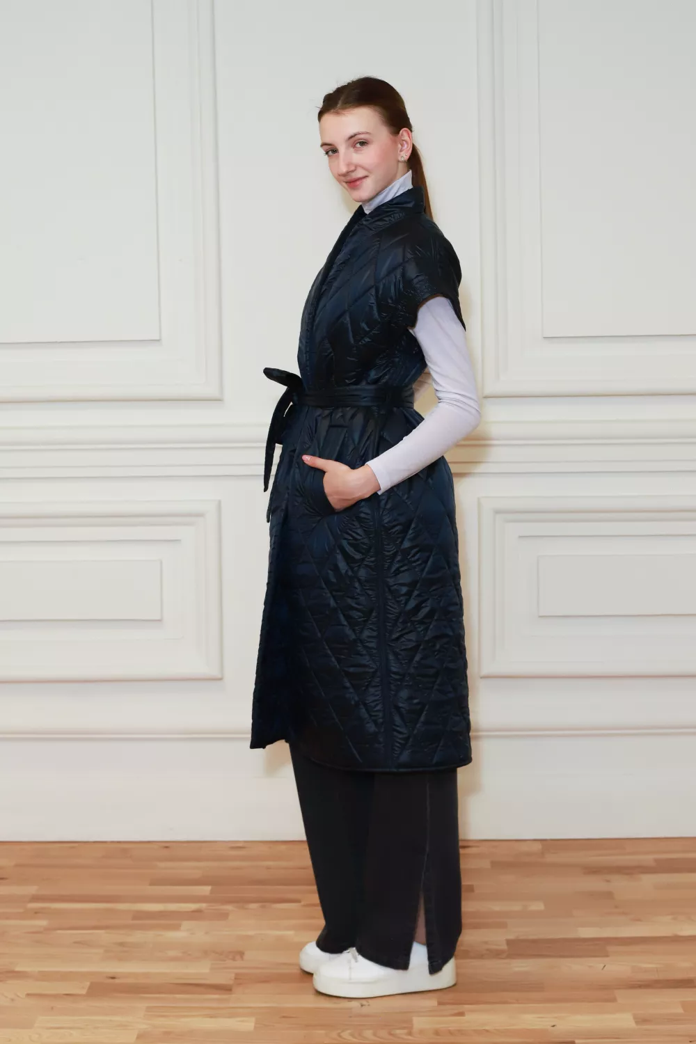 Длинная стеганная жилетка под пояс Реджо