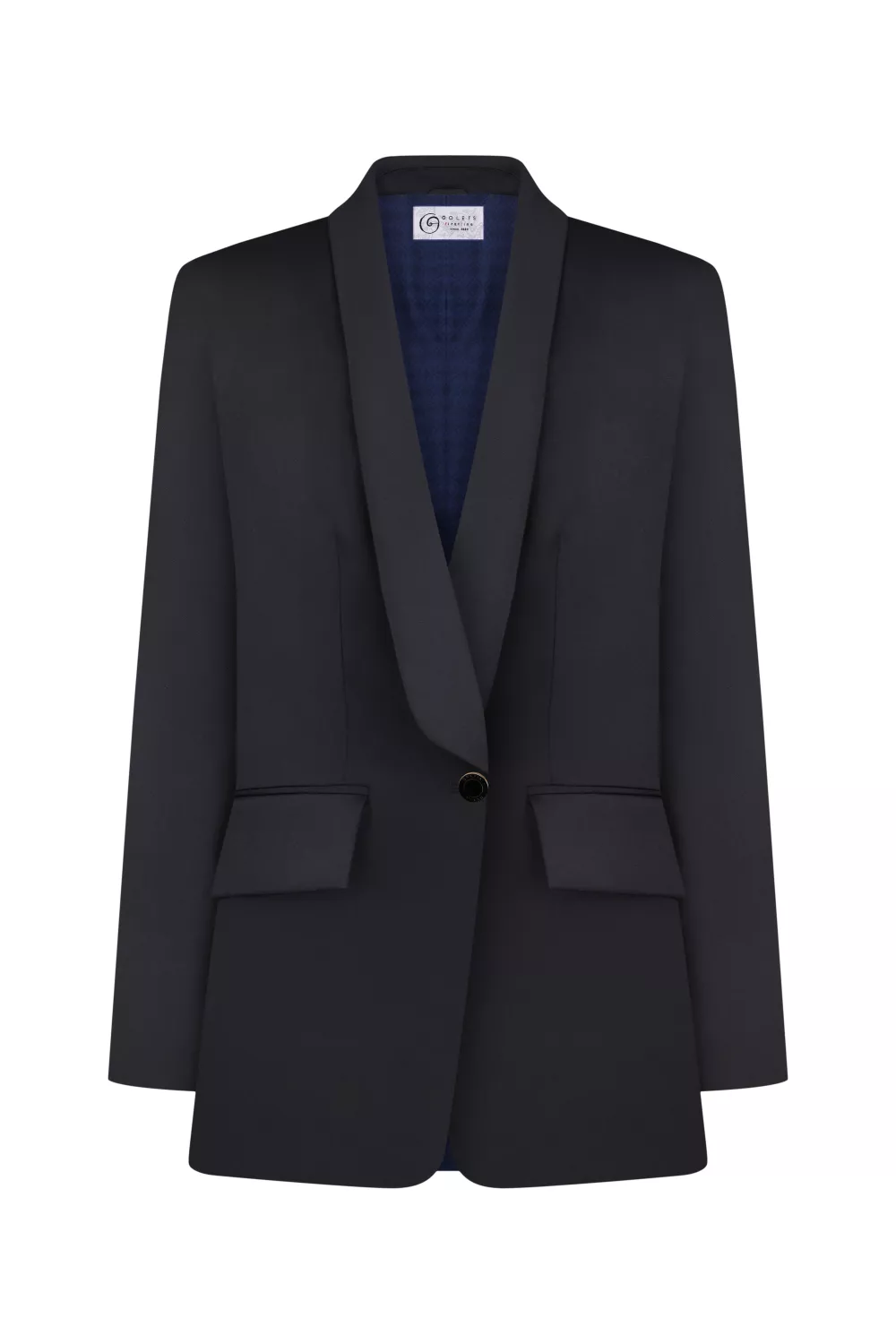 The Golets '24 collection is inspired by the chic style of classic tuxedos. Making its runway debut, Alonso's lambswool jacket features a boxy fit with a double-breasted front and notched lapels. It has particularly long sleeves and padded shoulders. Composition: 100%WV