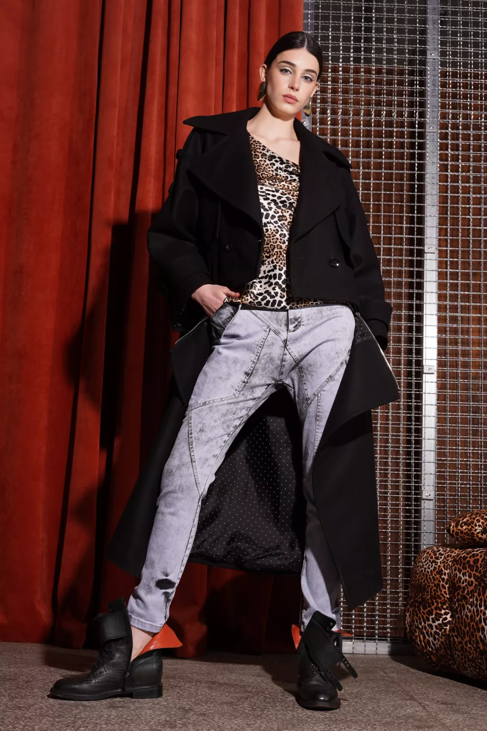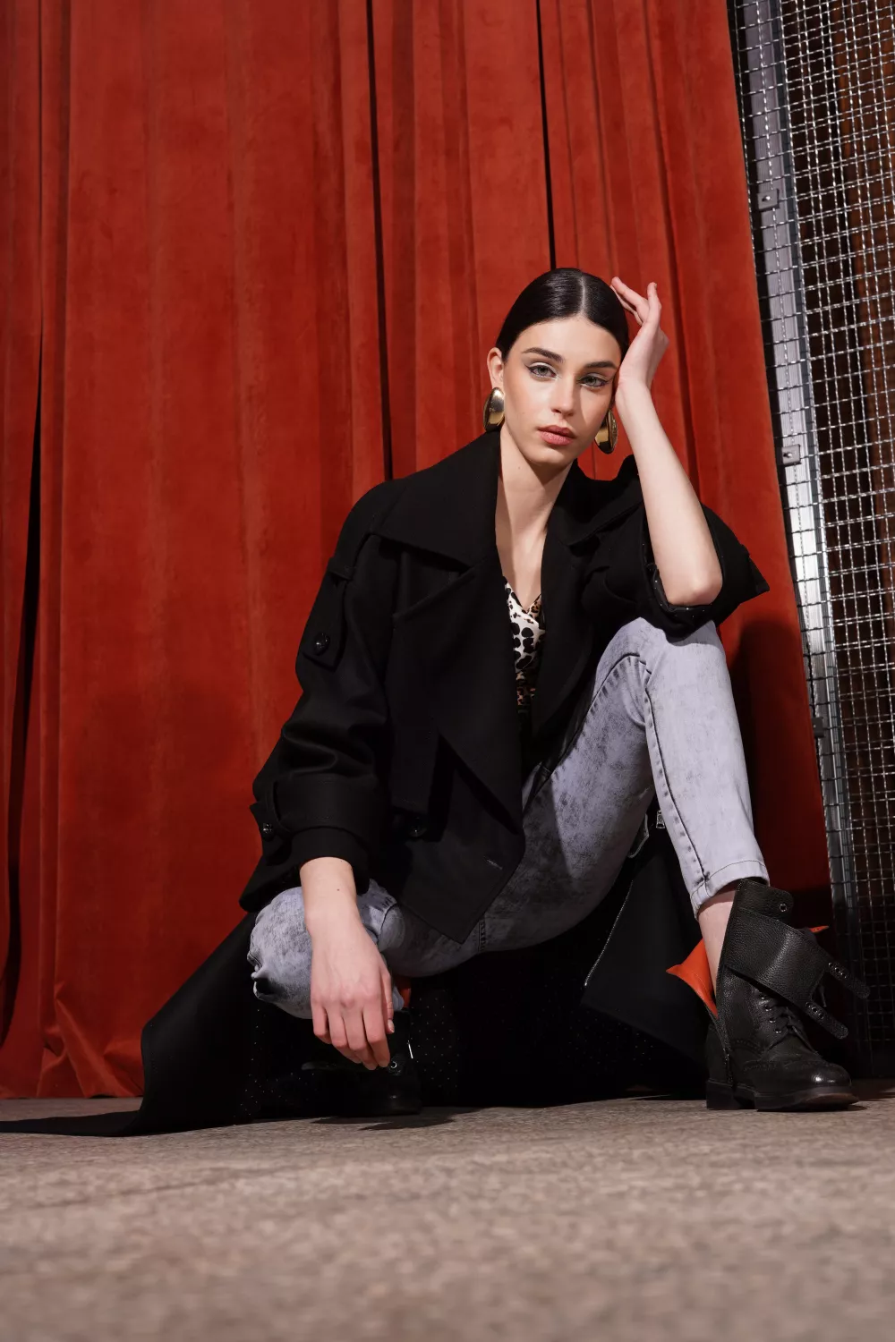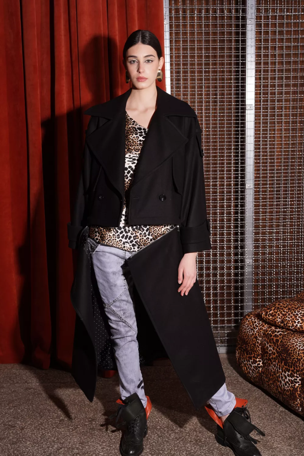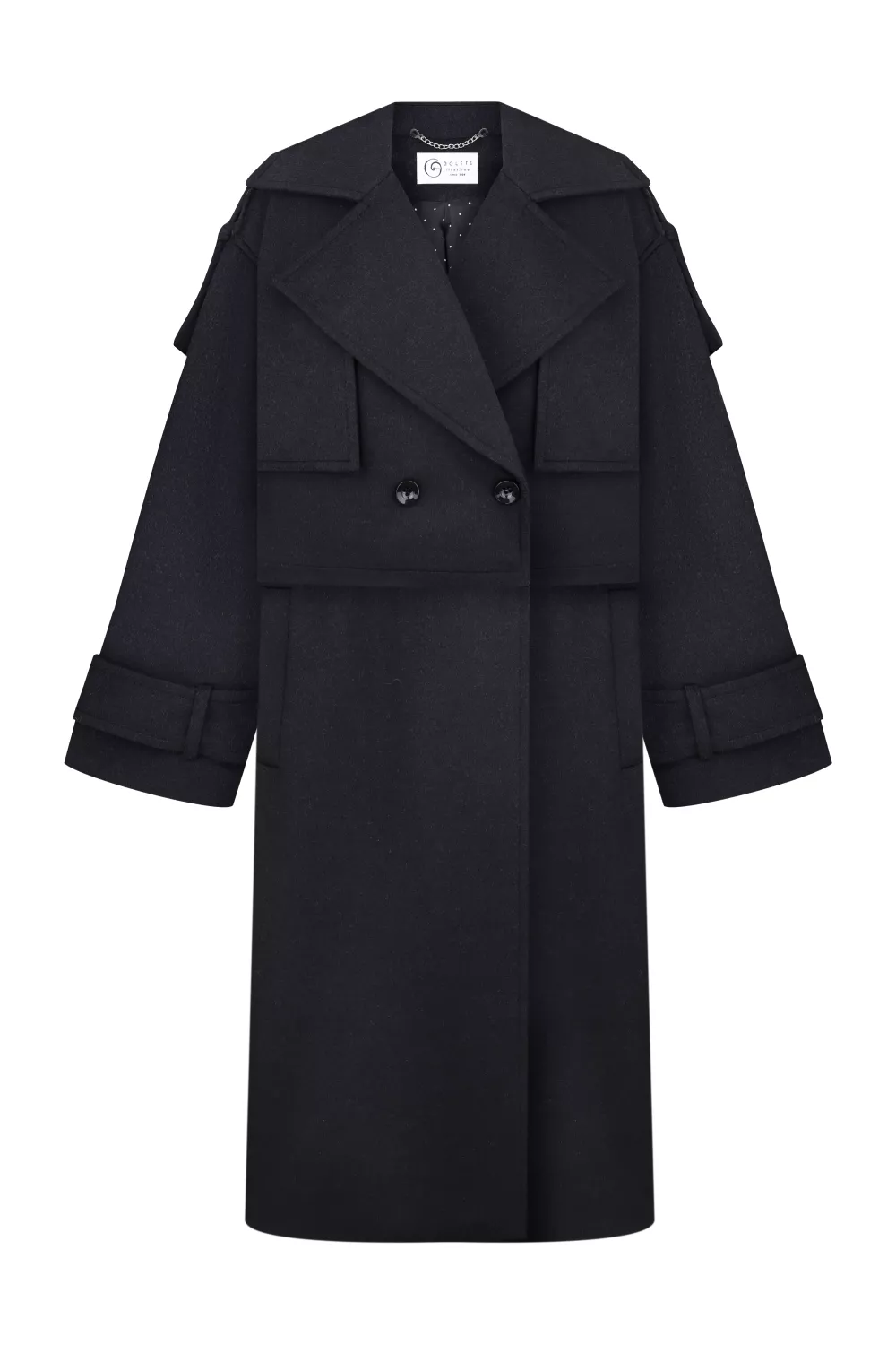 The Balenciaga-inspired Golets double-breasted coat has a loose fit that makes it easy to layer over bulky sweaters and sweatshirts. It is made of wool, has wide lapels and a belt that tightens the waist.