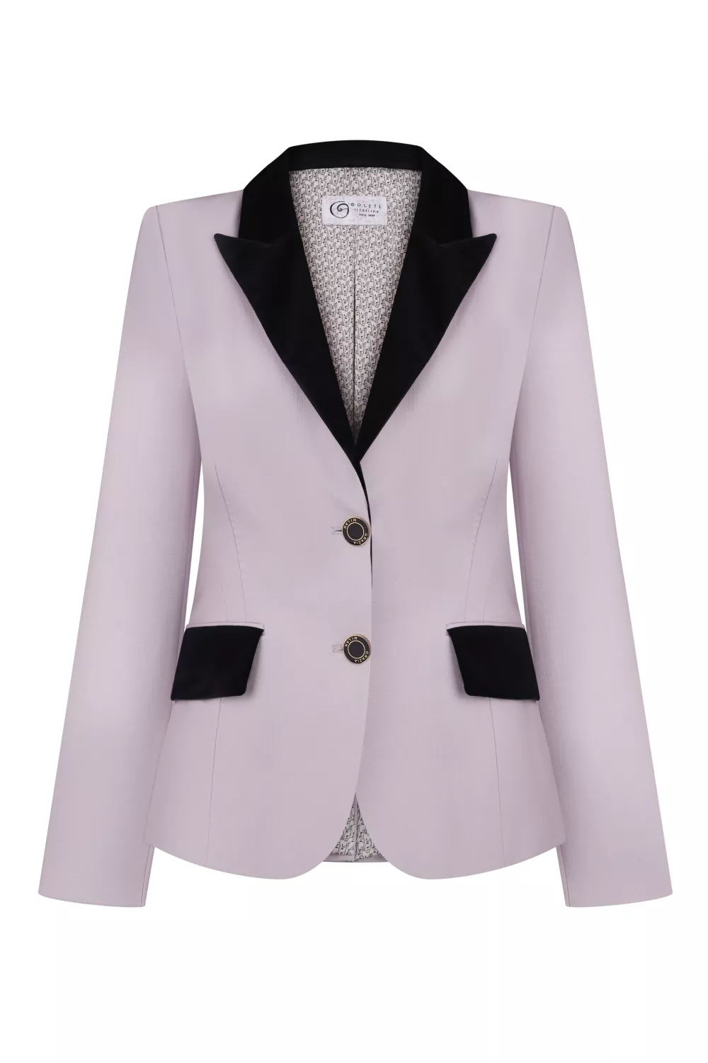Daren's tuxedo is made of young lamb wool and is ideal for evening outings. The double-breasted front is fastened with gold-tone branded buttons and peaked velvet lapels.