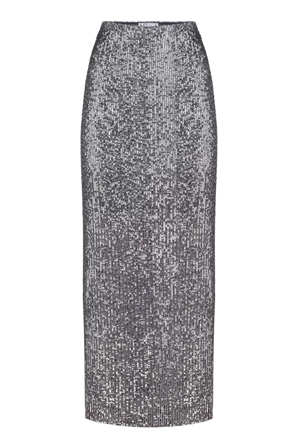 The midi skirt is adorned with countless tiny sequins that will look especially ethereal at a candlelit dinner. Bundled with a stretch blend, it has a comfortable elastic waistband and fits around the hips before flaring out at the hem. Wear it with a matching blouse from our collection.