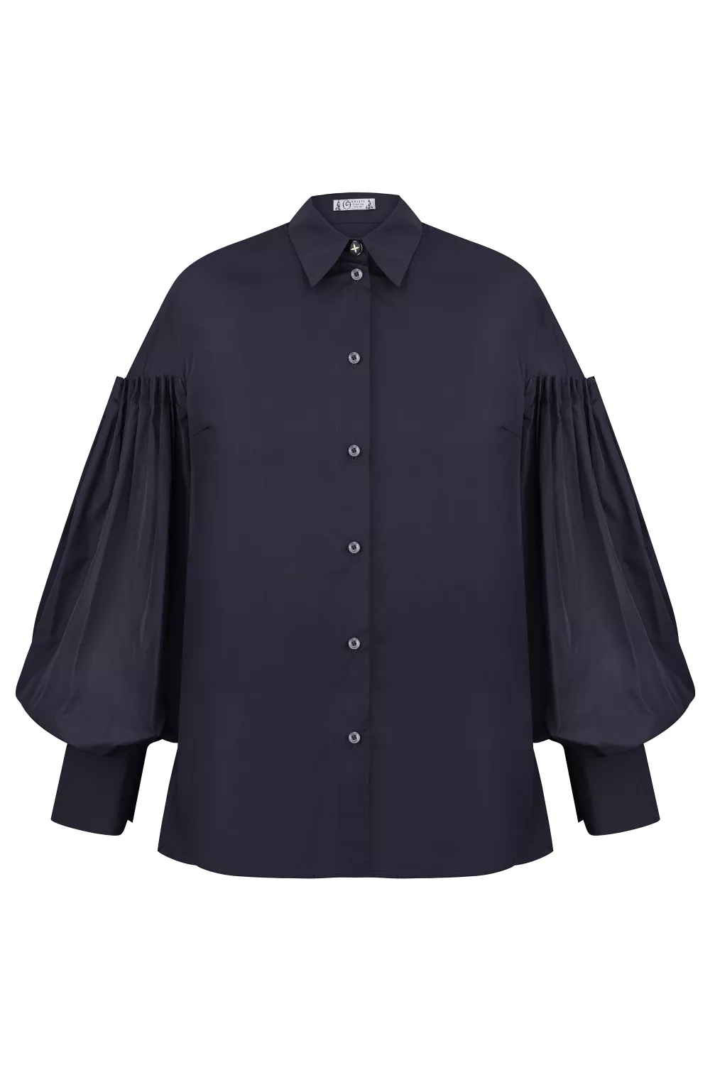 The Manhattan shirt features delicate, puffed, ruched sleeves that perfectly complement its romantic, vintage appeal. The model is made of natural cotton