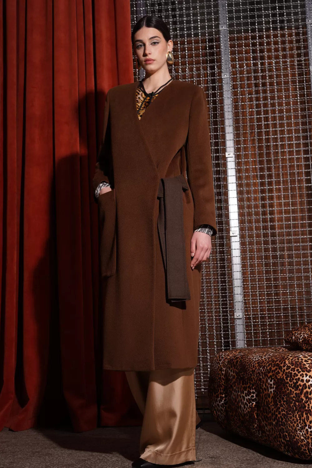 The Regents coat has a single breasted front, giving it endless chic. It is made of soft wool, has patch pockets and a side tie.