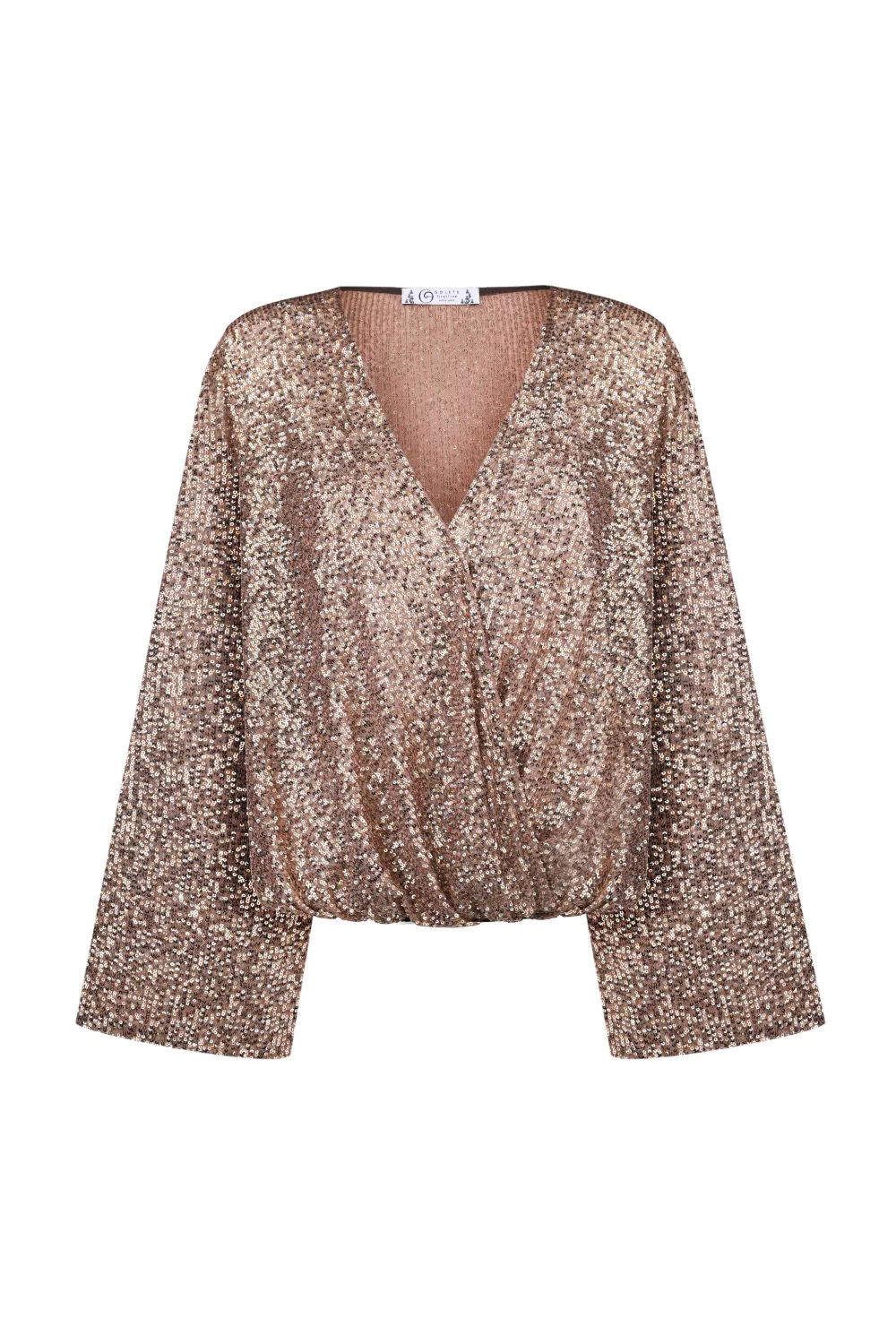 Popular Marley top with light sequin trim. It's made from airy sequin and features a deep V-neck, padded shoulders and a raw hem.