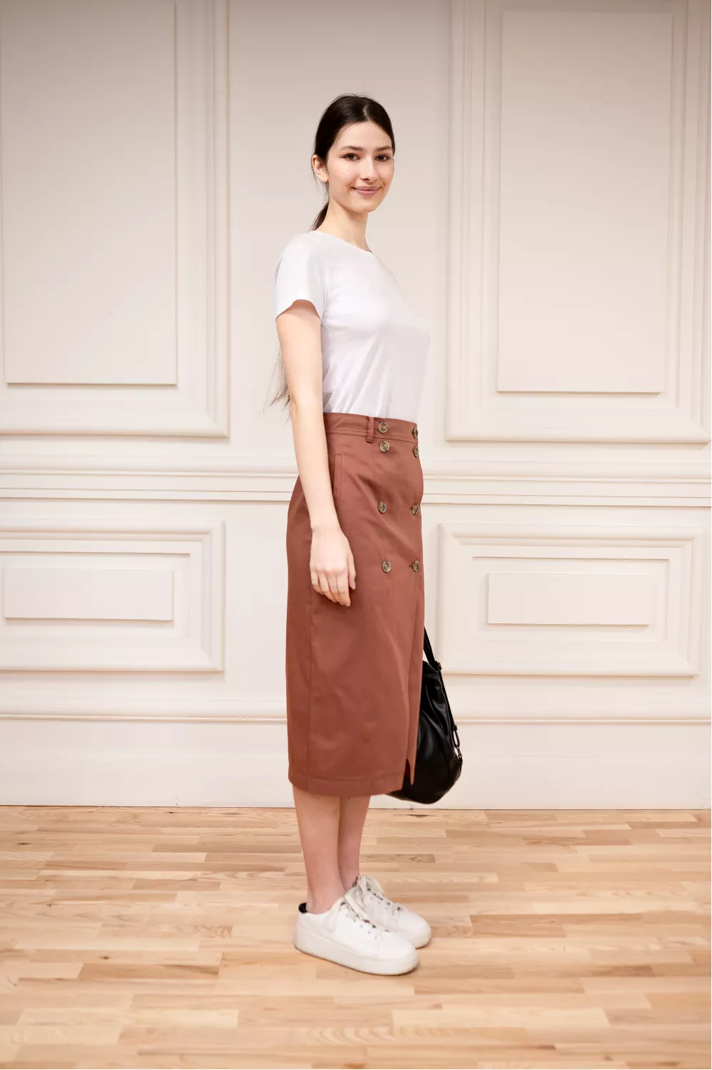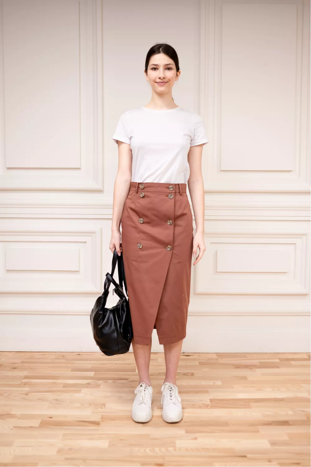 Юбка запах с идеальной посадкой по фигуре. Дополняется жакетом с пышным рукавом в комплекте