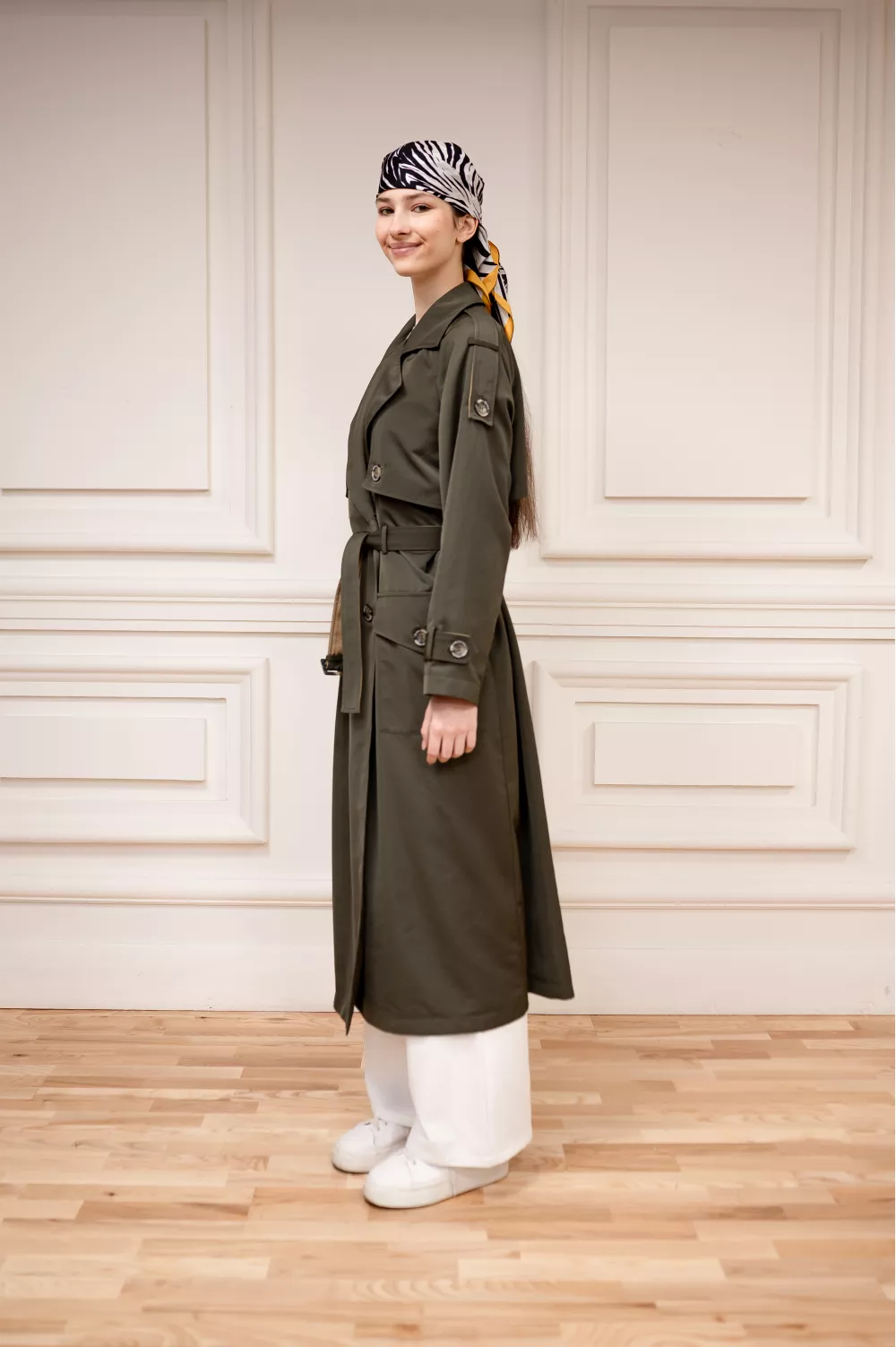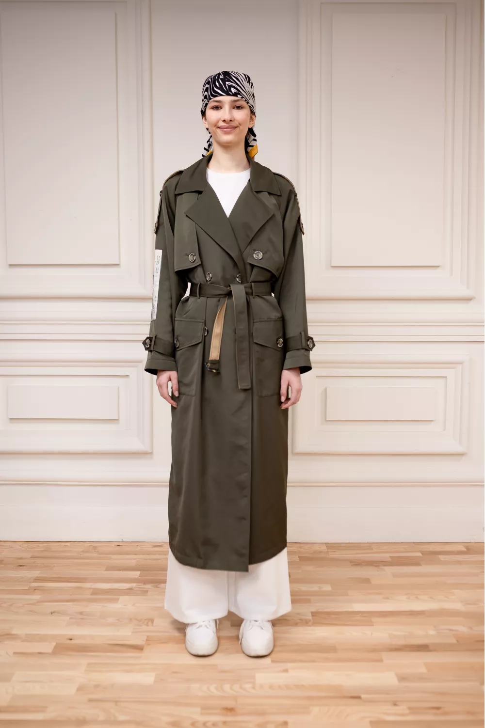 Когда дело доходит до межсезонной одежды, нет лучшей инвестиции, чем тренч. Изготовлен из натурального хлопка и имеет типичные плечевые погоны и паты. Съемный пояс позволяет подтянуть оверсайз, а уникальные принты сделают ваш образ еще более стильным.