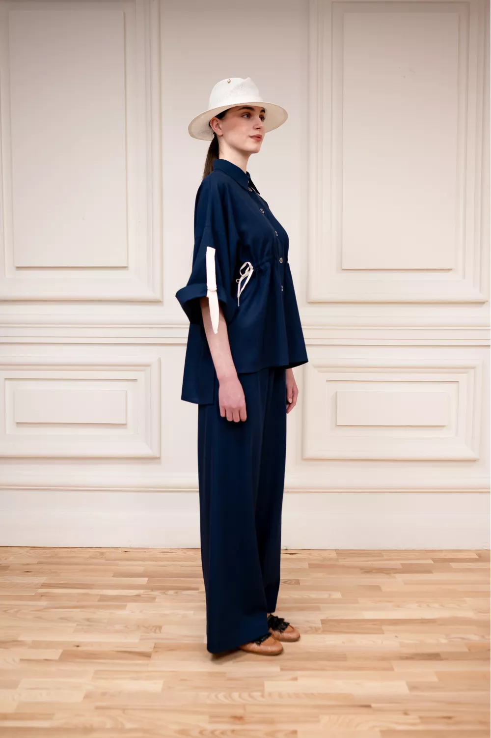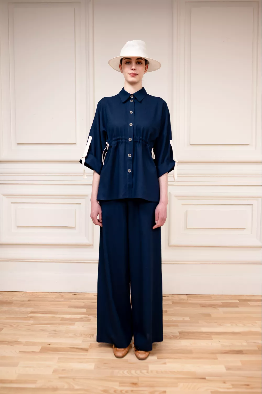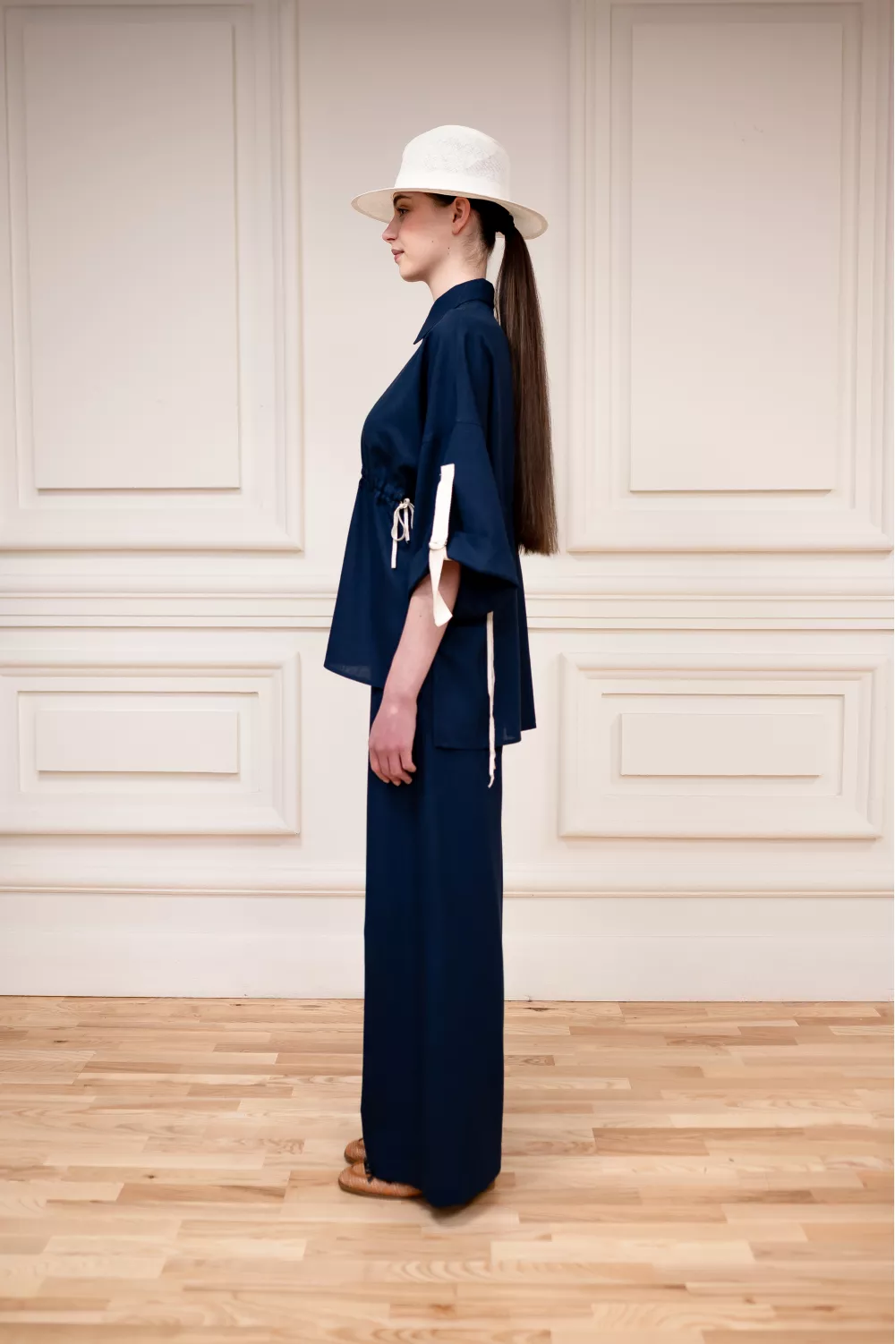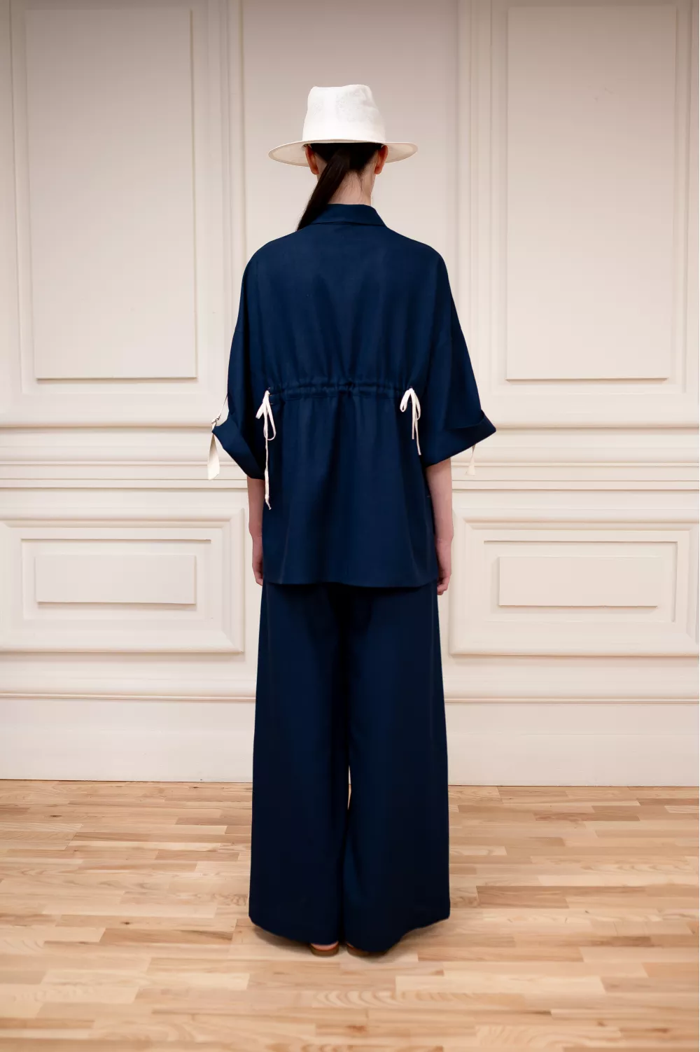 Очень удобная модель льняной блузы, имеющая регулируемую длину рукава и затяжки на поясе. Это позволяет регулировать блузу в отношении ваших предпочтений