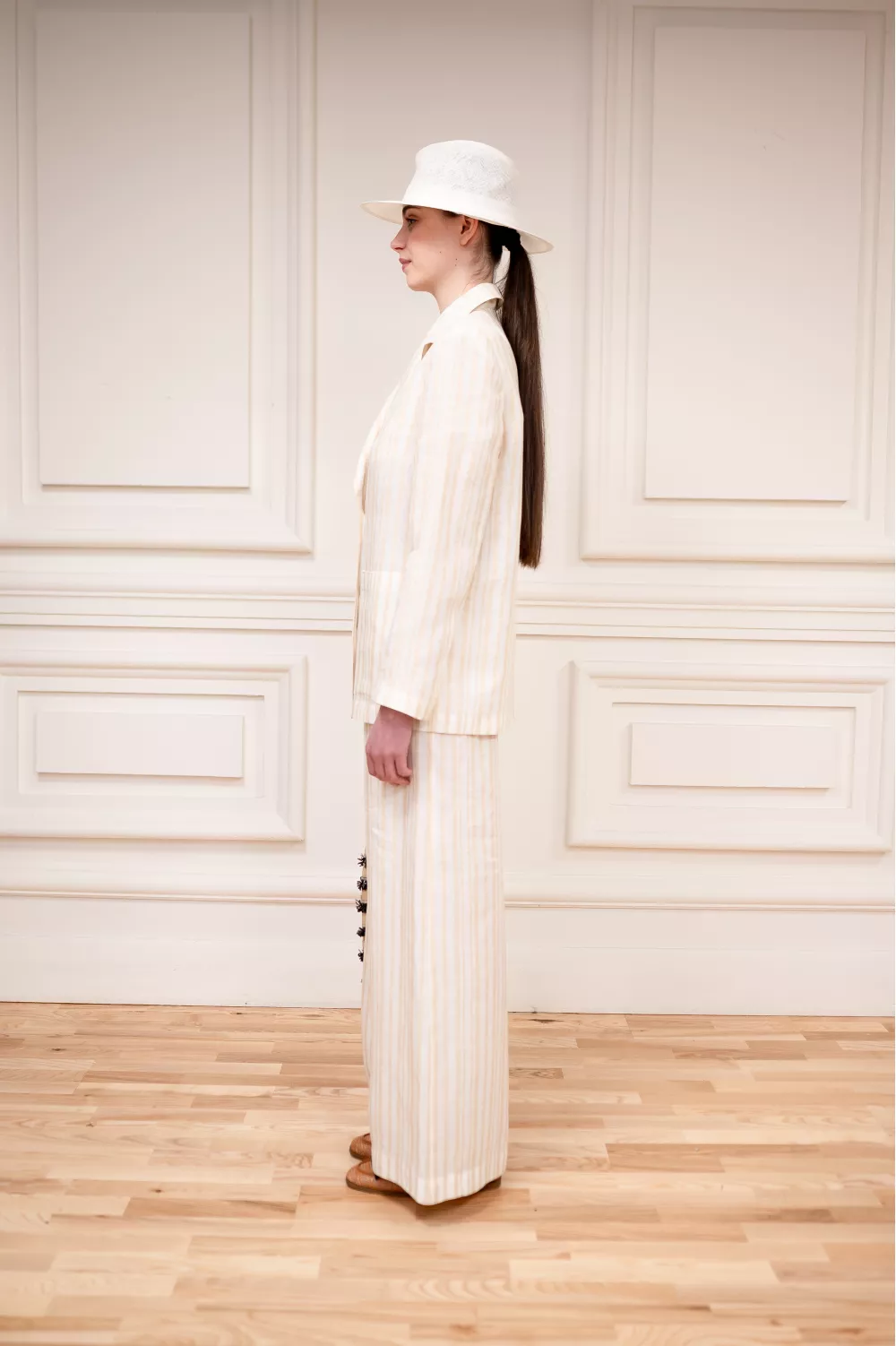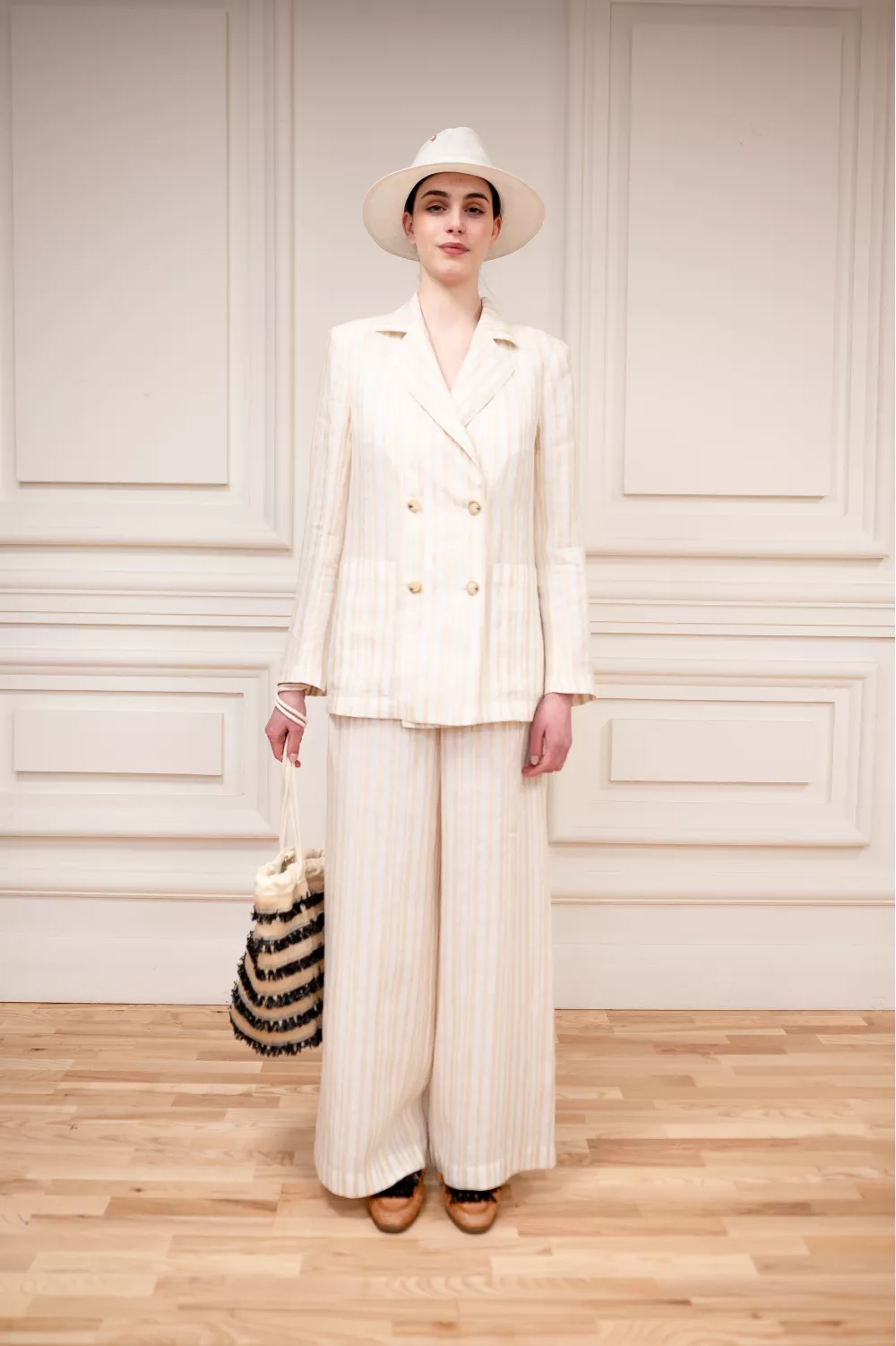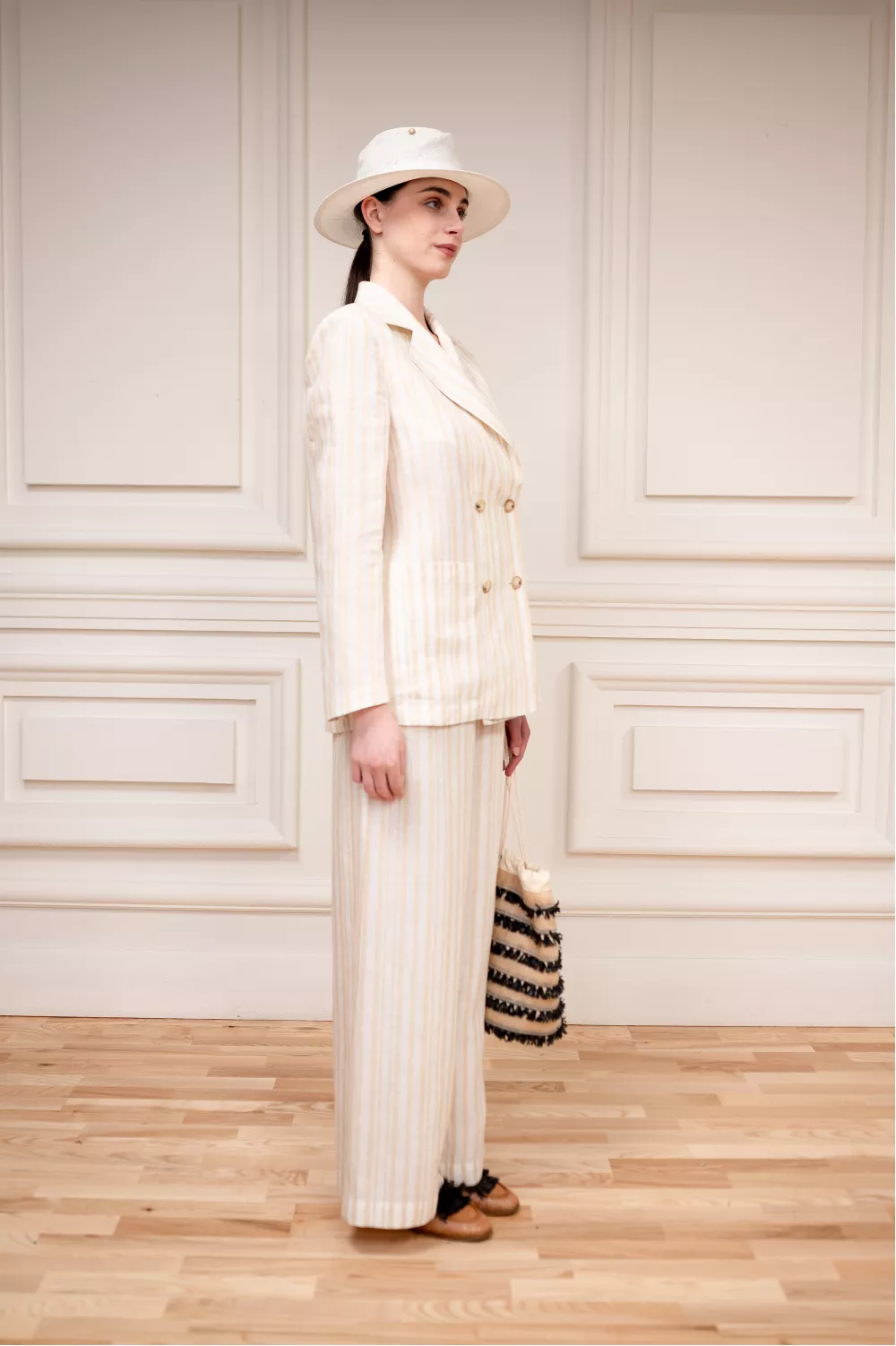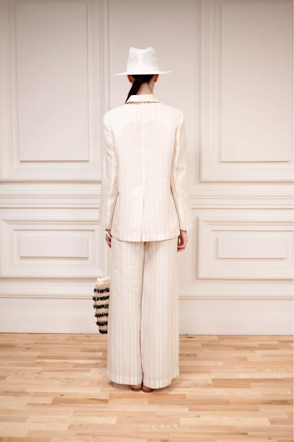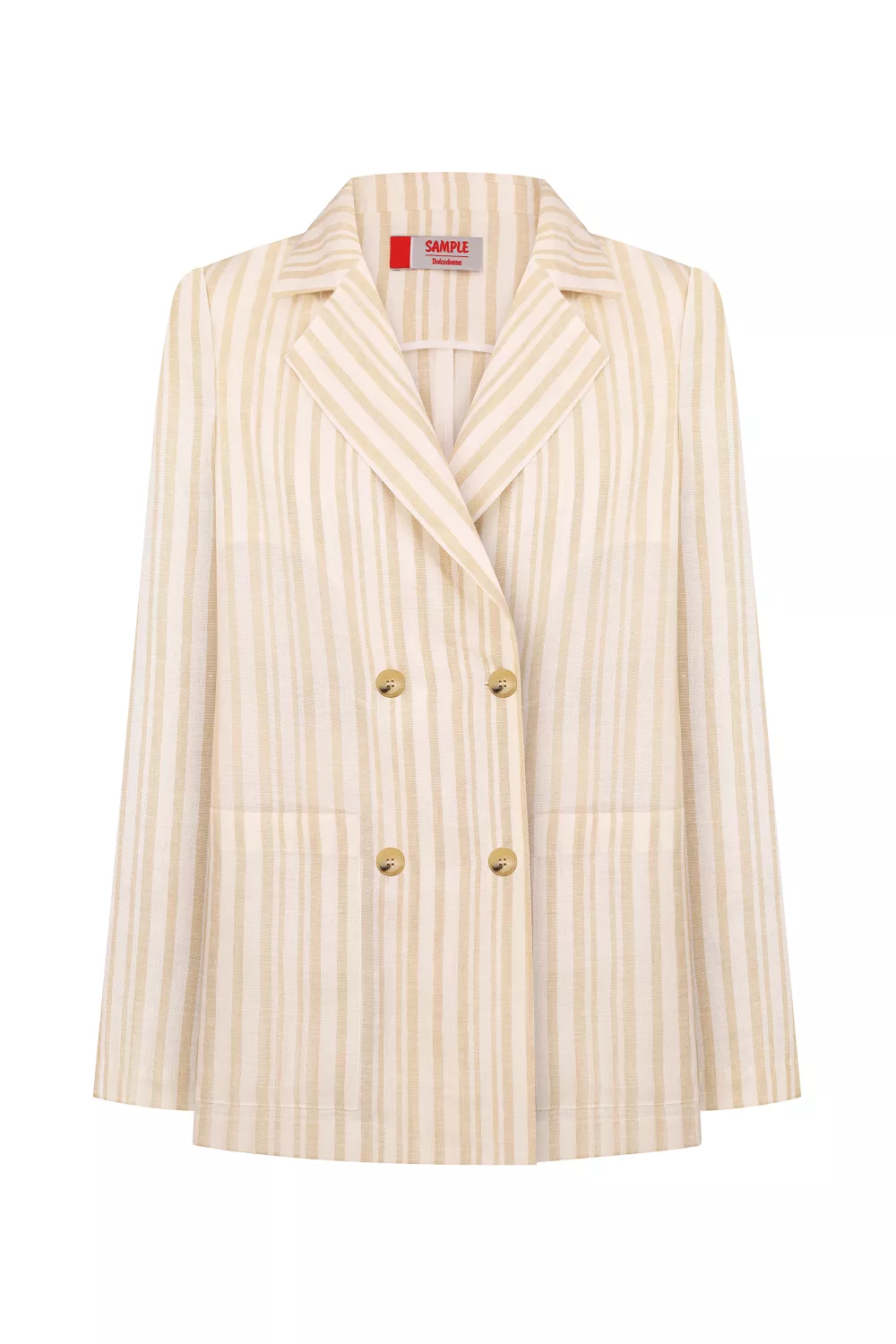Оверсайз модель жакета прямого покроя в нежную полоску пригодится на любое событие в летние жаркие дни. Натуральный лен защитит вас от жары и создаст комфорт