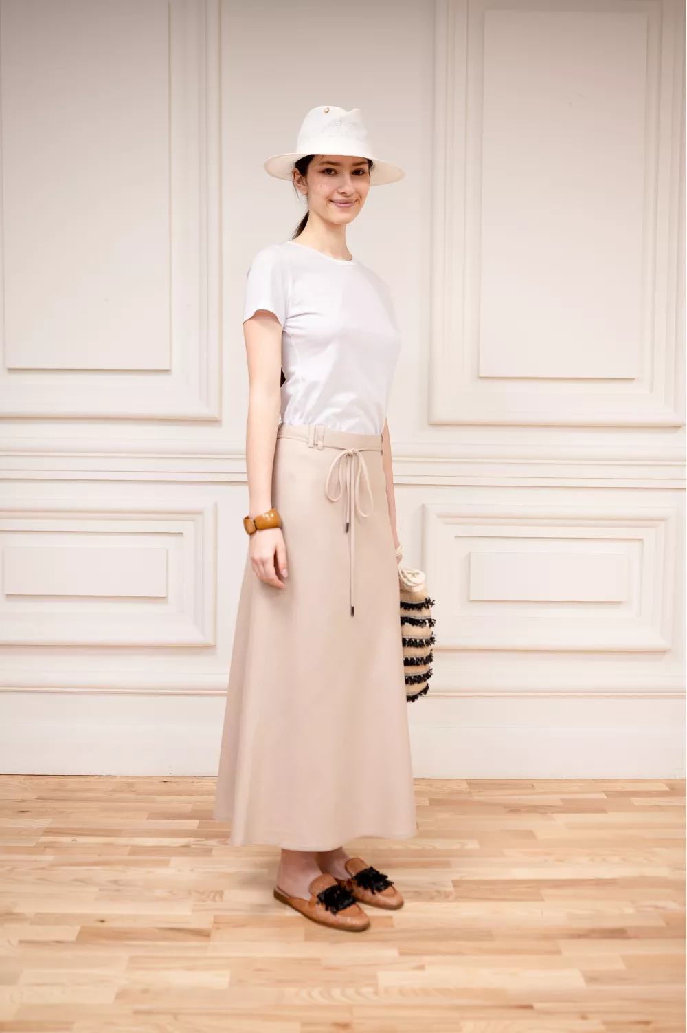 Базовая модель юбки на каждый день по косой создает эффект струи ткани и обеспечивает легкость в движениях.