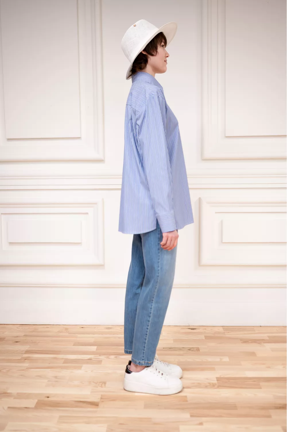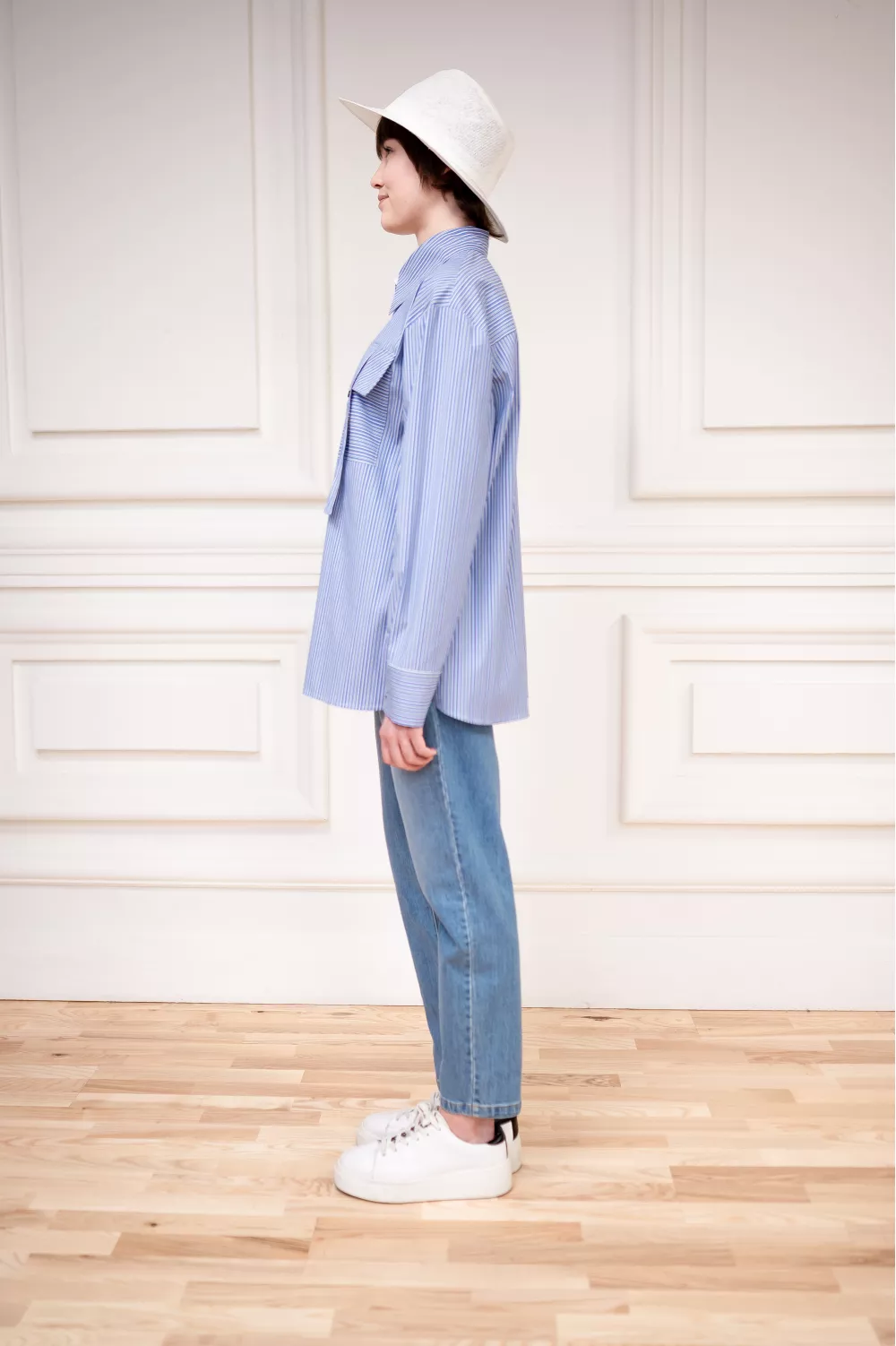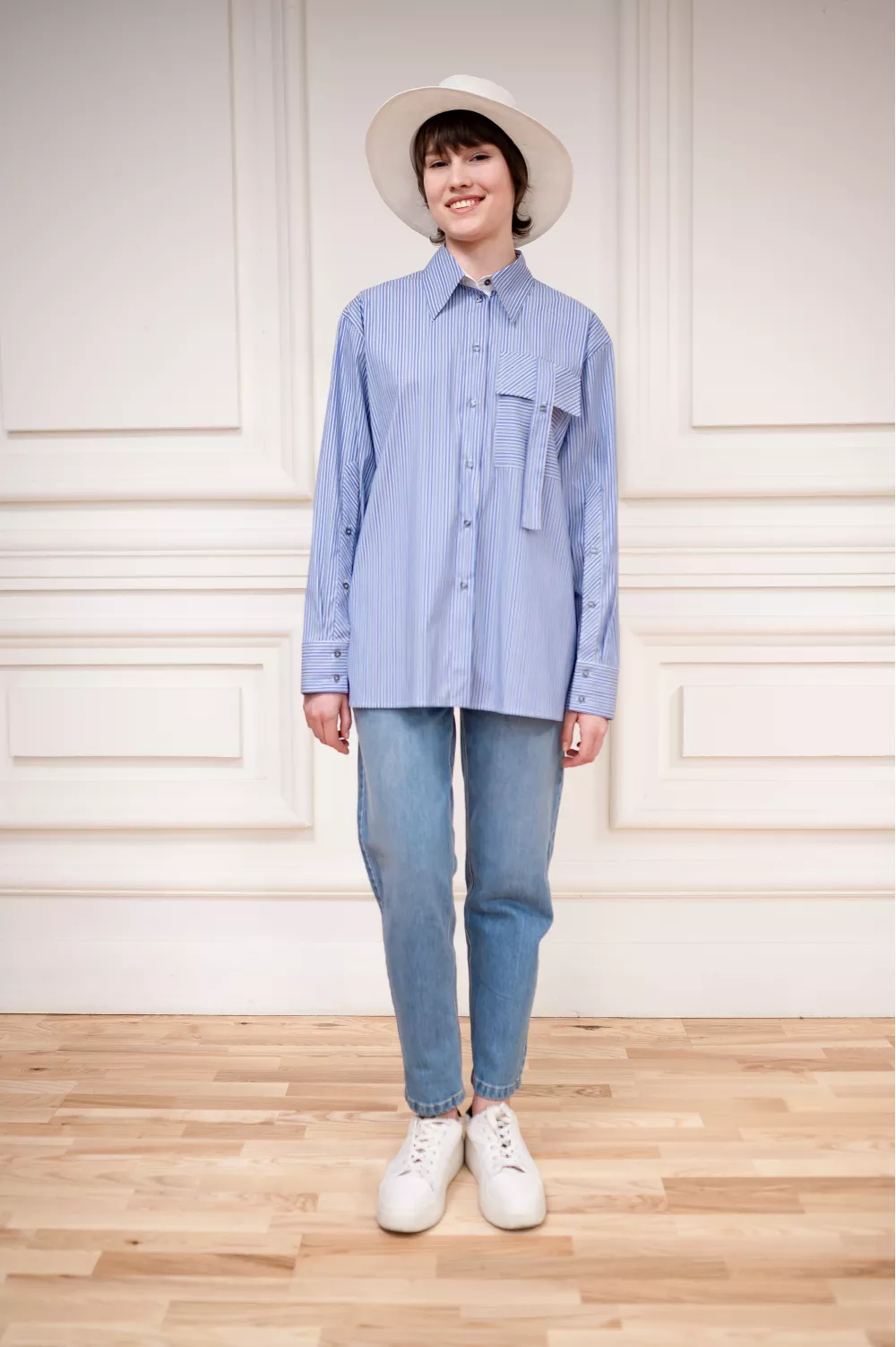 Рубашка из натурального хлопка в классическом покрое со стилизованным накладным карманом является отличным дополнением к весенней гардеробной капсуле.