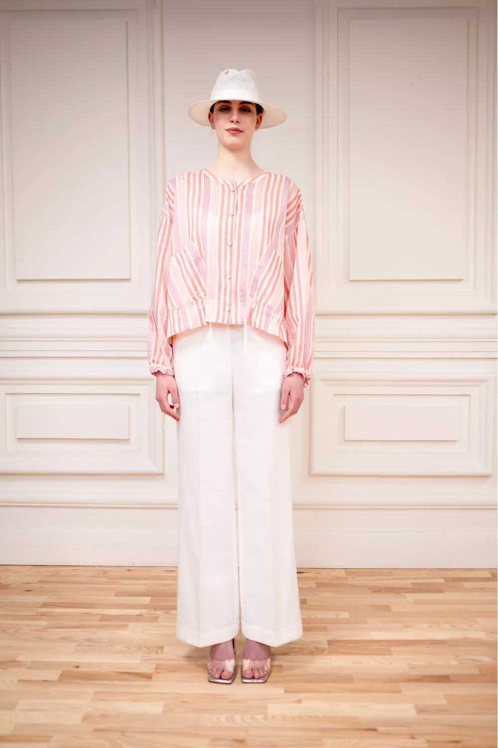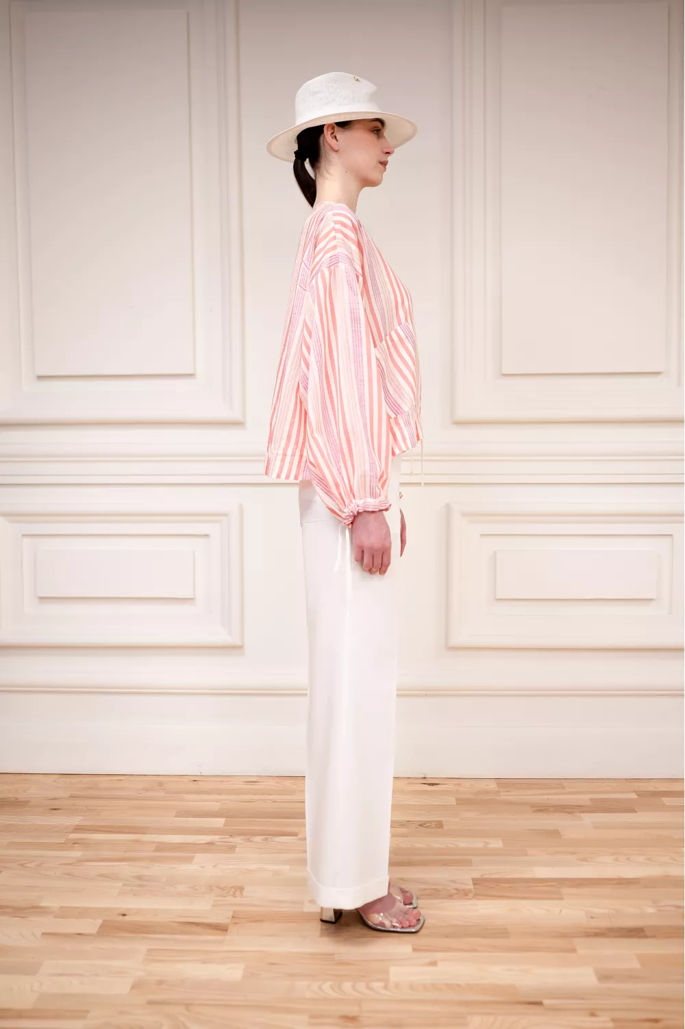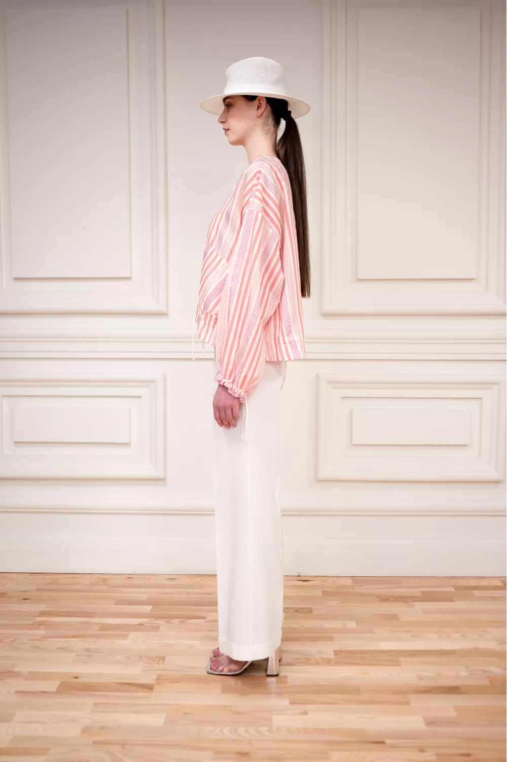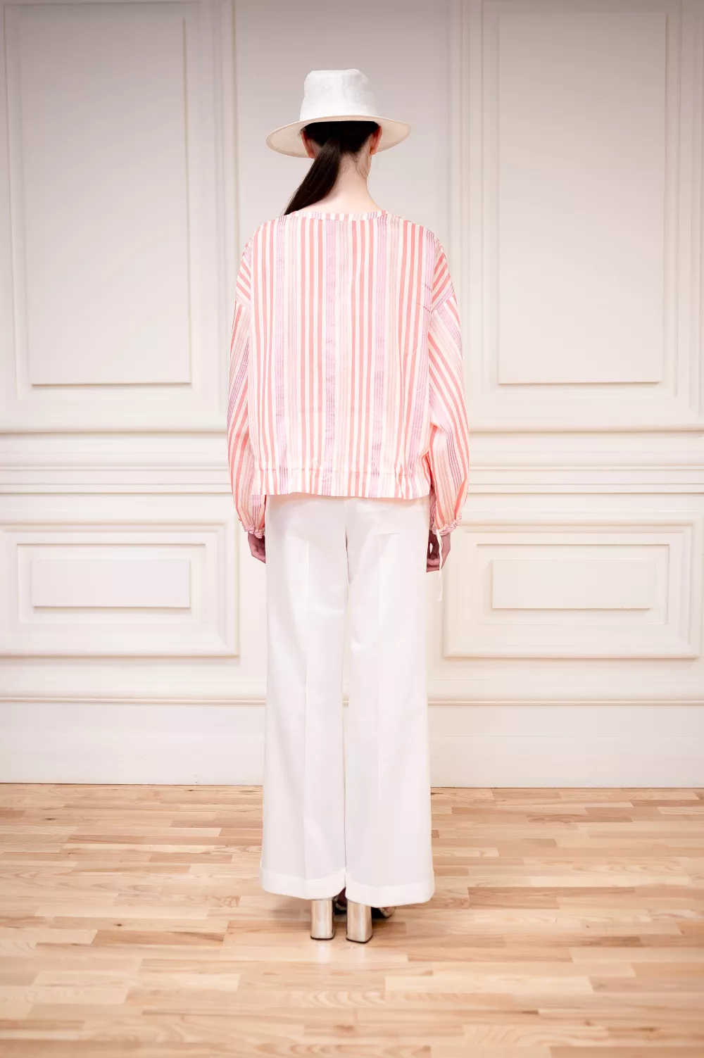 Хрупкая модель блузы изготовленной из смеси натуральных тканей, которые в сочетании между собой создали идеальную вещь на летний сезон, ведь она почти невесома. Также на поясе есть дополнительные завязки для регулировки.