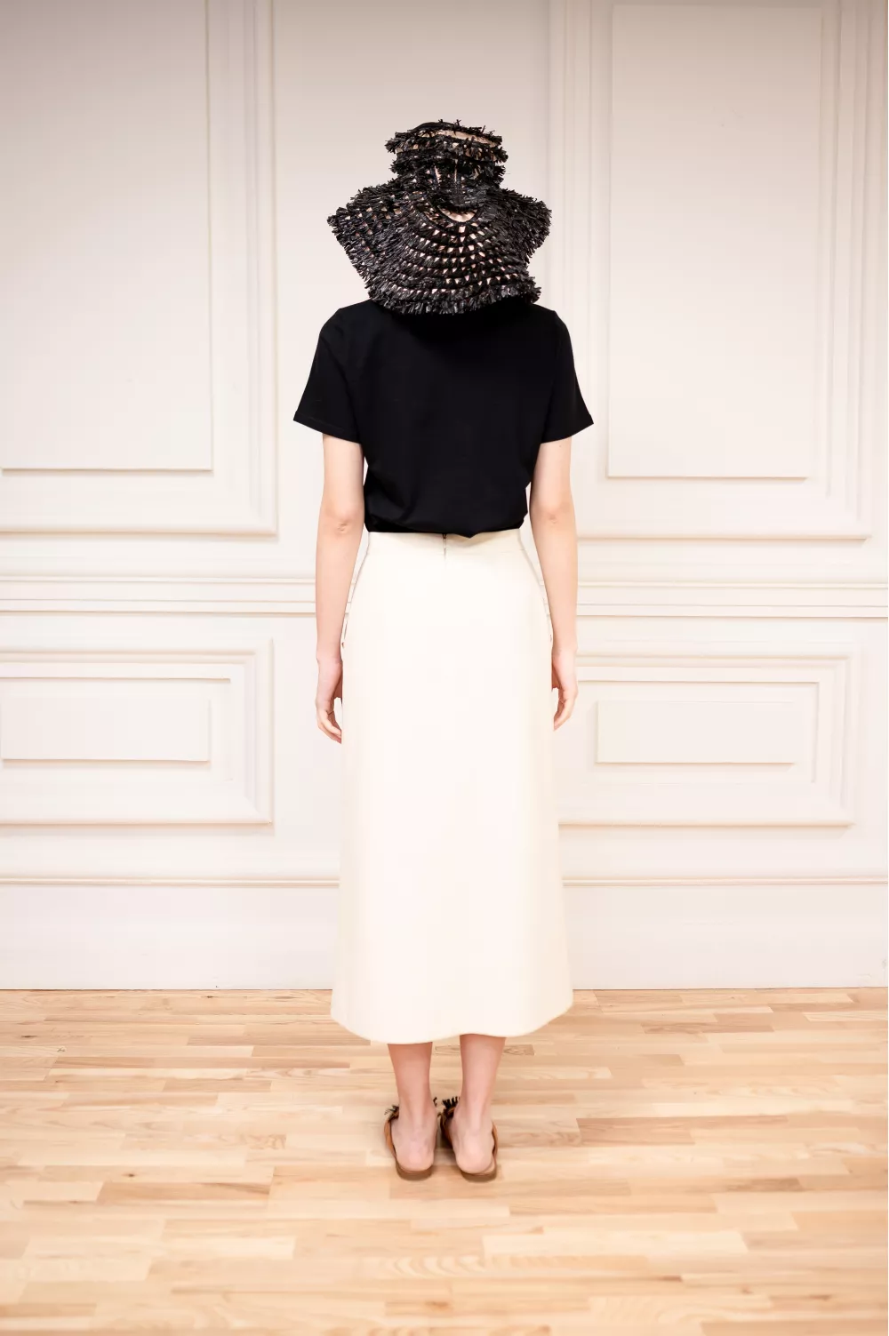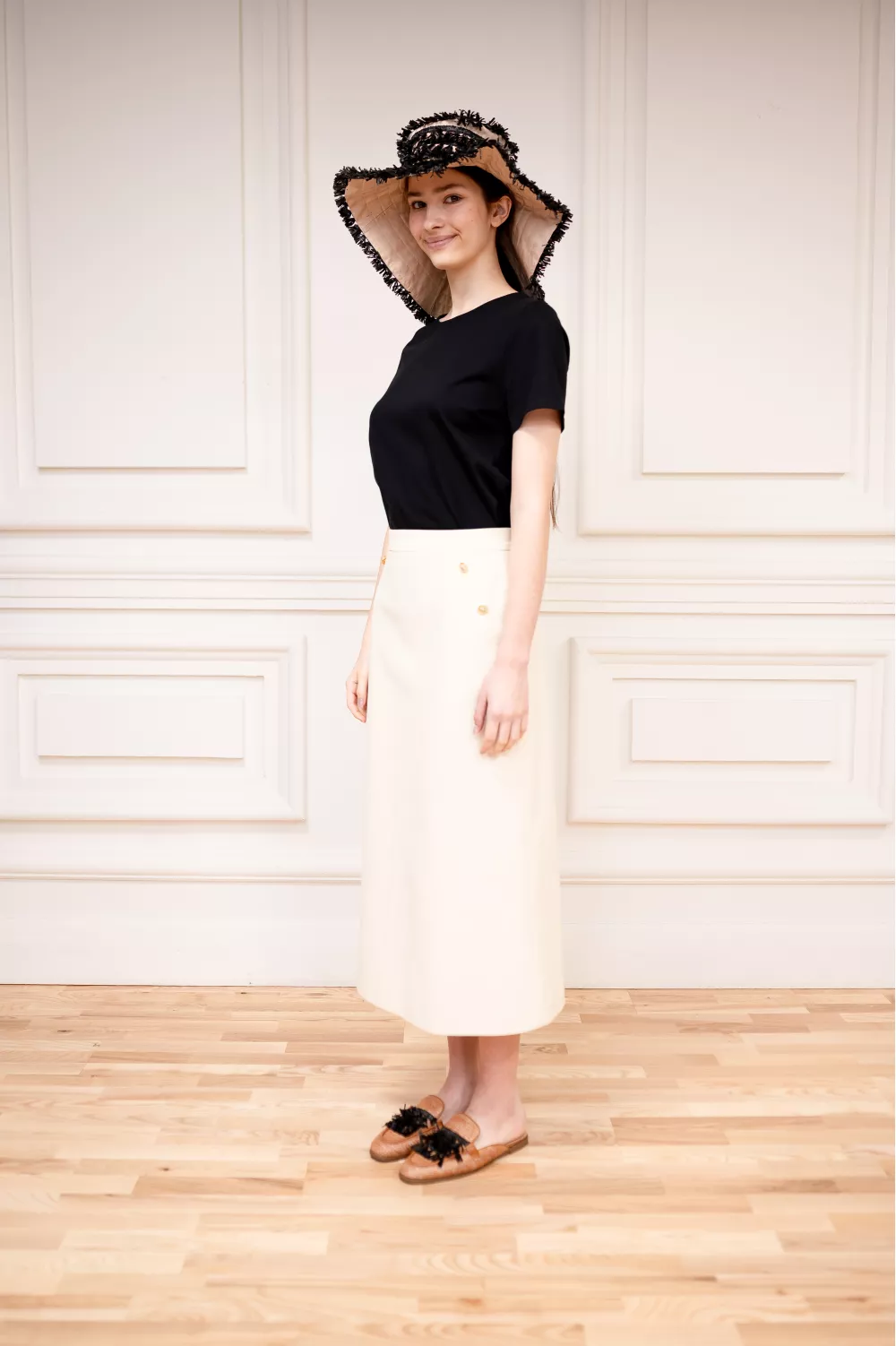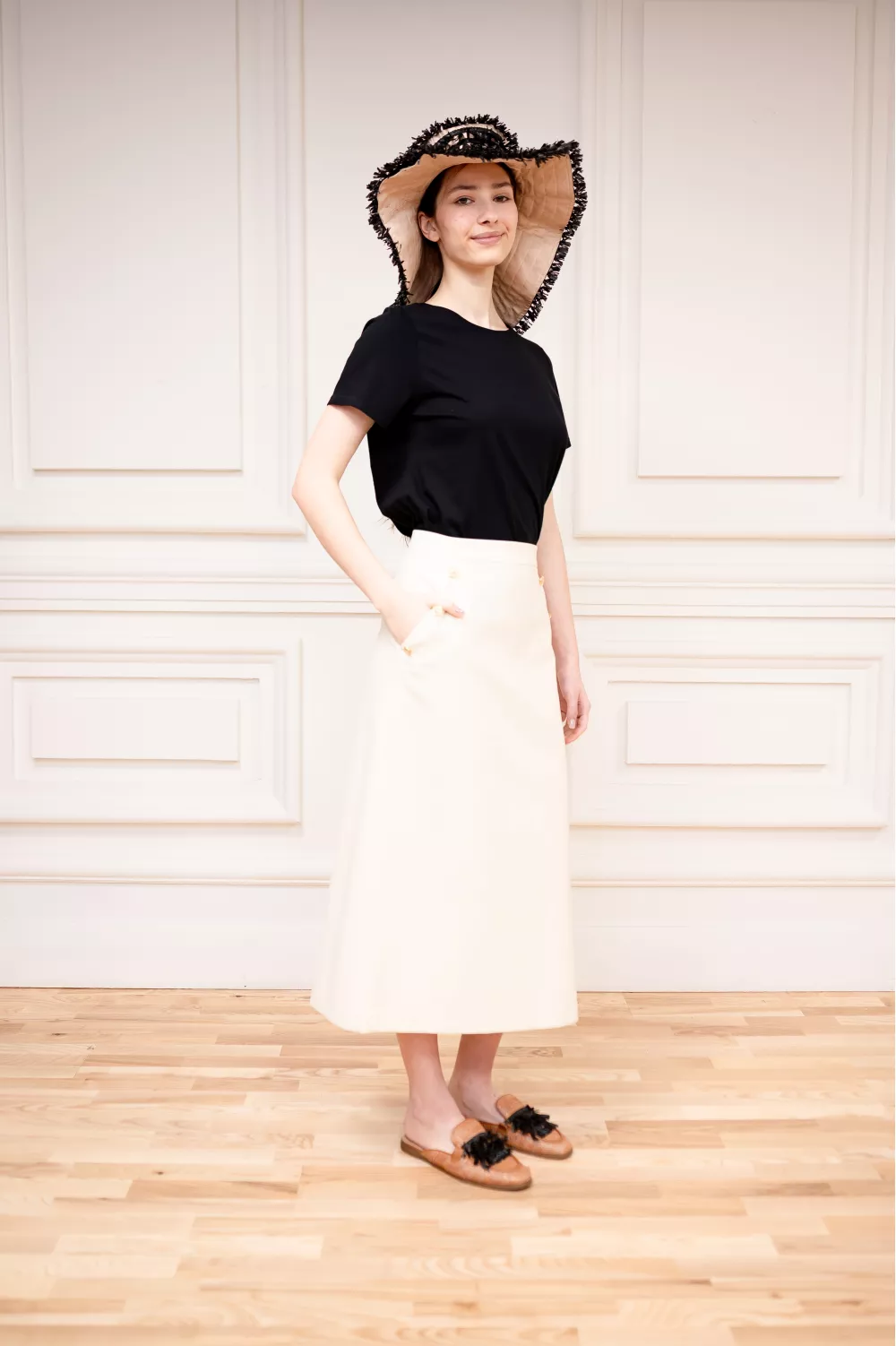 Базовая модель делового стиля украшена золотой фурнитурой и выполнена из натурального хлопка. Подойдет как для офиса, так и для праздничных событий