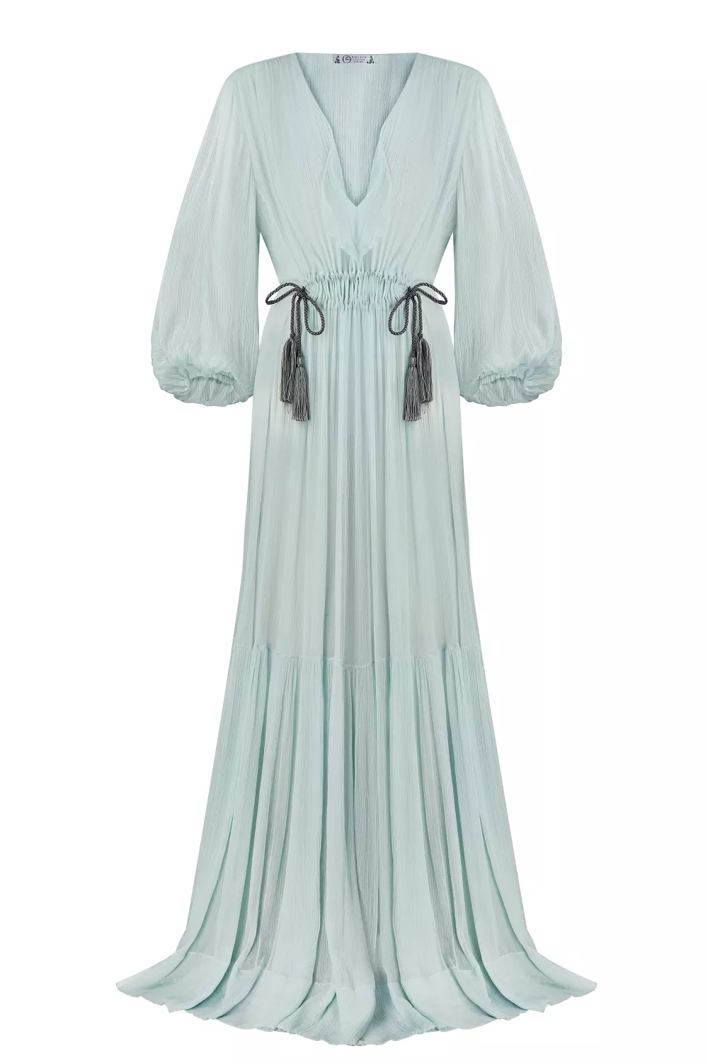 The Mayfei dress has such a romantic, bohemian vibe. Made from silk and chiffon, it's flounced, has a plunging neckline, and a drawstring waist to cinch in a relaxed shape.