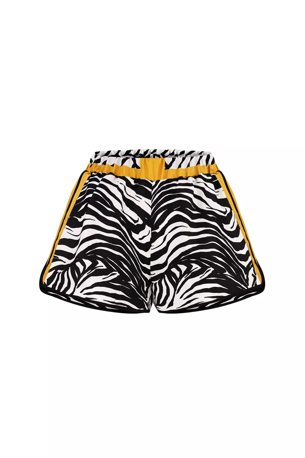 Heidi's pajama-style shorts are made of natural silk and decorated with a zebra print. The loose fit and elastic create comfort