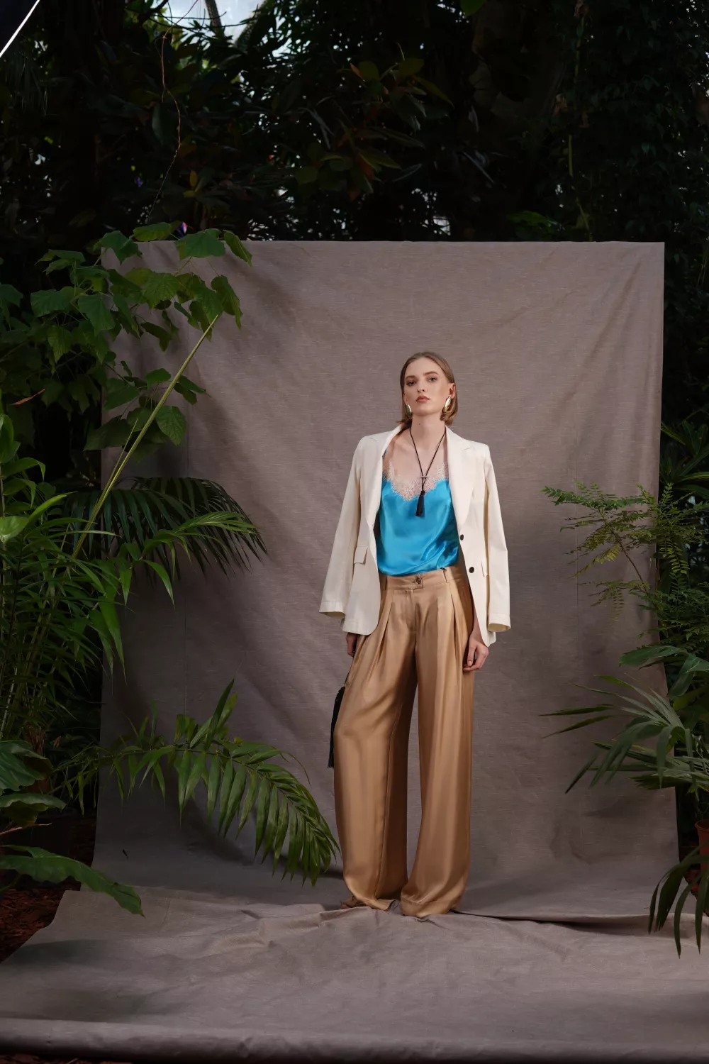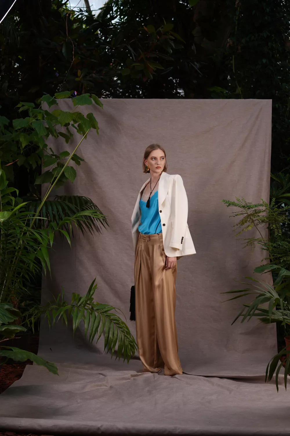 Impeccable craftsmanship and impeccable fabrics are the foundation of Golets collections, and this Iya blazer is sure to stand the test of time in your wardrobe. Taking cues from classic menswear, it is expertly cut in a sharp double-breasted profile in linen. Pair yours with the matching trousers in our collection.