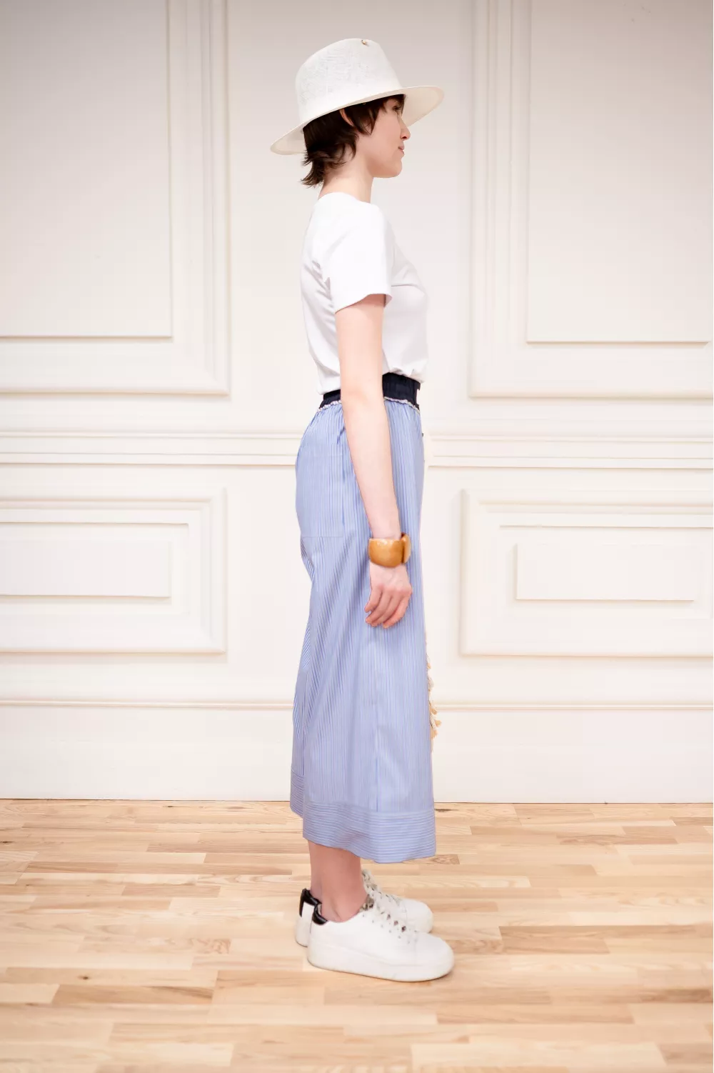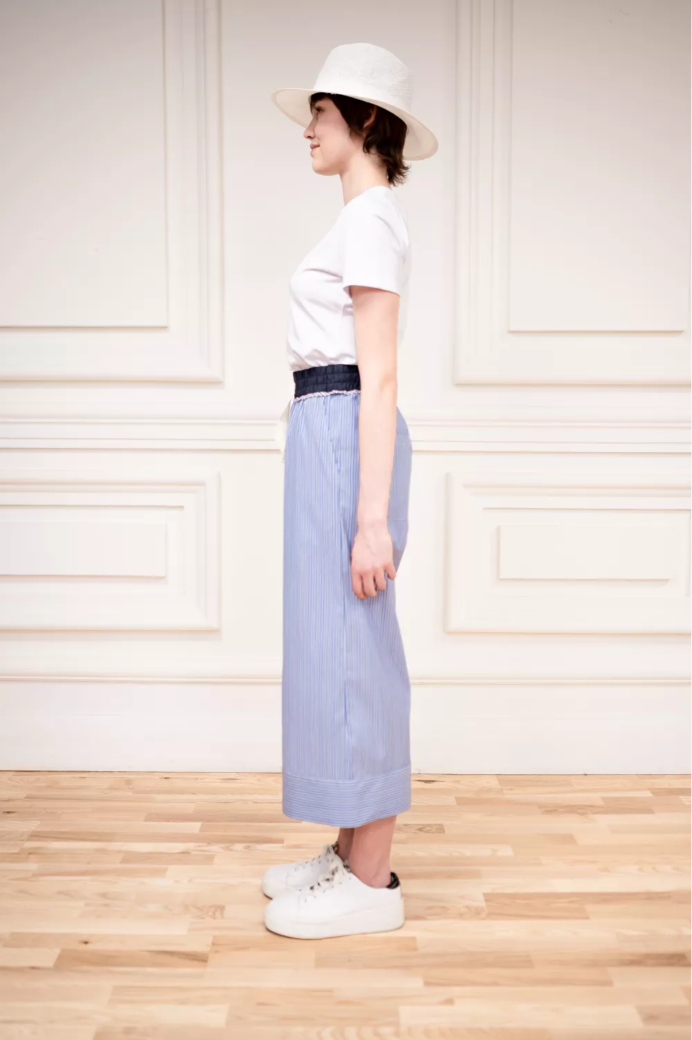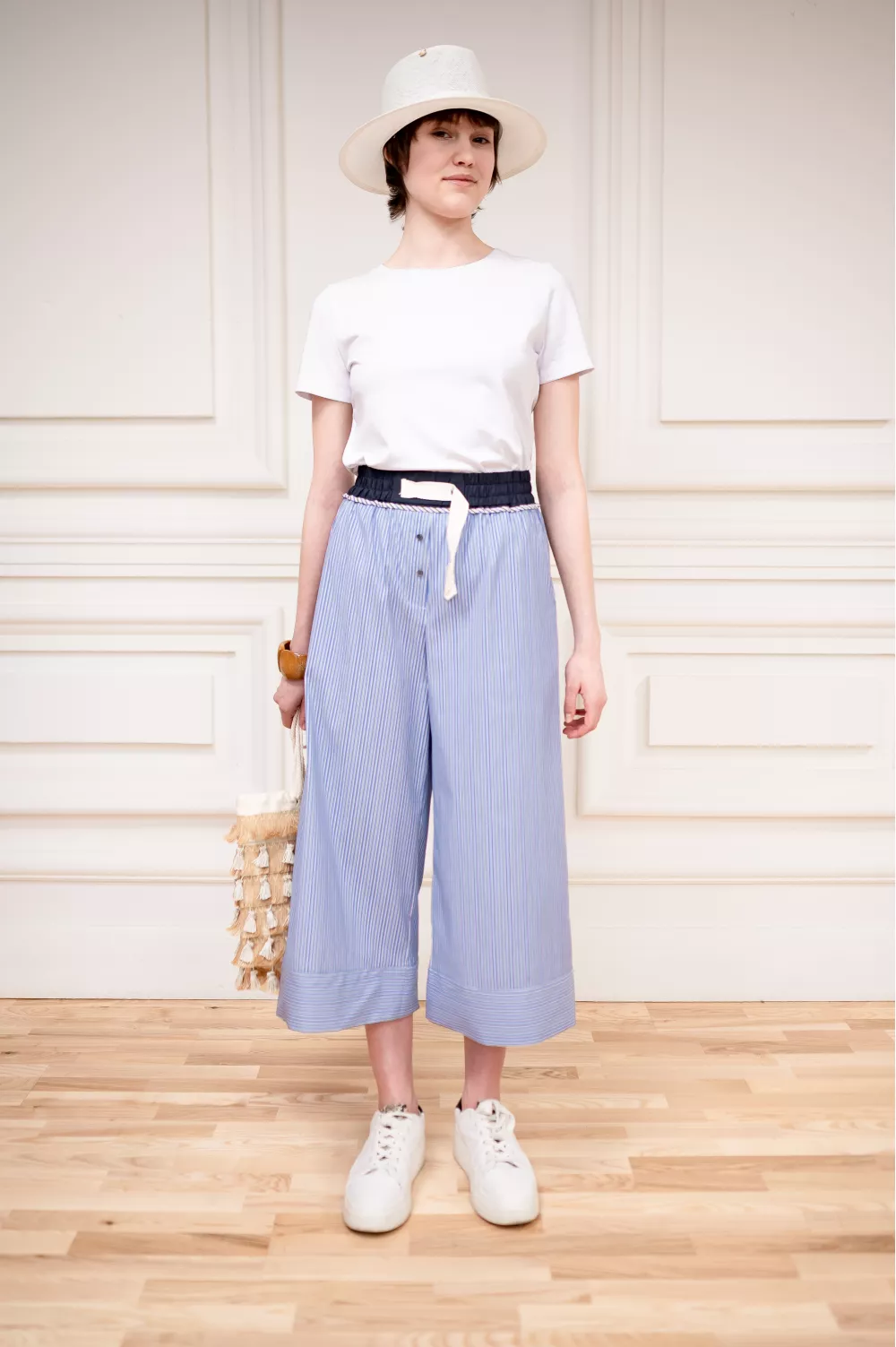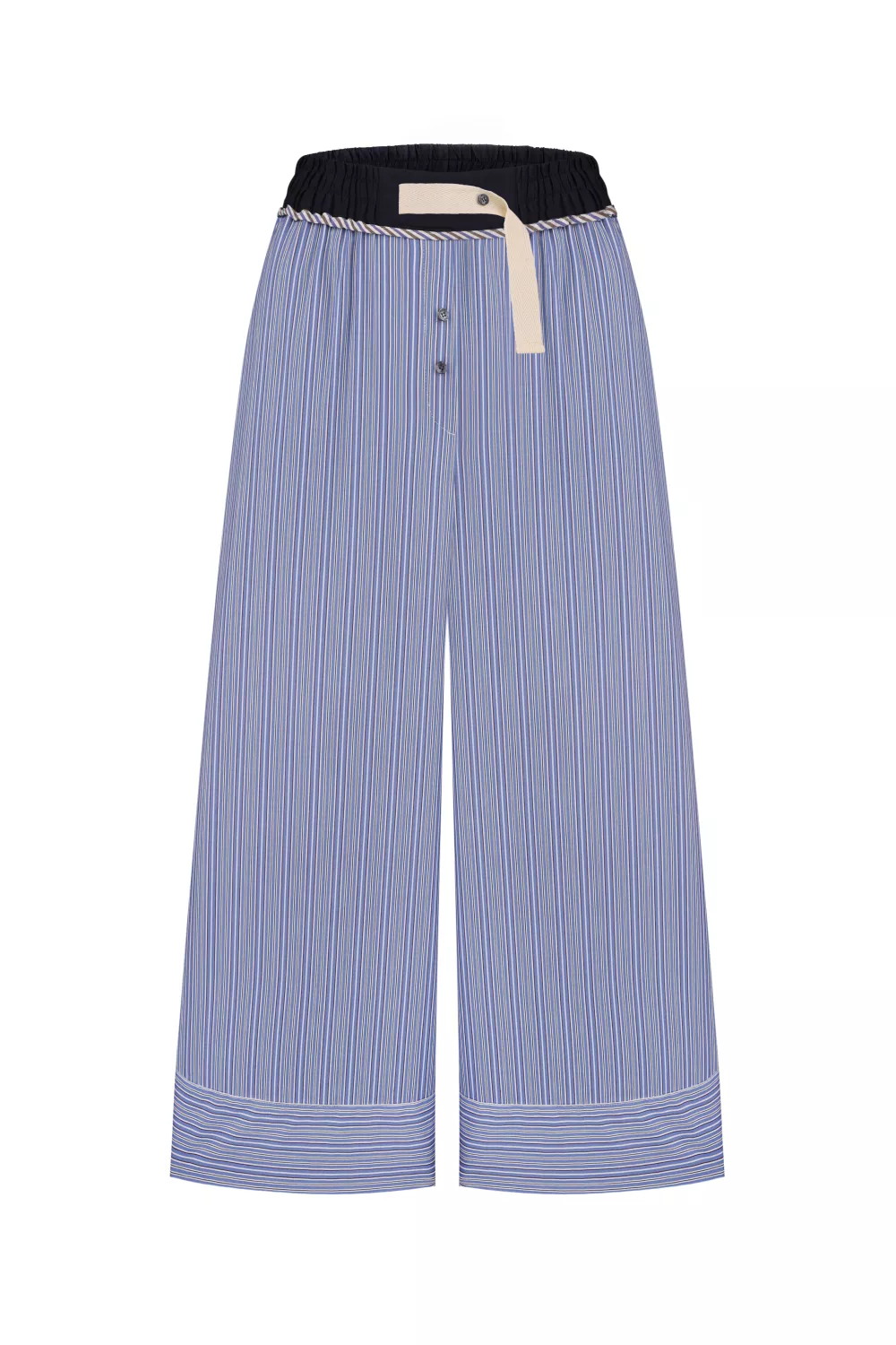Удобная и функциональная модель брюк на летний сезон, напоминающая пижамный стиль и узор мелкой полоски. Идеально сочетается с аналогичной рубашкой Килдер