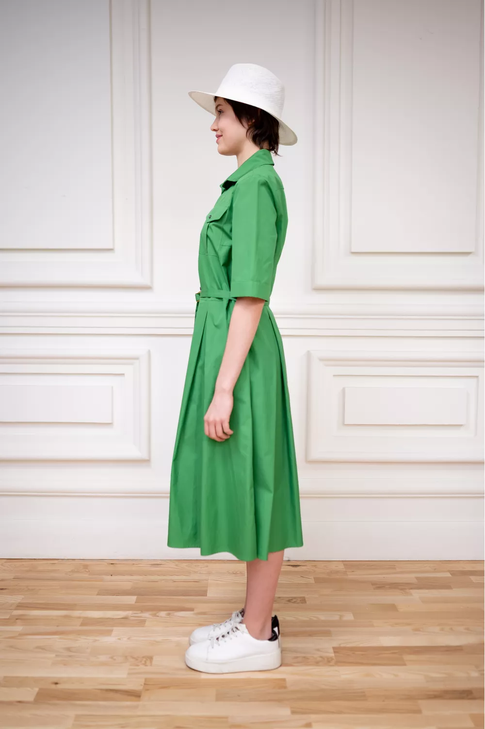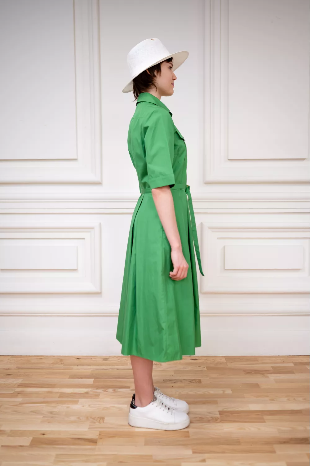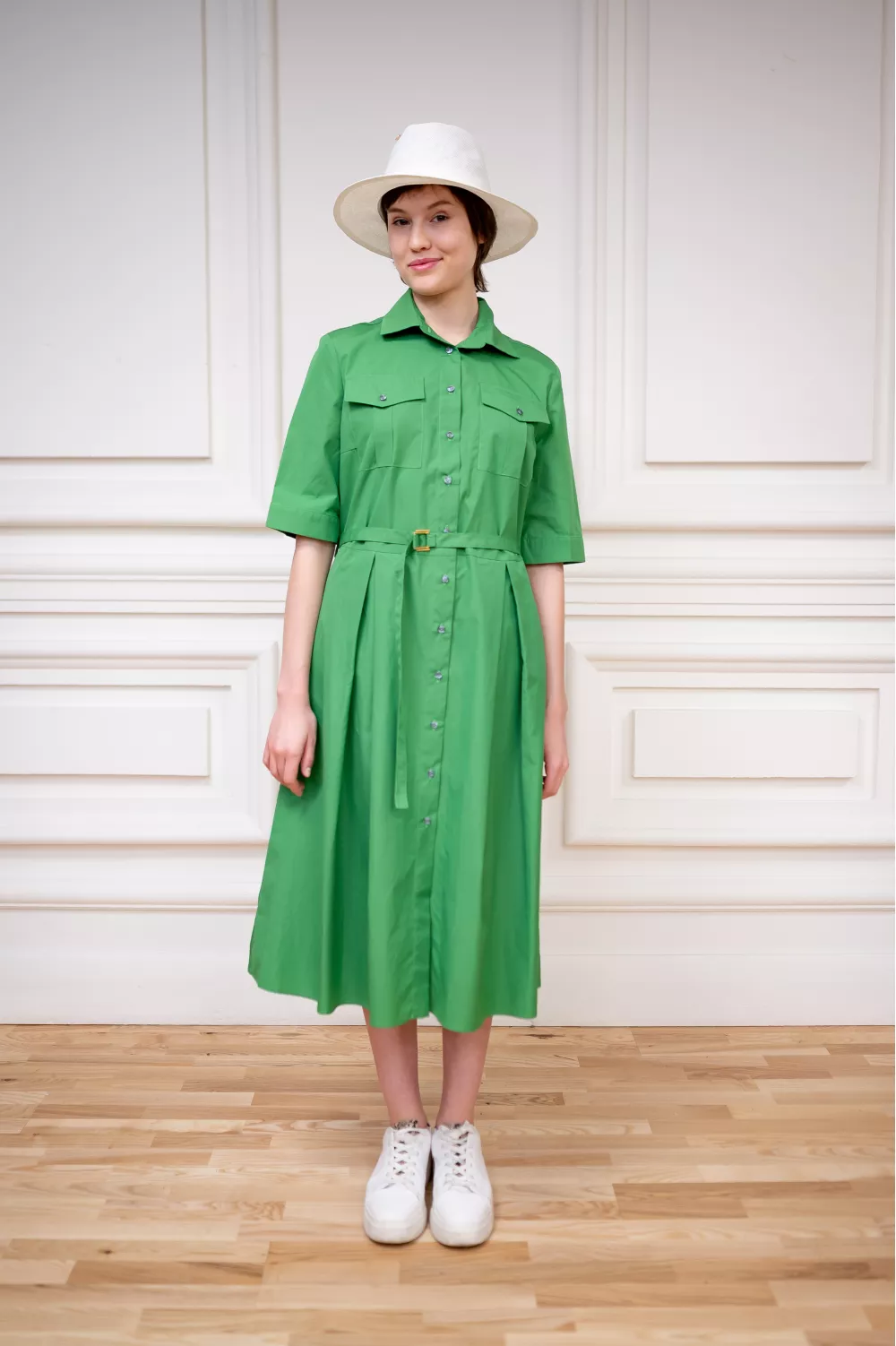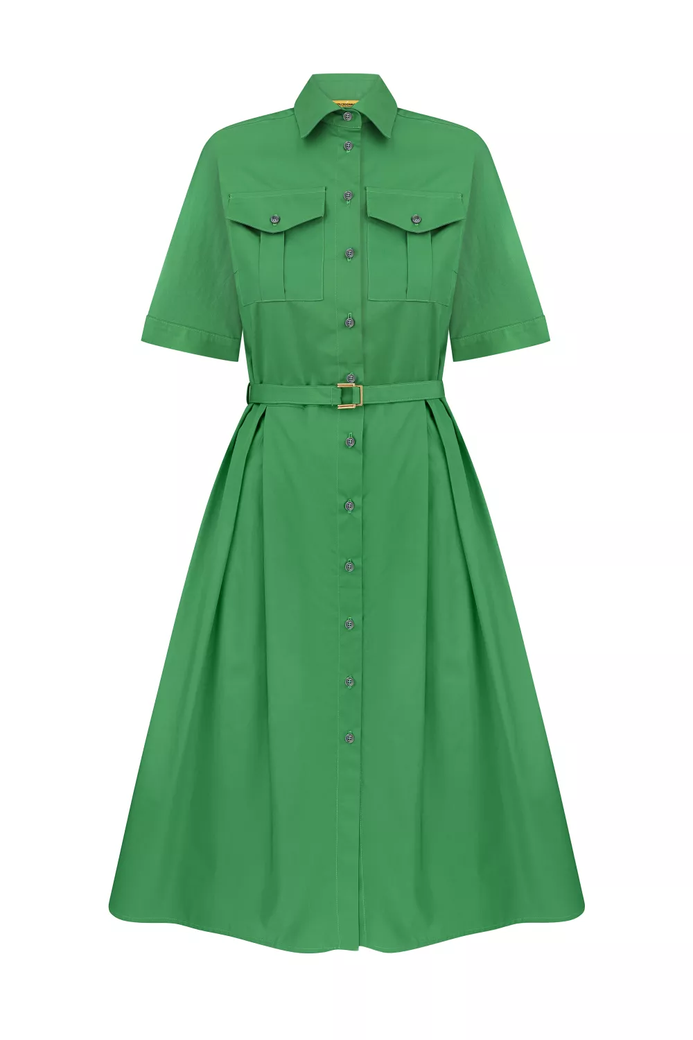 Стильное платье в стиле сафари, имеет приталенный покрой и юбку-солнце клеш, что в сочетании создает идеальную модель для повседневной жизни.