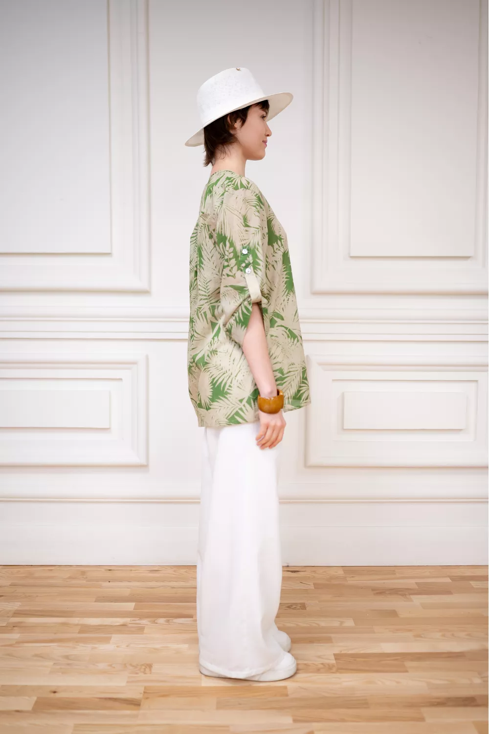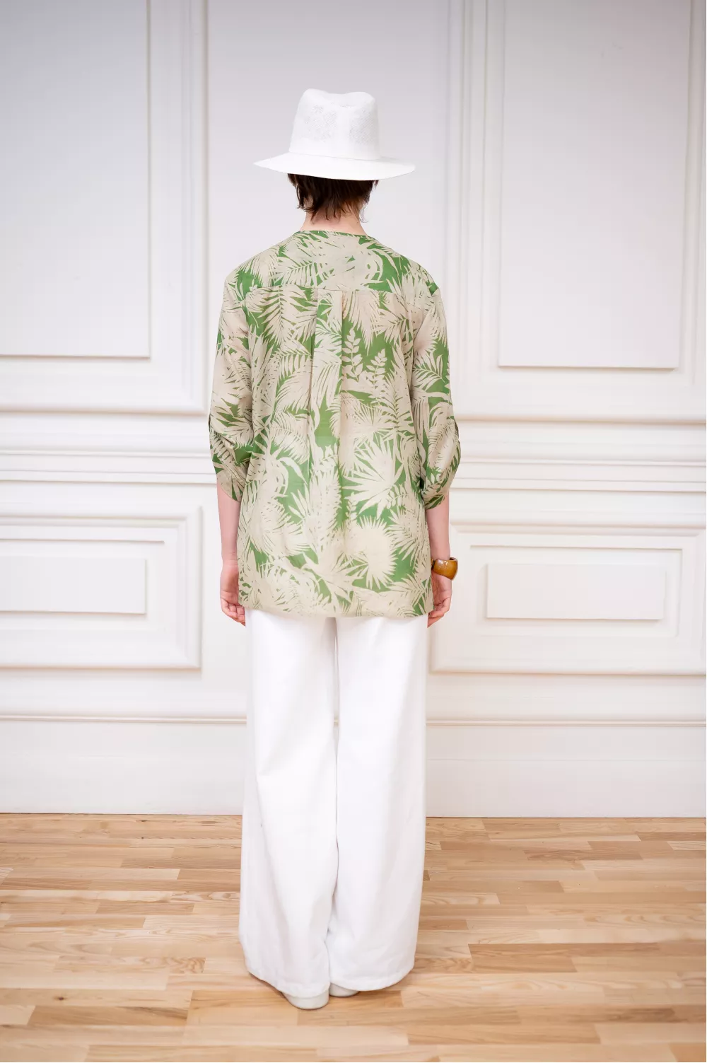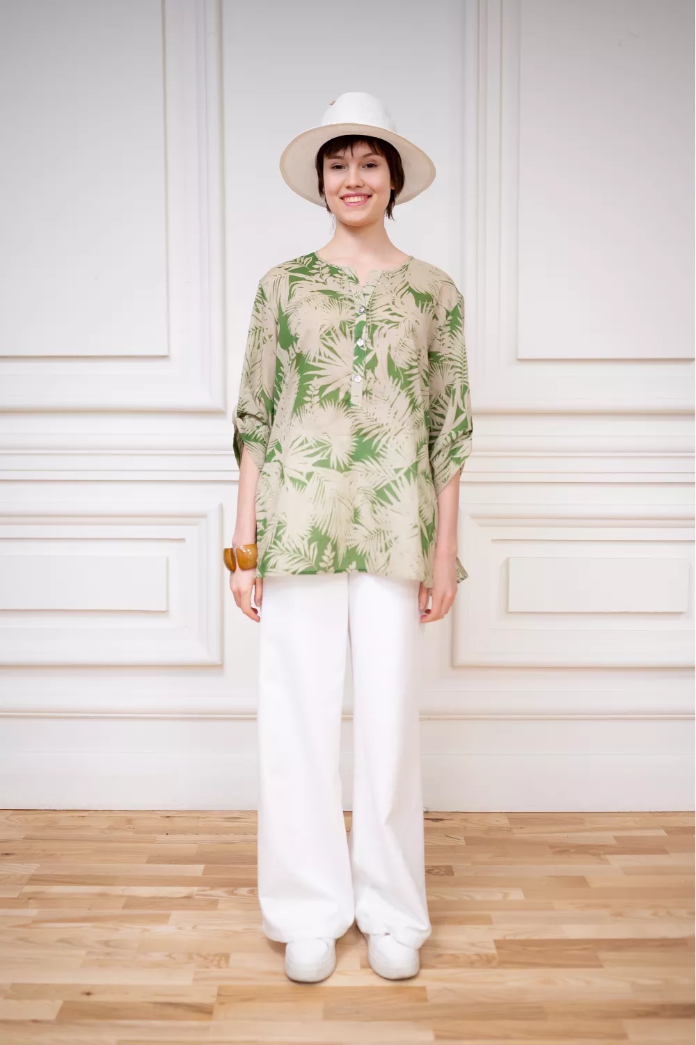 Принтованная зеленая блуза из хлопка в гавайском стиле Афина