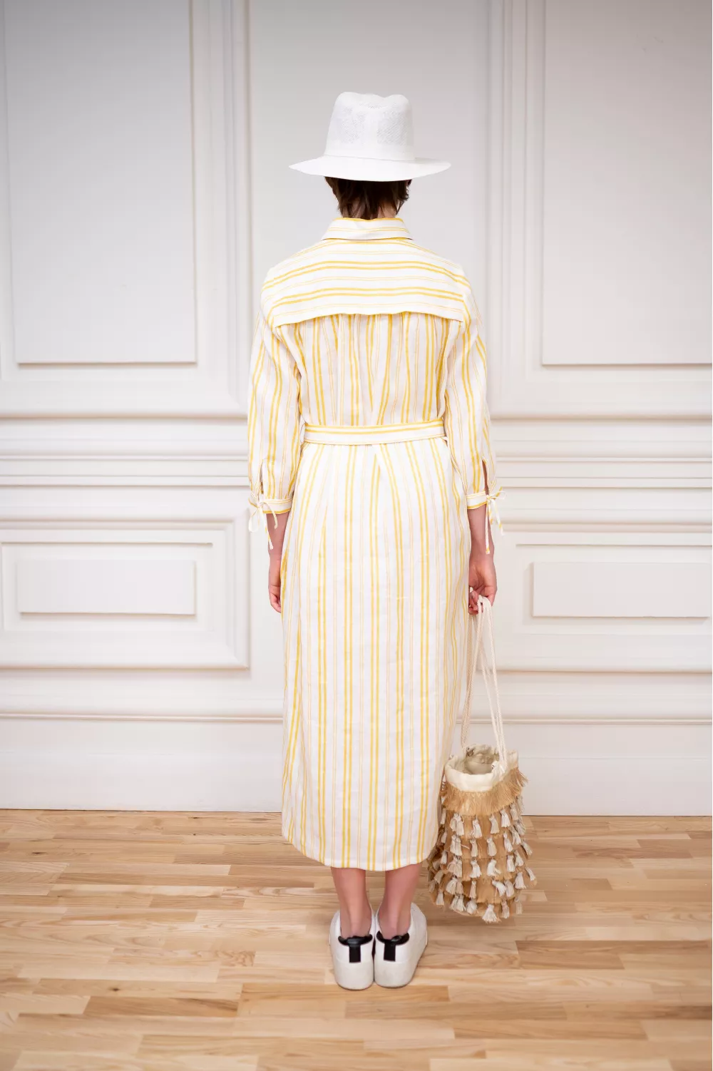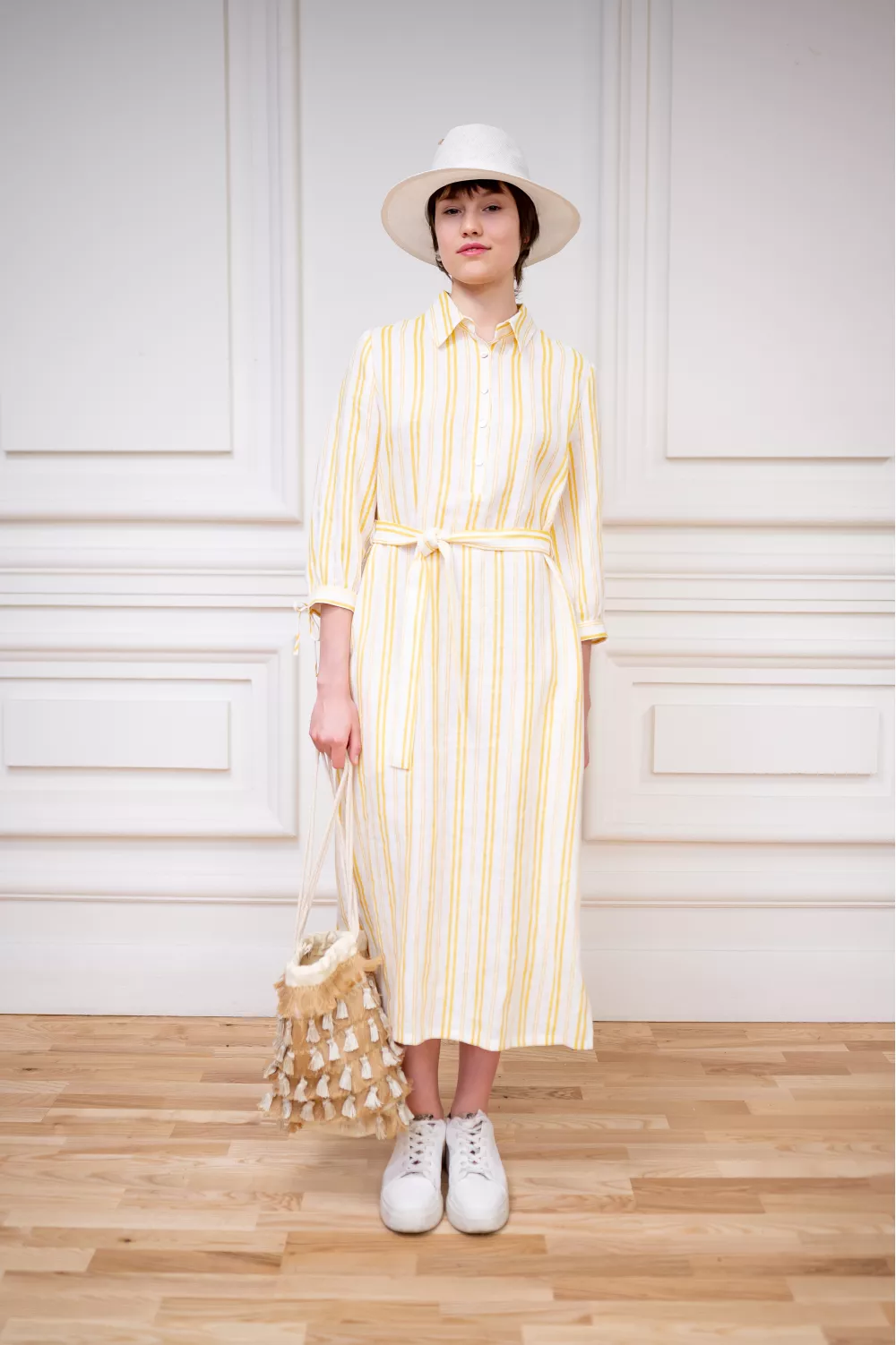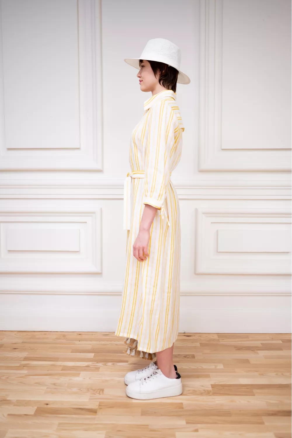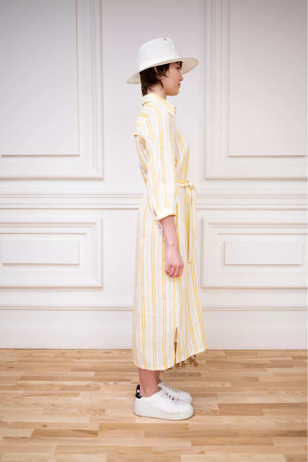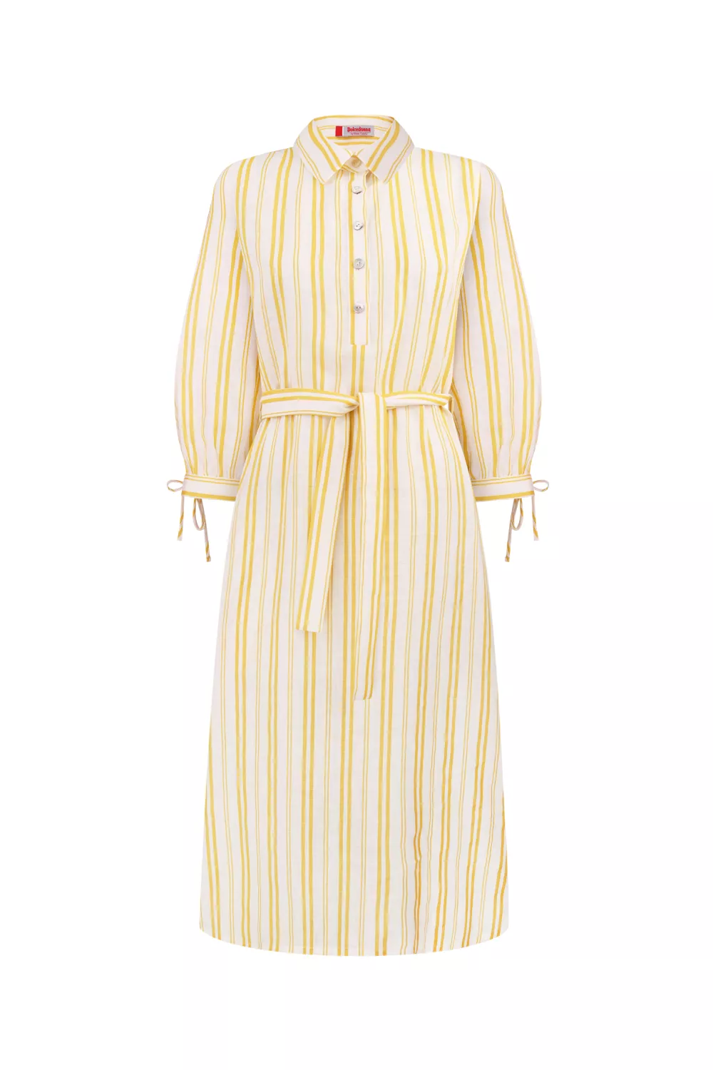 Летнее легкое платье из натурального льна, приятно холодящее кожу даже в жаркие дни. Модель имеет пуговицы в верхней части и пояс
