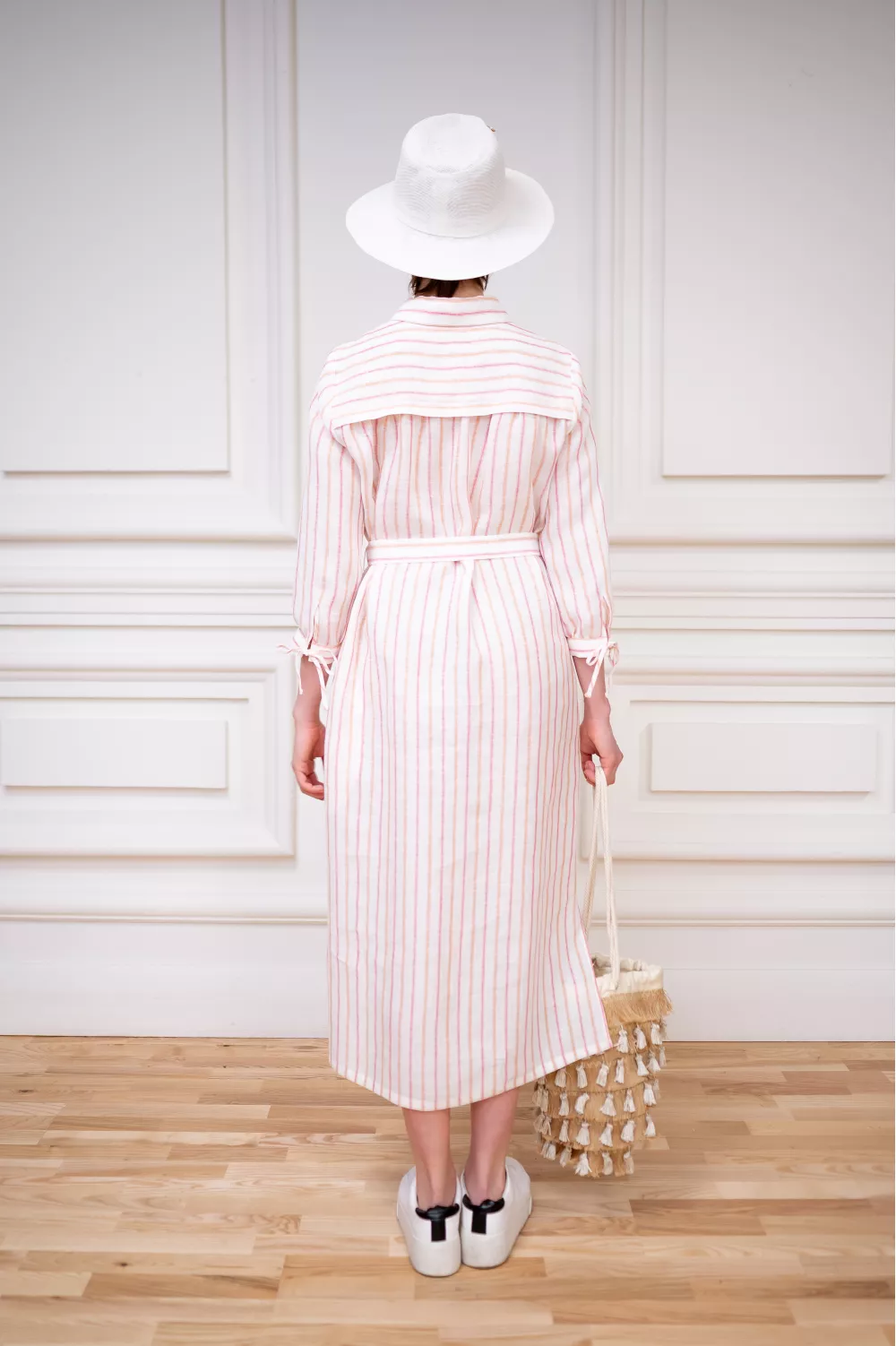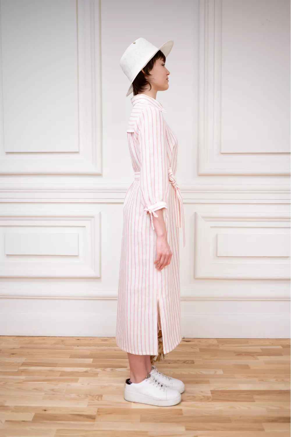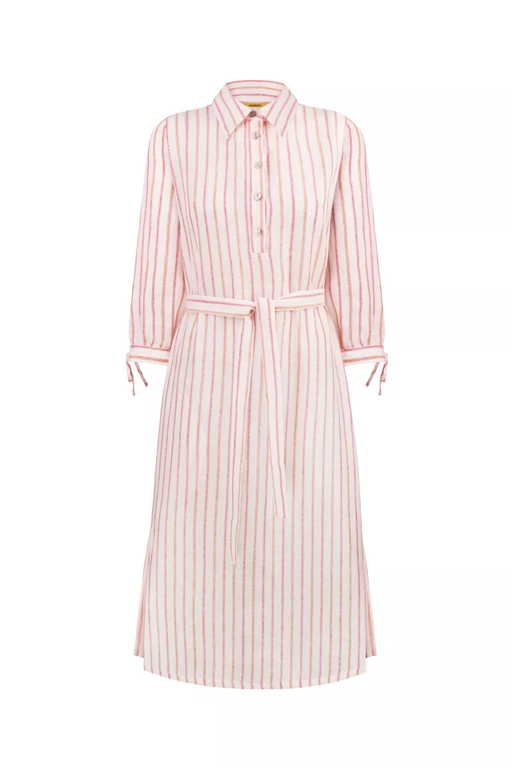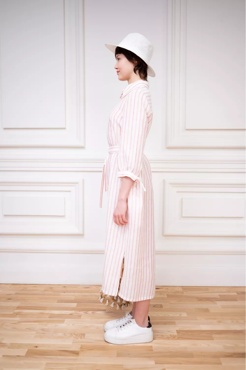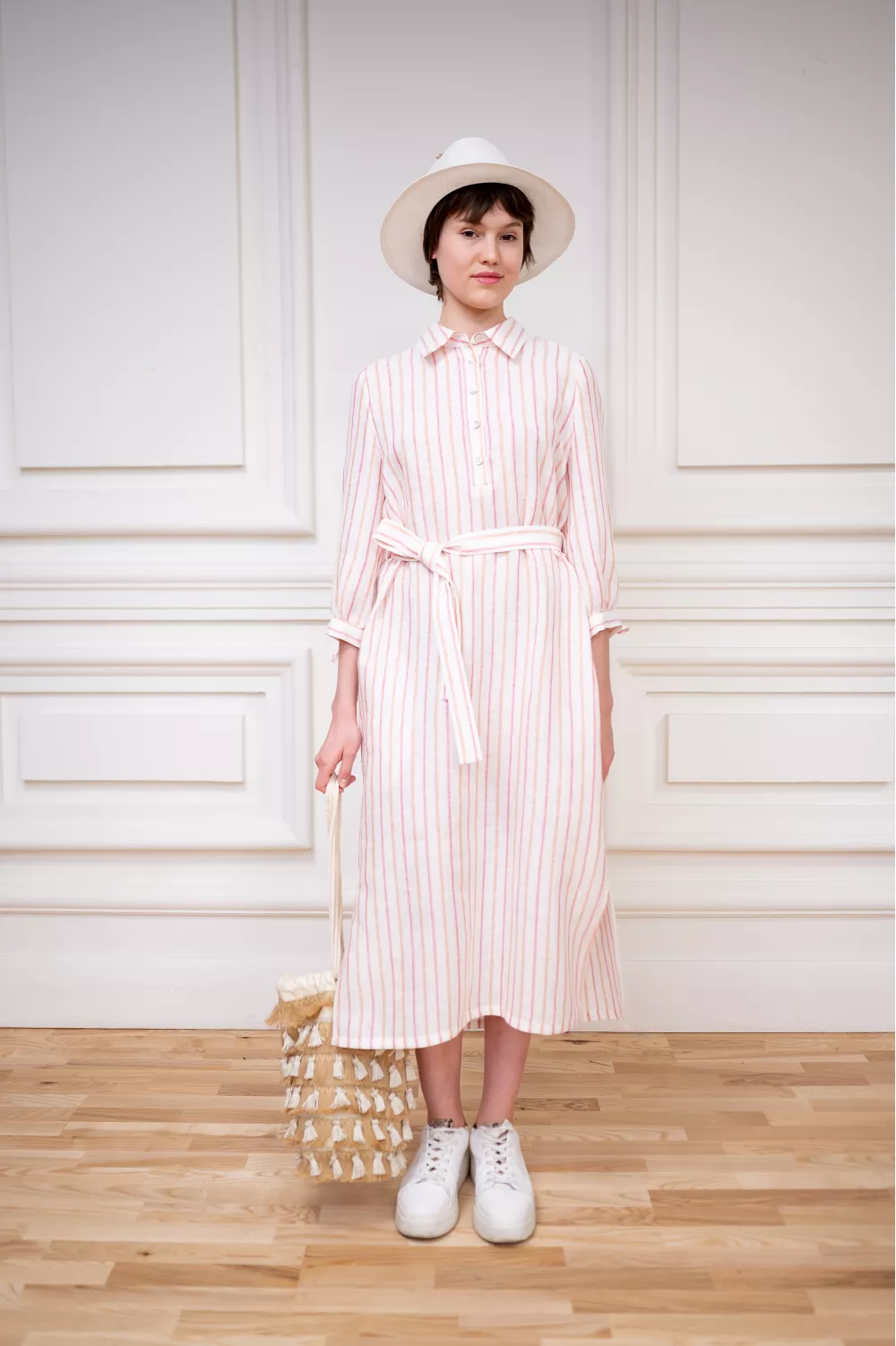 Летнее легкое платье из натурального льна, приятно холодящее кожу даже в жаркие дни. Модель имеет пуговицы в верхней части и пояс