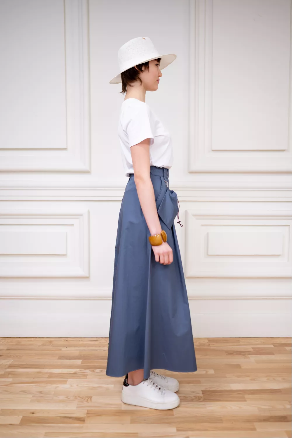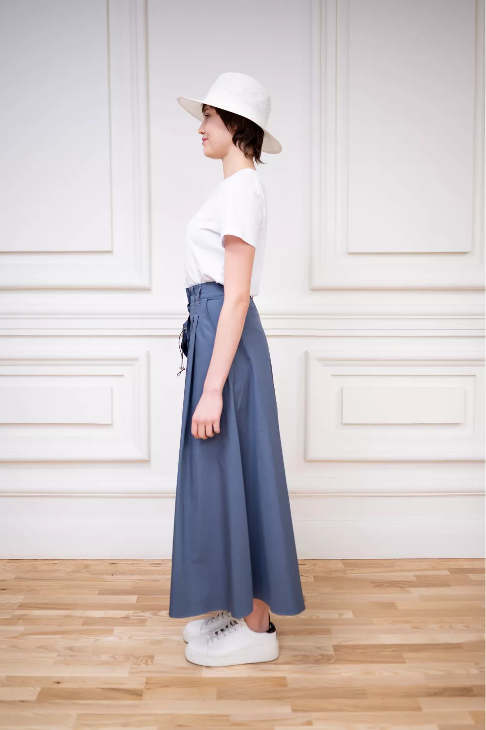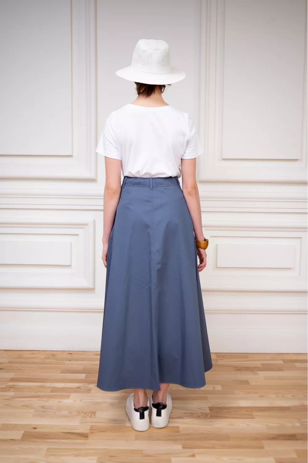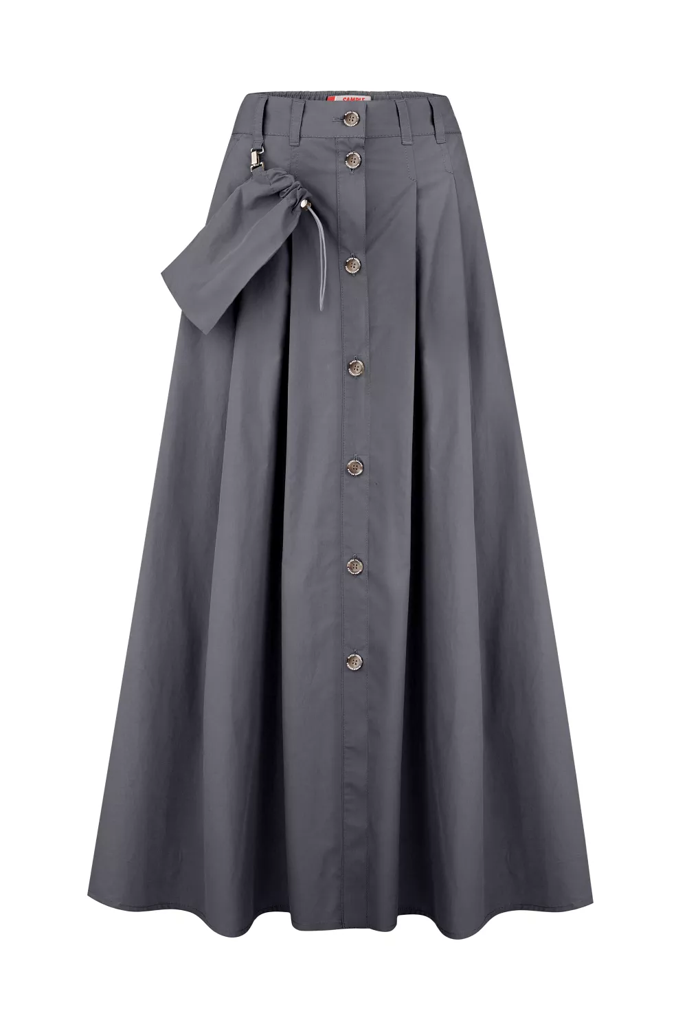 Юбка солнце-клеш на пуговицах по всей длине с дополнительным аксессуарным мешочком для украшений или телефона. Идеально сочетается с базовыми блузками и футболками.