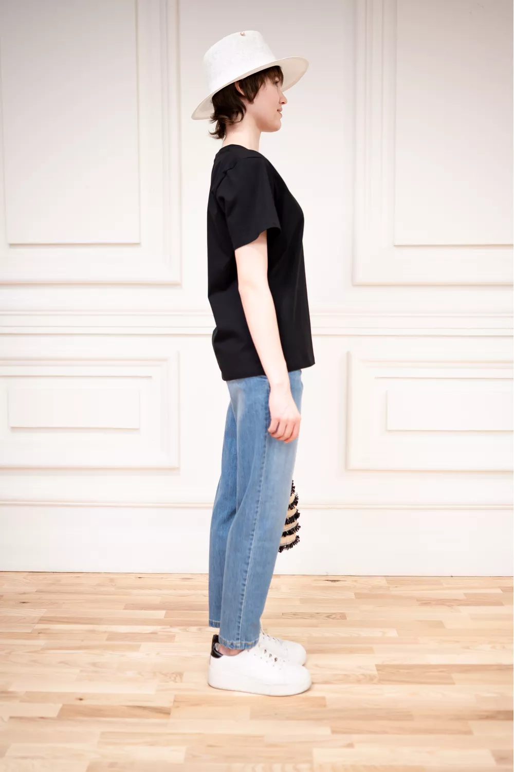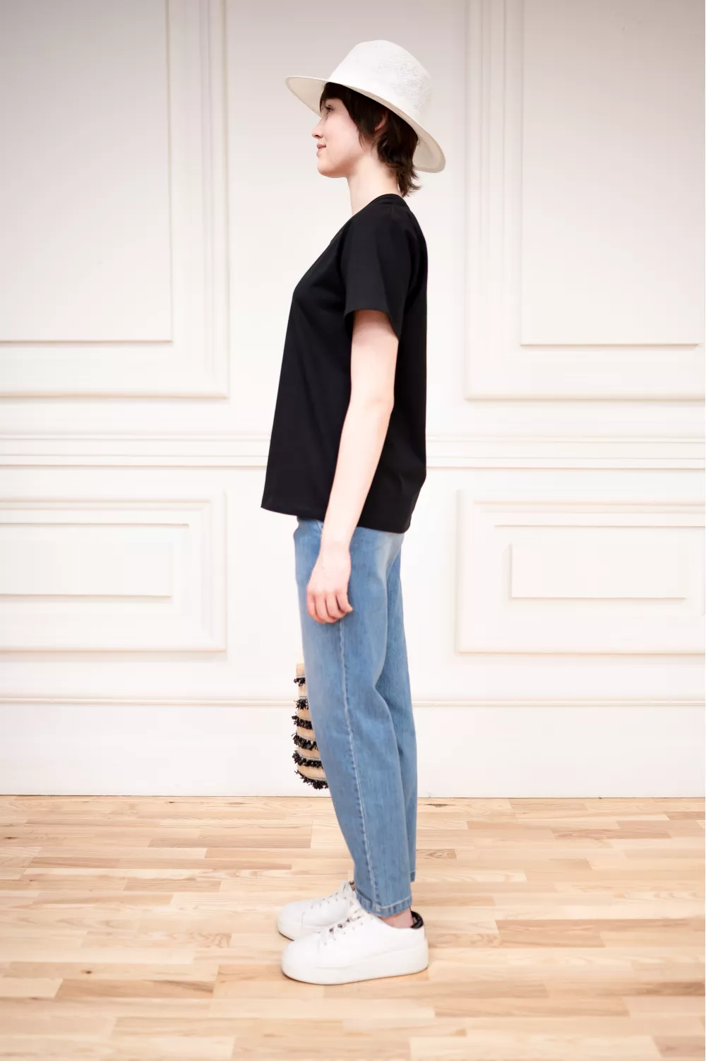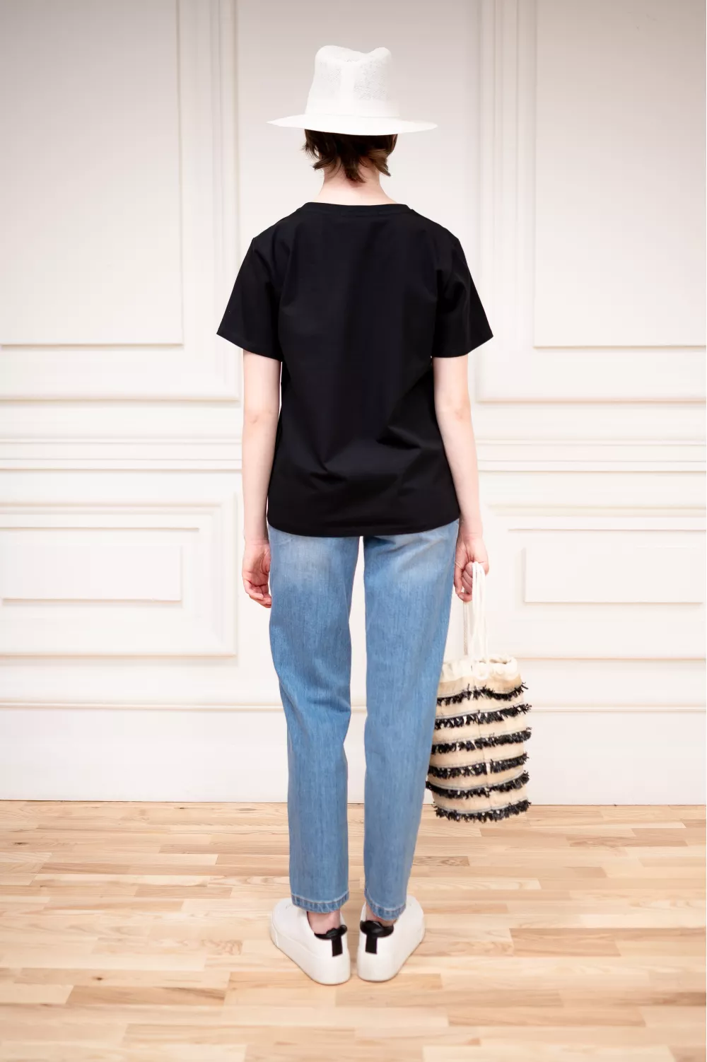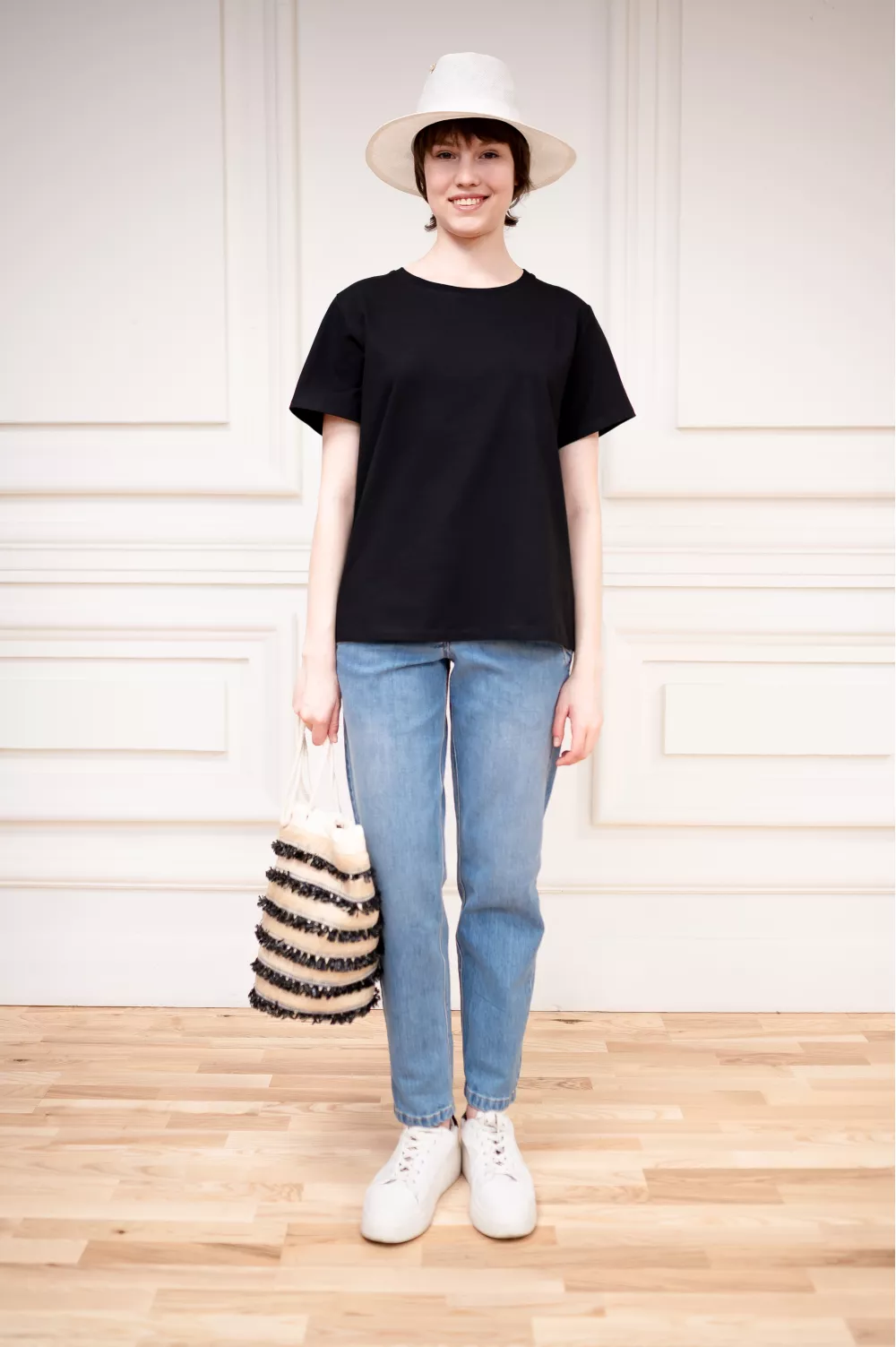 Базовая модель футболки, которая за счет прямого кроя хорошо дополняет разноплановые образы.