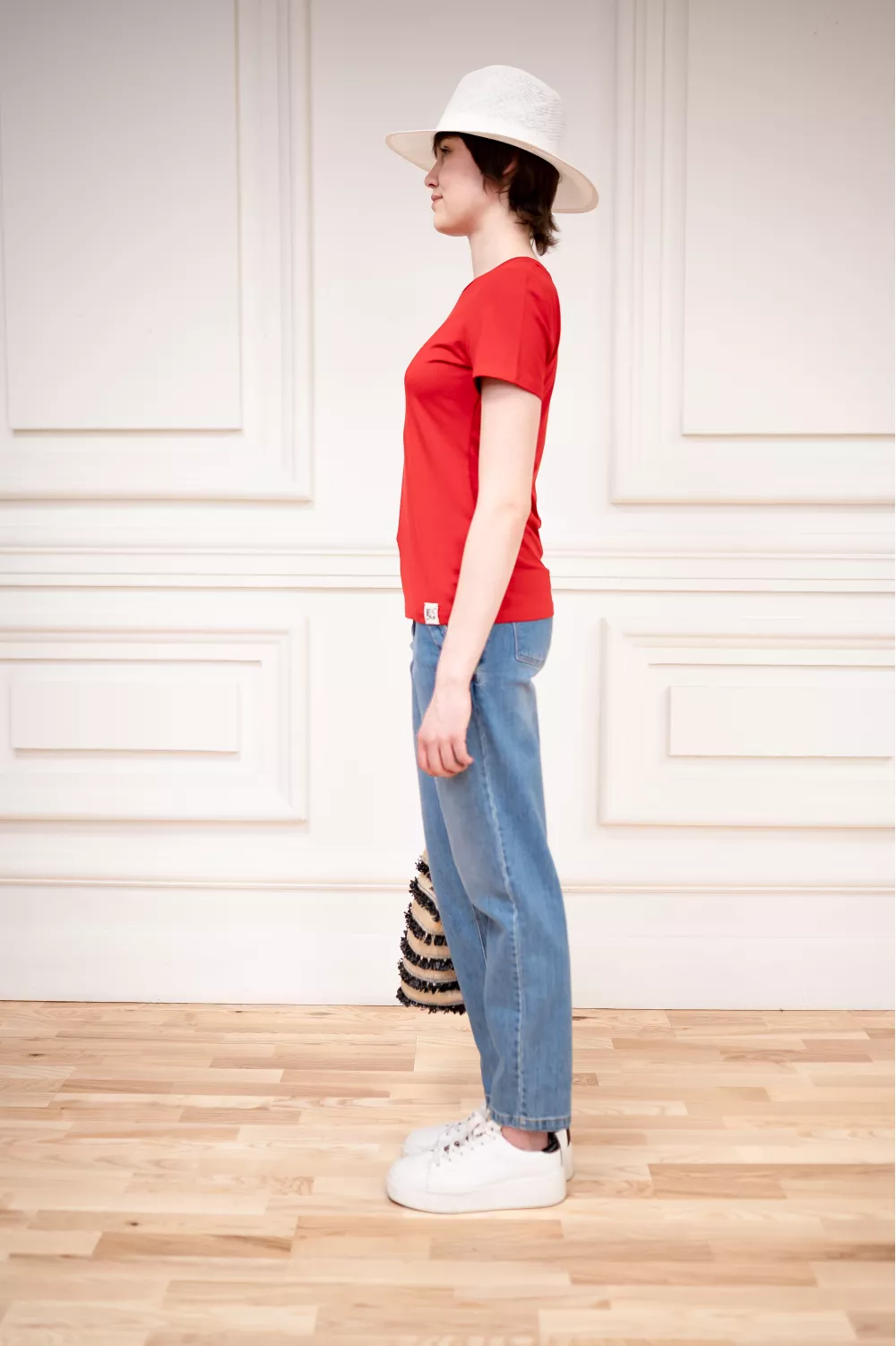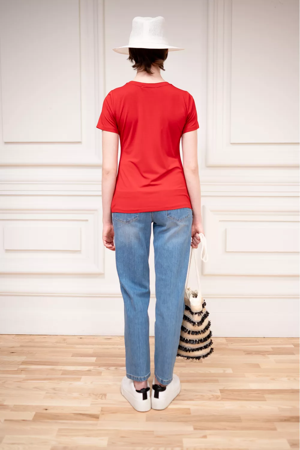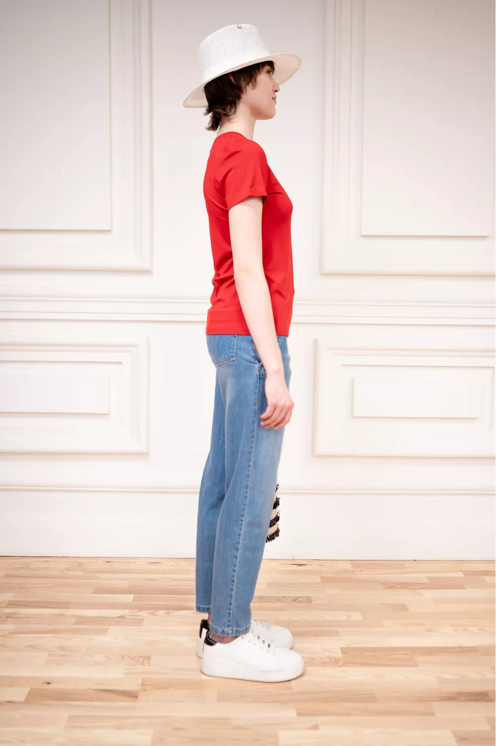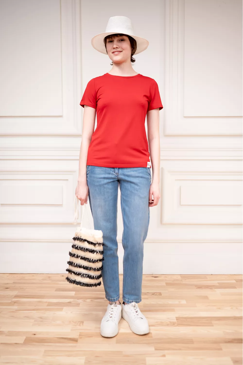 Базовая футболка приталенного покроя, являющегося незаменимой вещью в любом гардеробе.