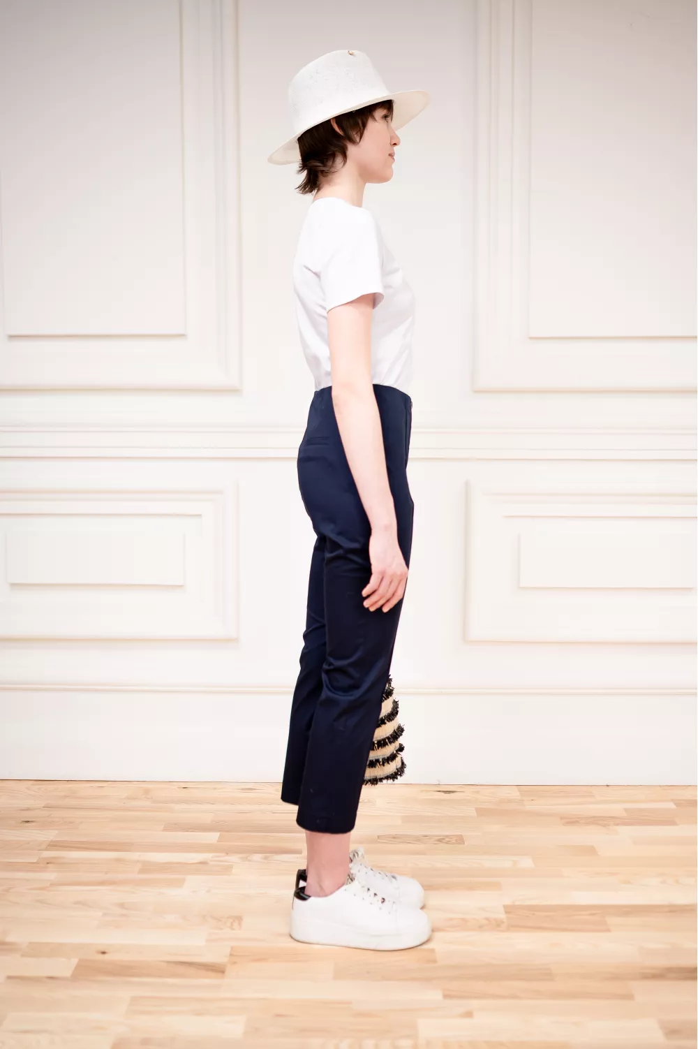 Функциональная модель брюк с внутренней скрытой резинкой создает идеальную посадку по талии. Стрелка по длине делает визуально ноги длиннее, а укороченная длина позволяет комбинировать с разной обувью.