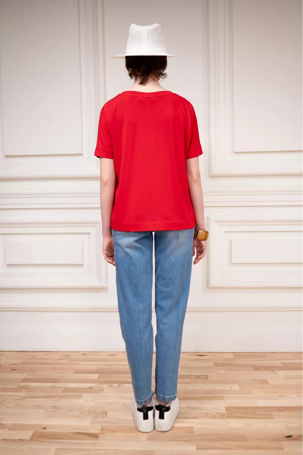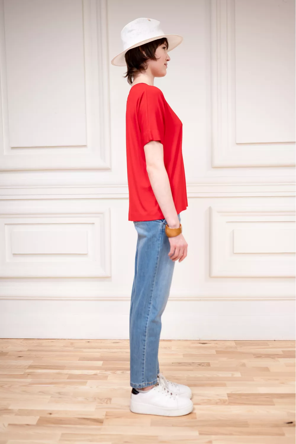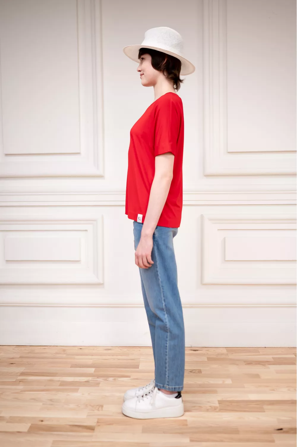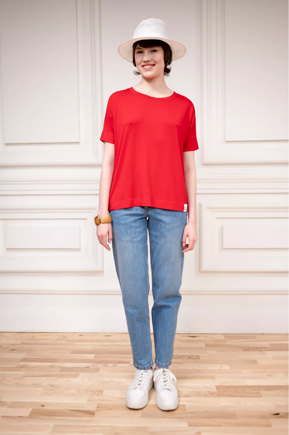 Базовая модель футболки, которая за счет прямого кроя хорошо дополняет разноплановые образы.