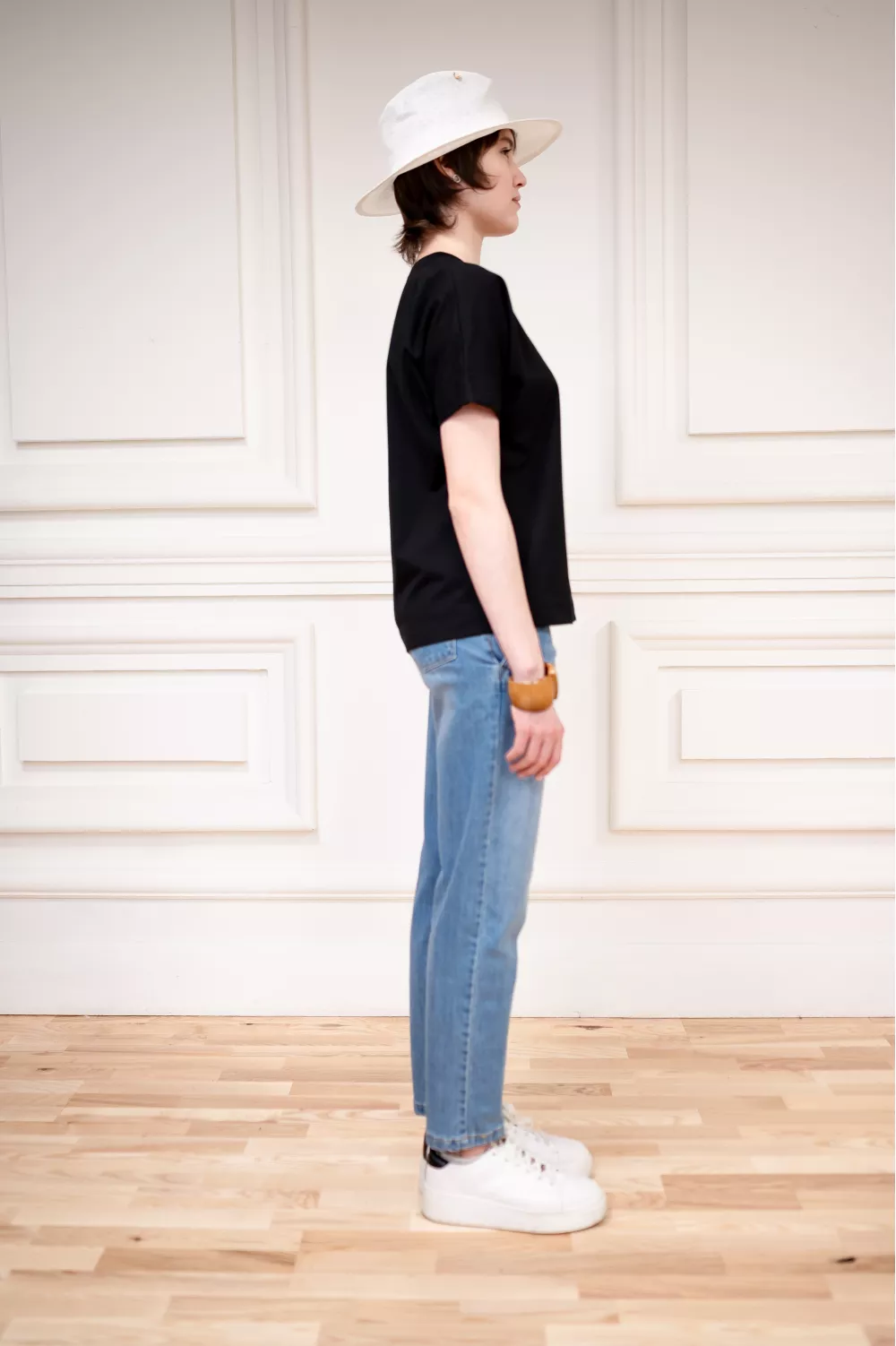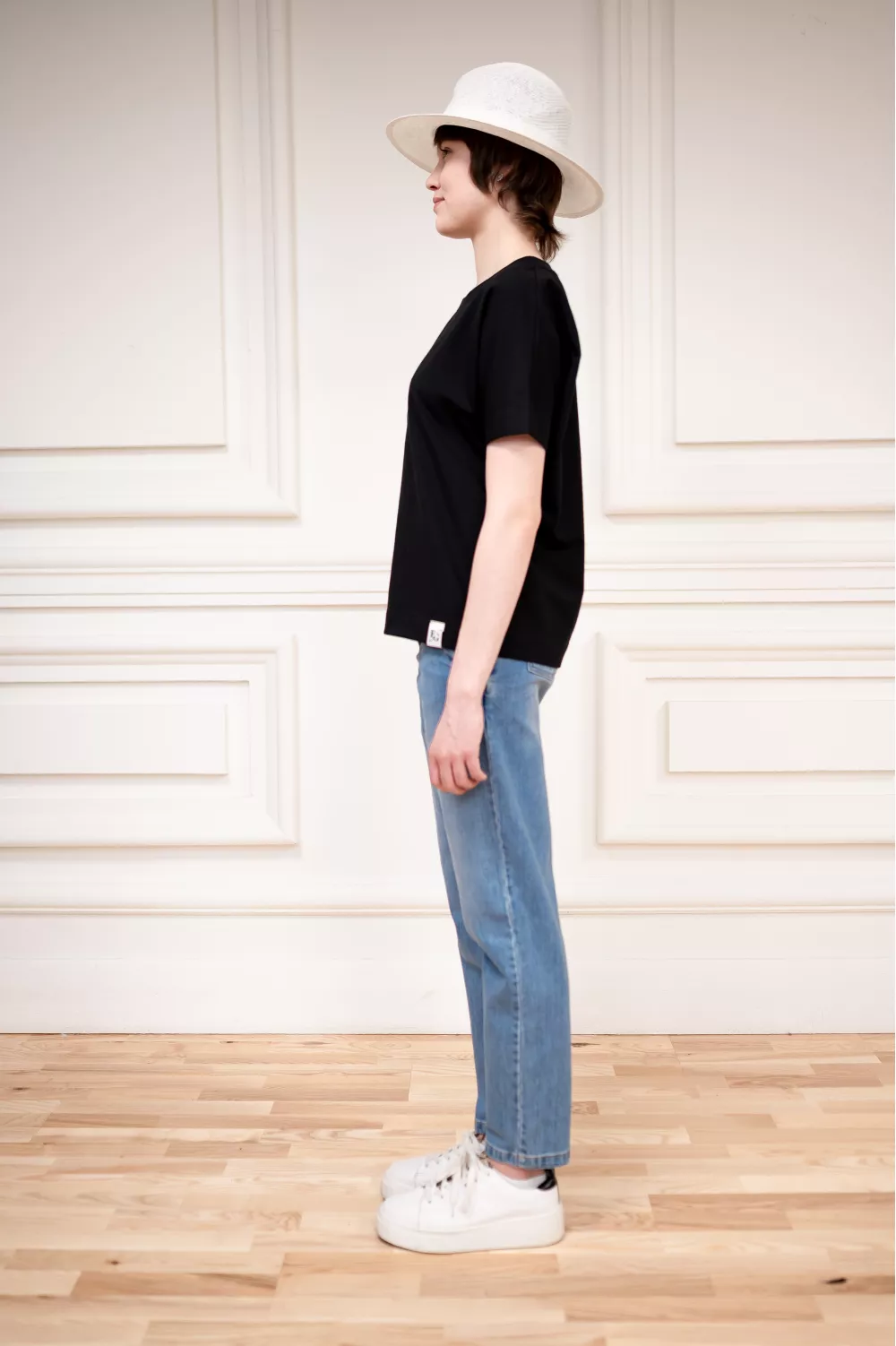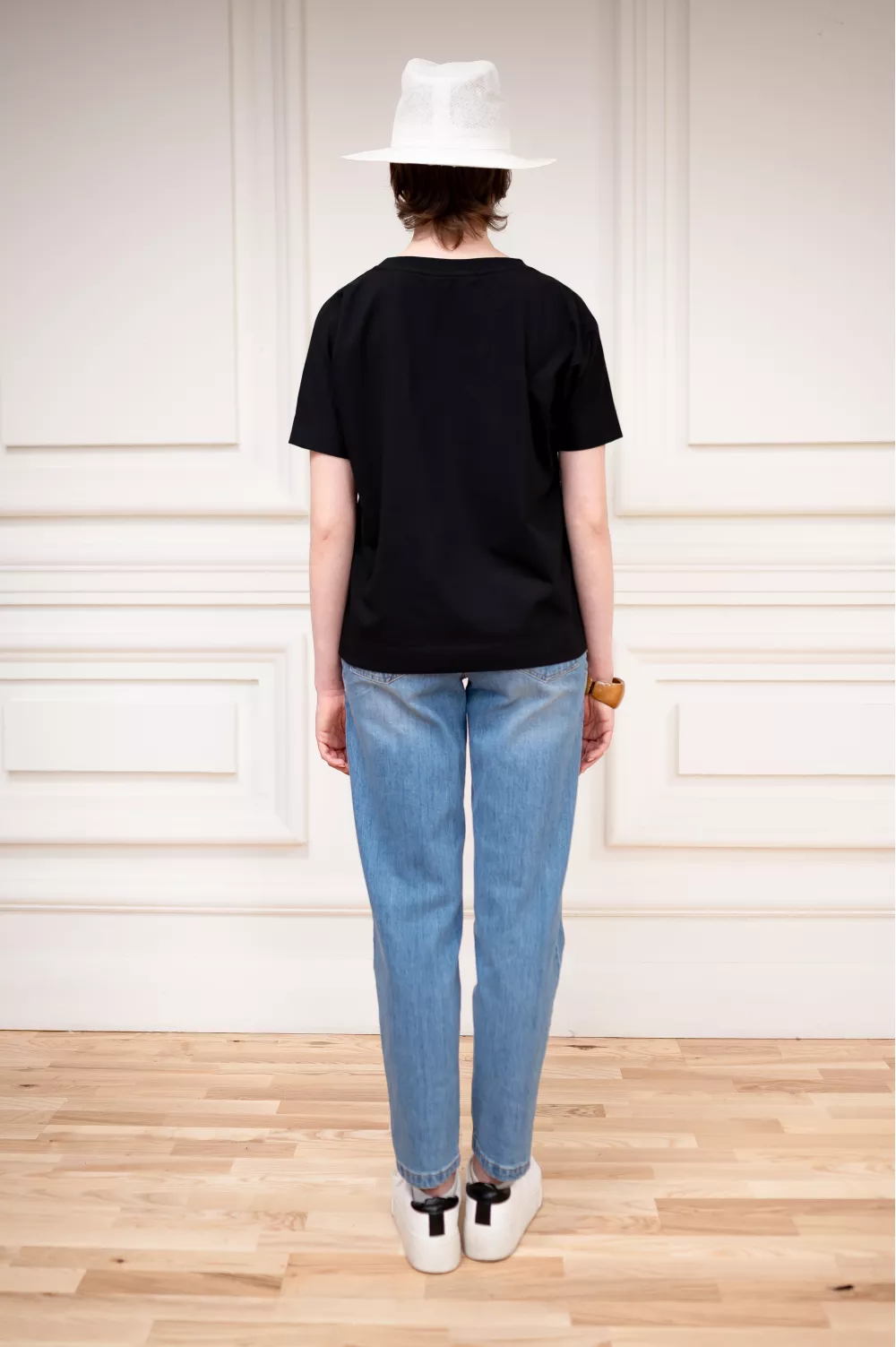 Базовая модель футболки, которая за счет прямого кроя хорошо дополняет разноплановые образы.