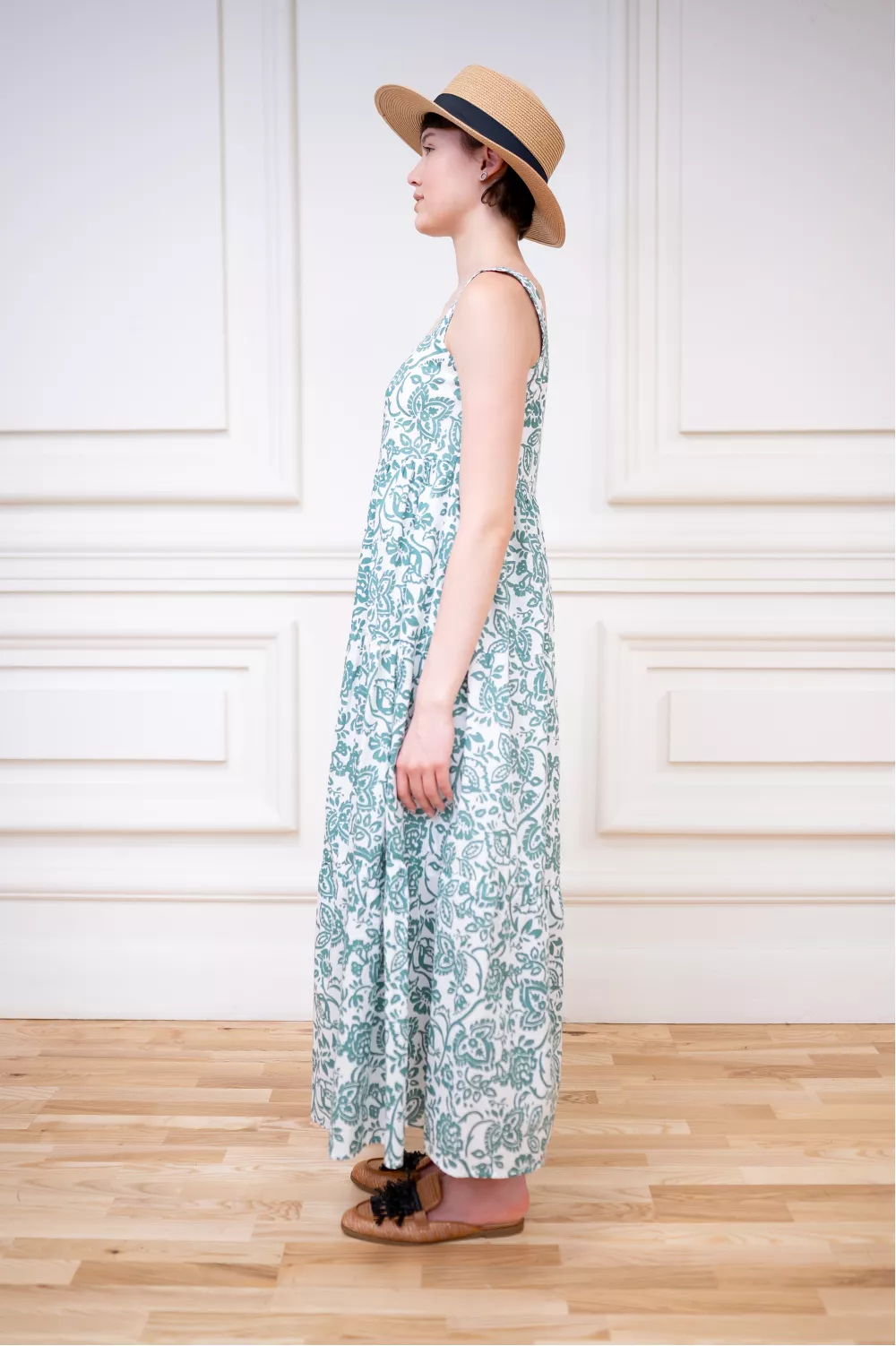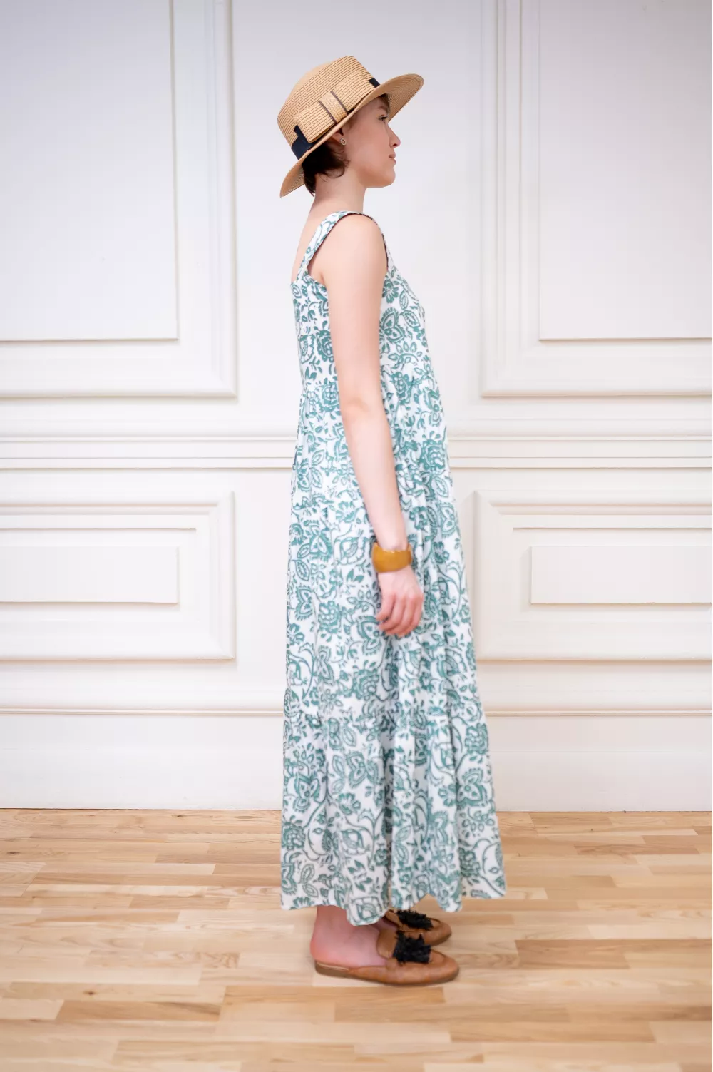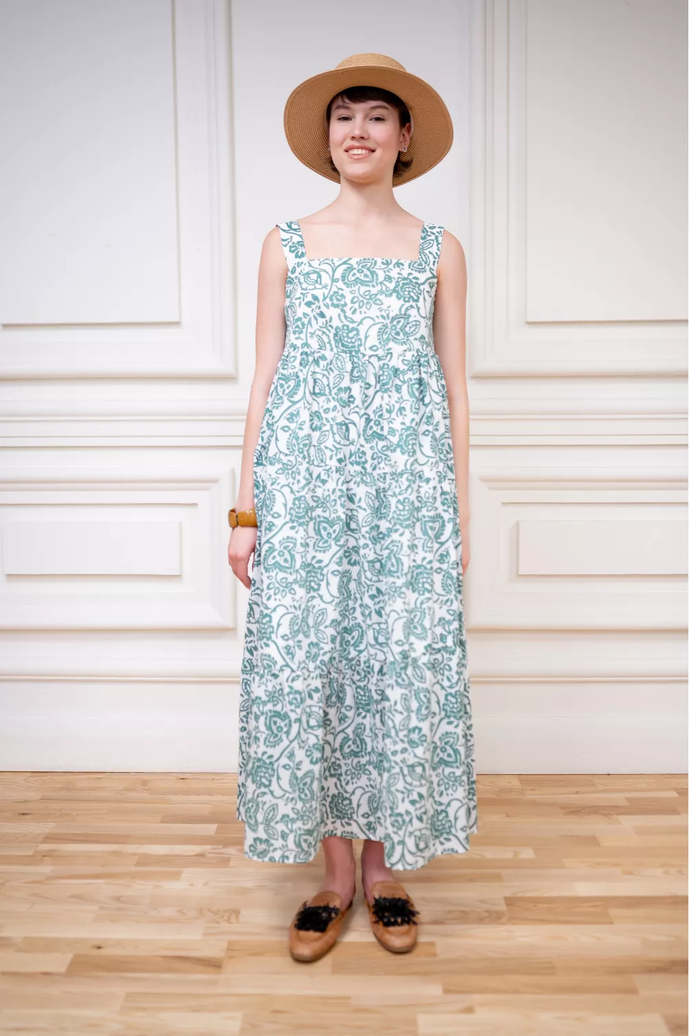 Пышный сарафан на широких бретелях с юбкой солнце-клеш идеальный вариант на летнее время и отдых. Модель не имеет застежек, поэтому очень легка в повседневной жизни