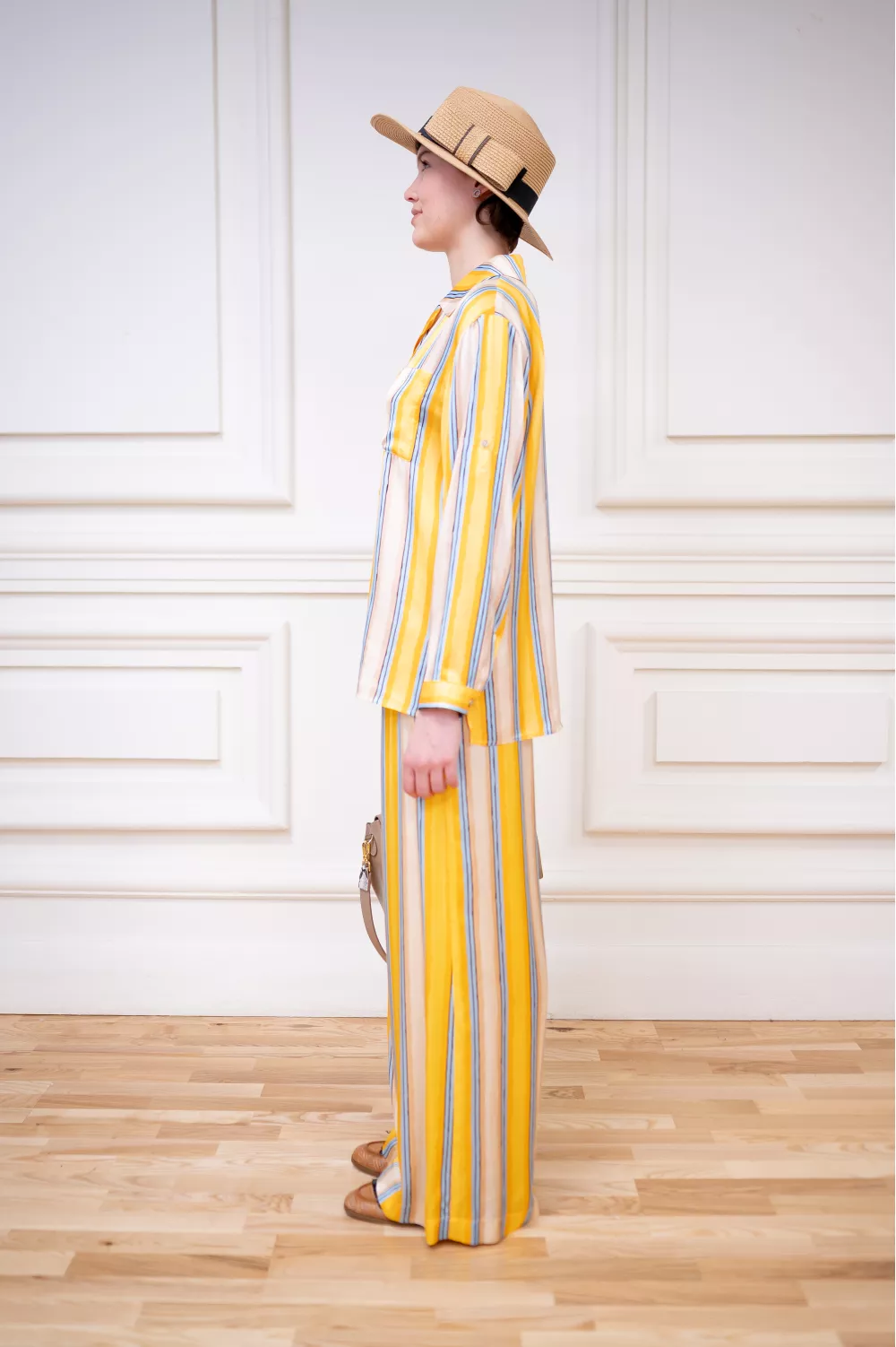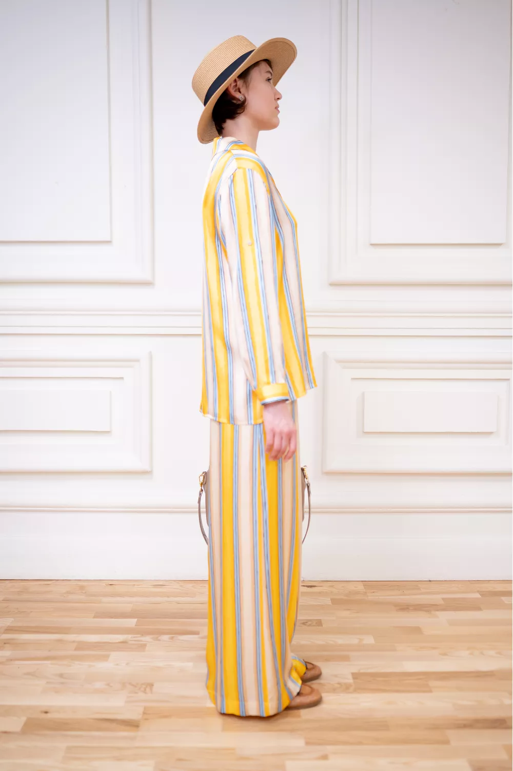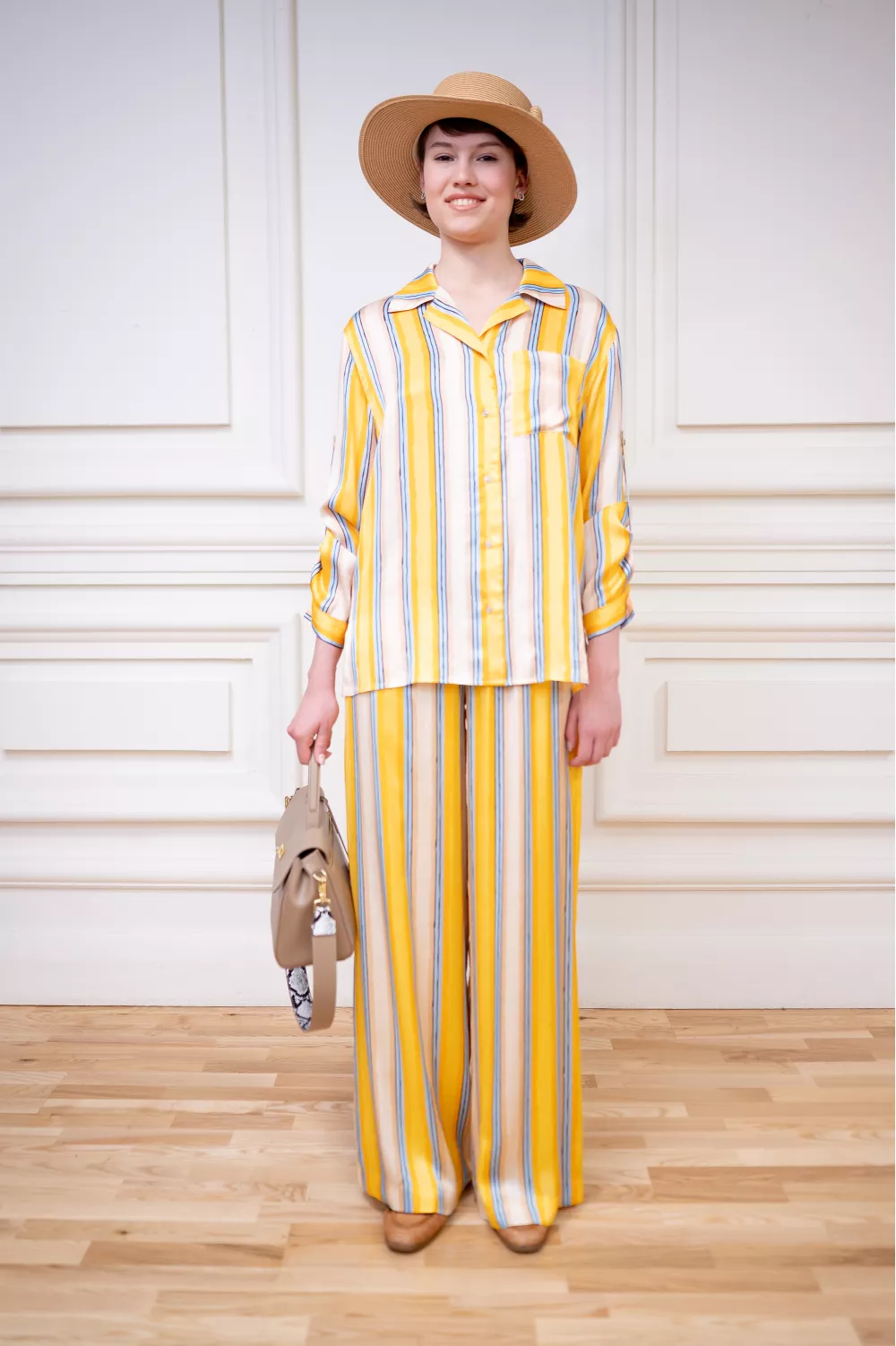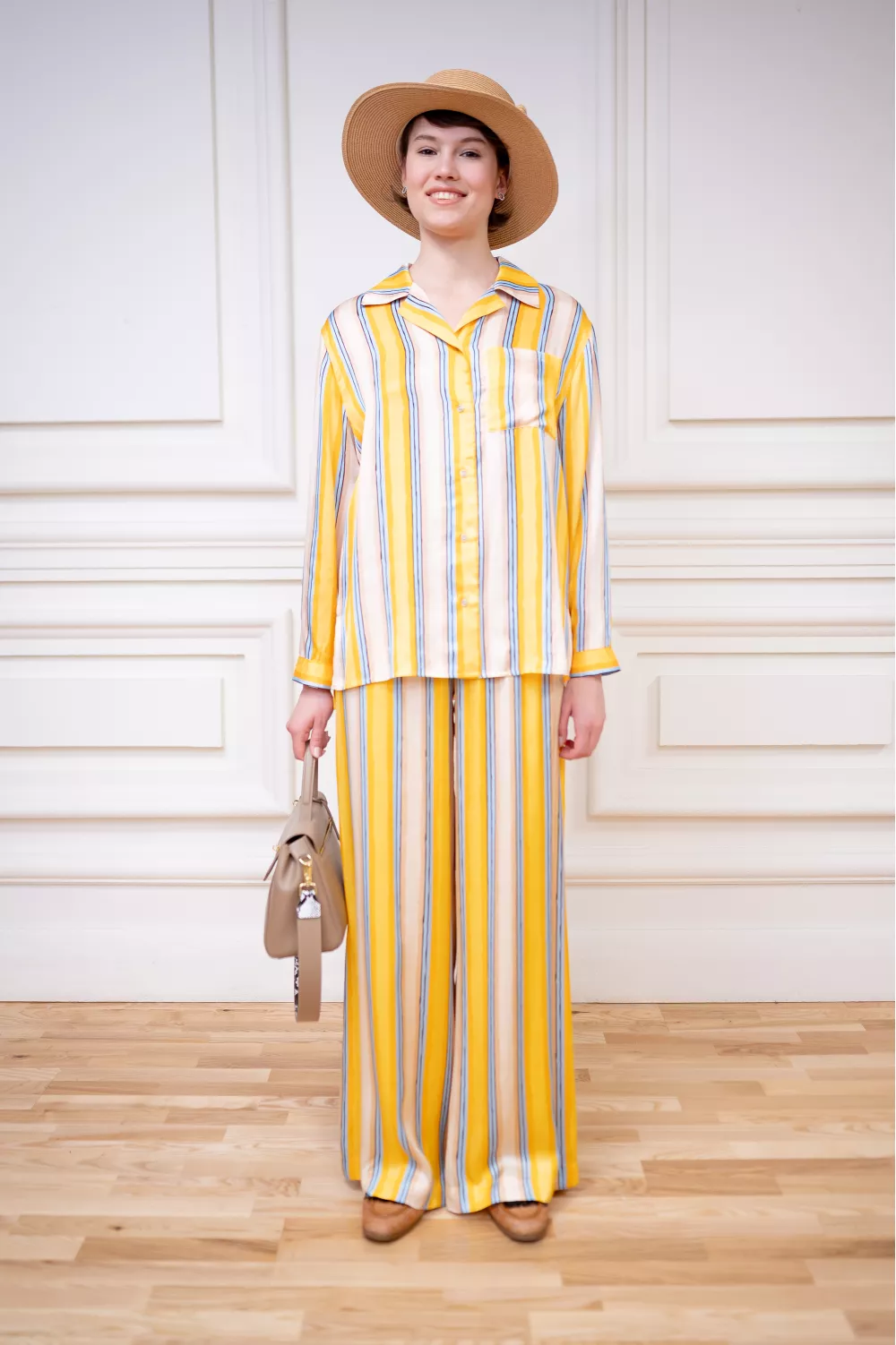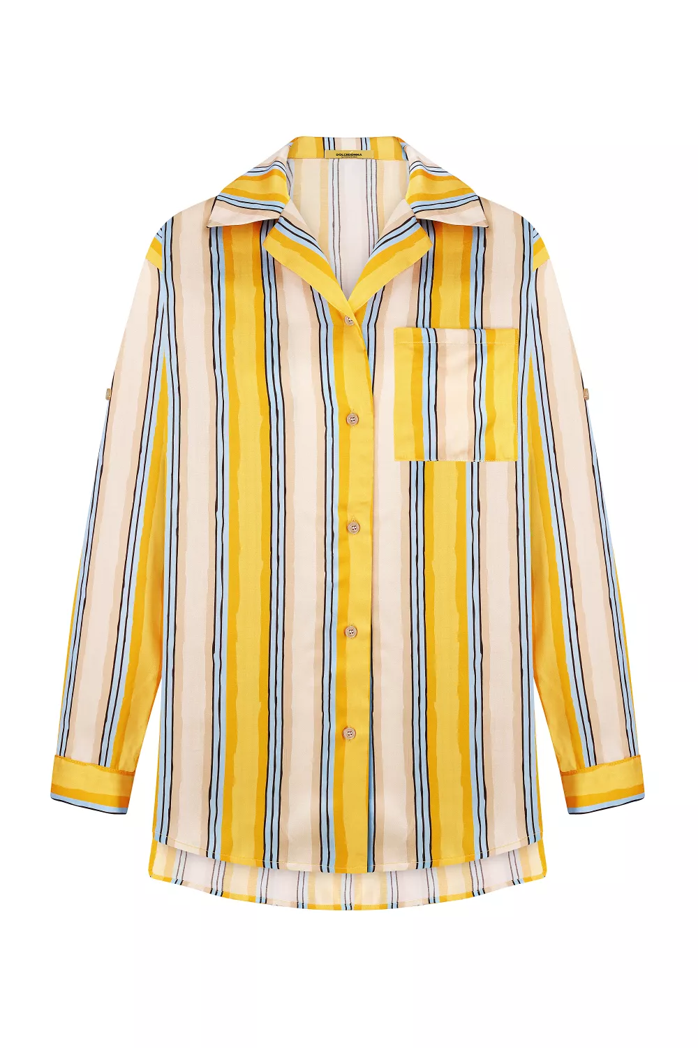 Оверсайз рубашка из легкой вискозы, похожей на шелк, будет приятно холодить в летнюю жару. Прекрасно сочетается с аналогичными брюками свободного кроя на резинке.