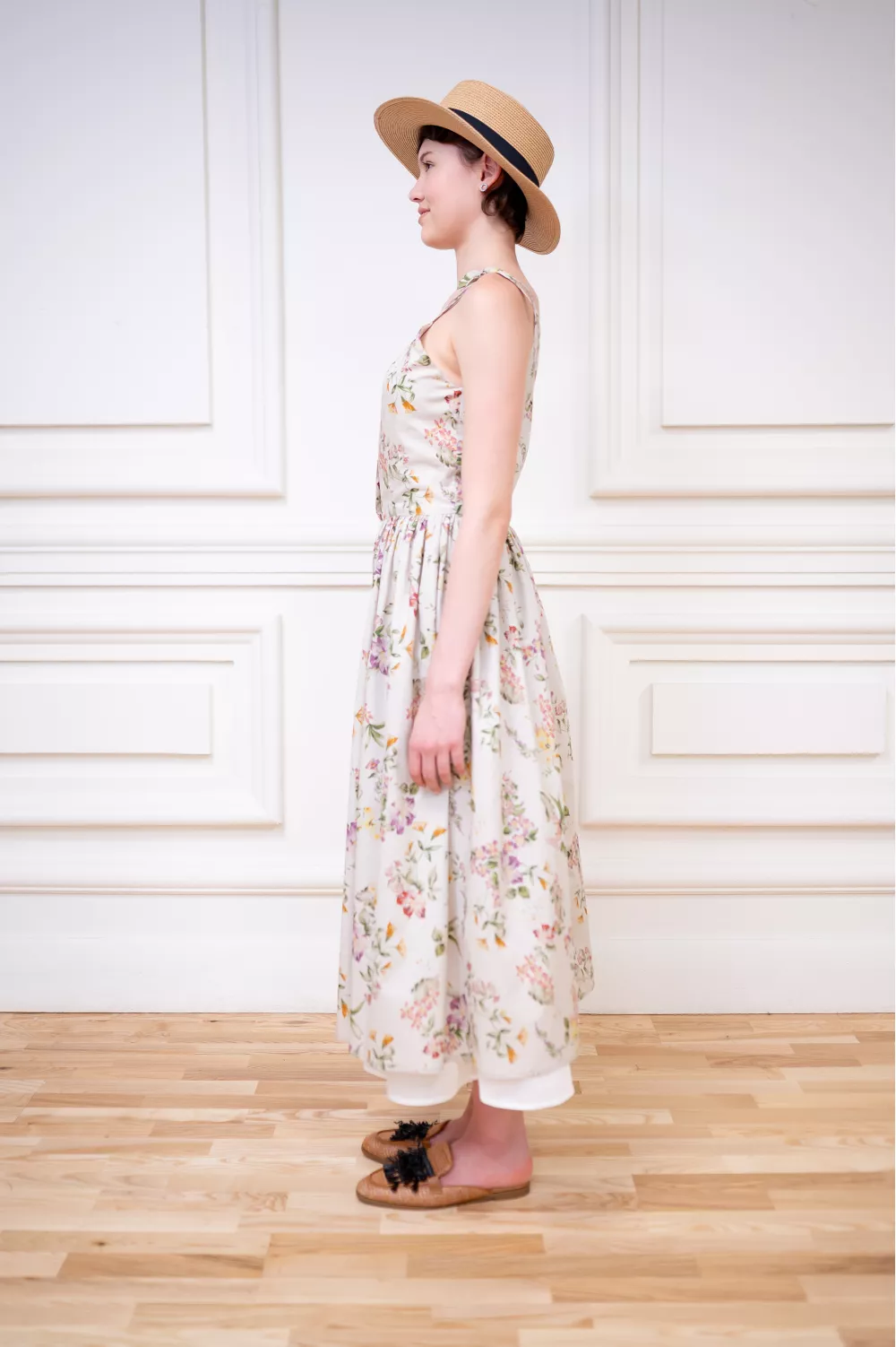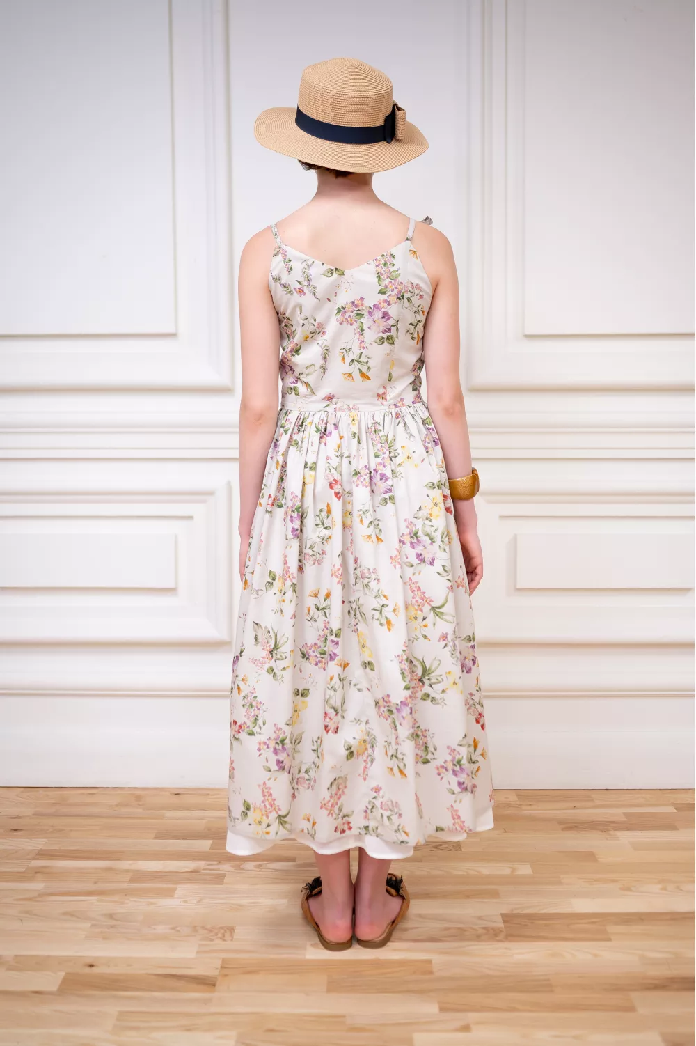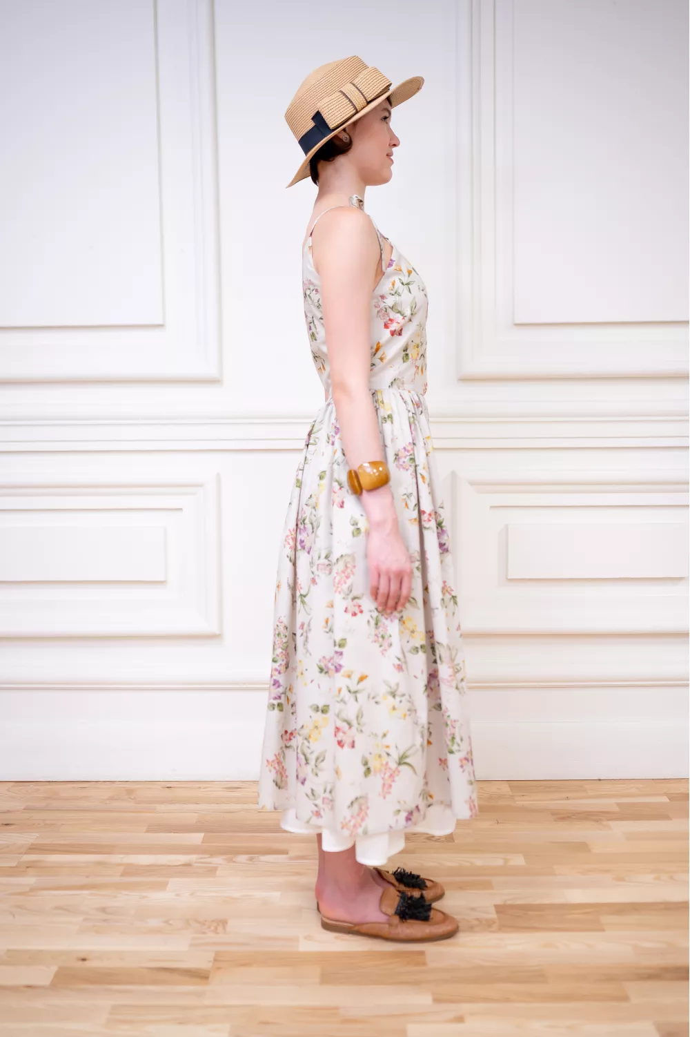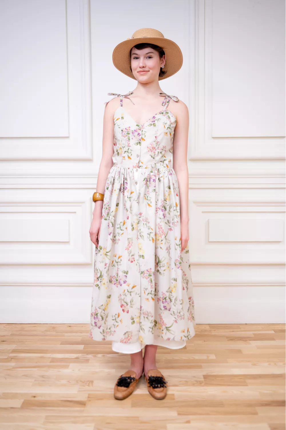 Сарафан на тонких бретелях в стиле прованс отшит из натурального итальянского хлопка имеет легкий вшитый подюбник на пуговицах и бретели на завязках, что придает модели романтического вида.