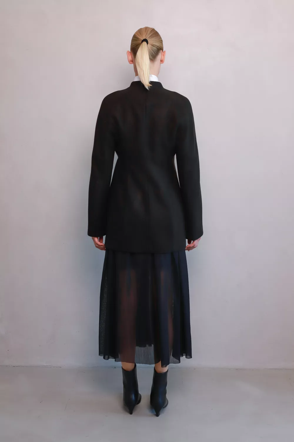 Этот жакет станет элегантной альтернативой классическому пиджаку – он все равно красиво смотрится с брюками, юбками и платьями.