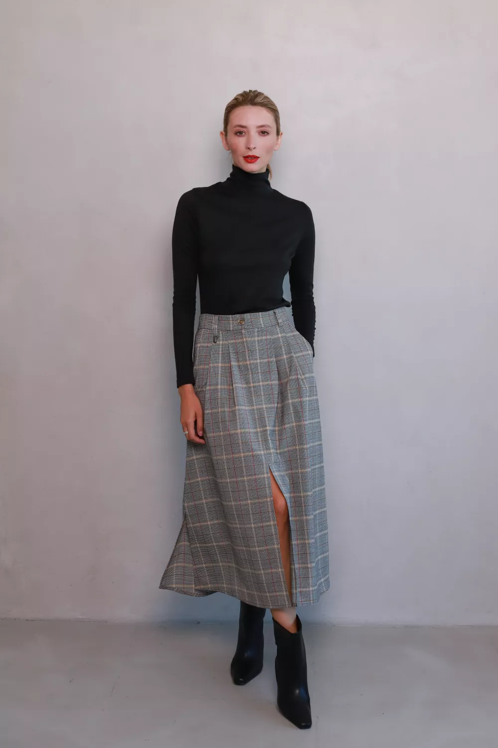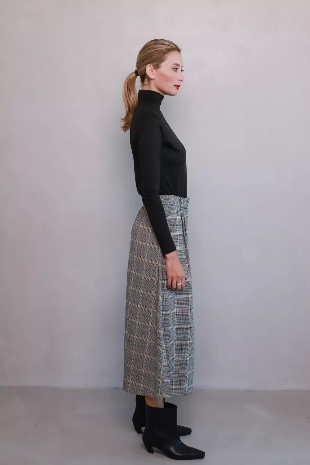 Эта юбка является универсальным элементом, который можно легко соединить с базовыми топами и жакетами или внести нотку акцента с помощью грубых ботинок и ярких аксессуаров.