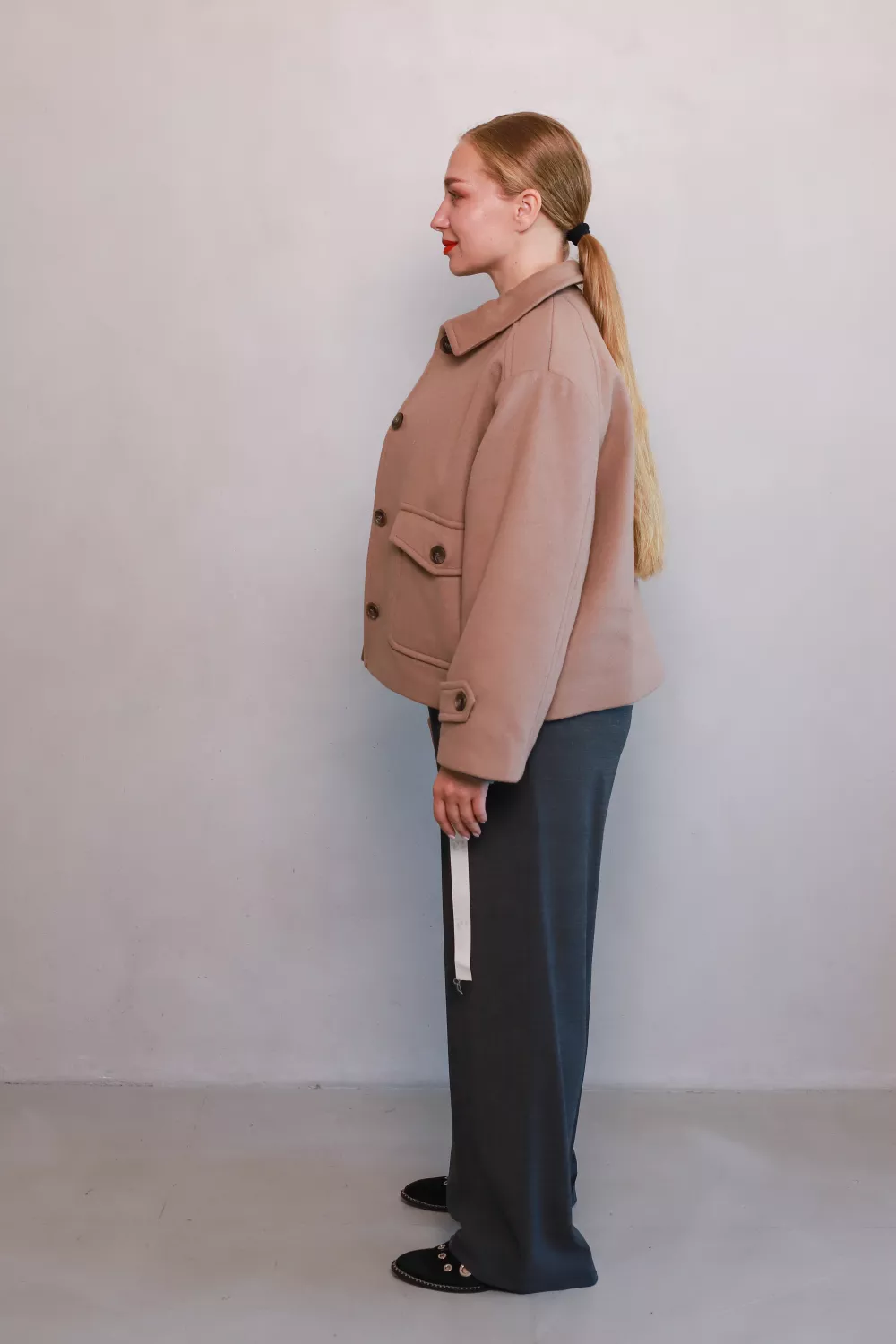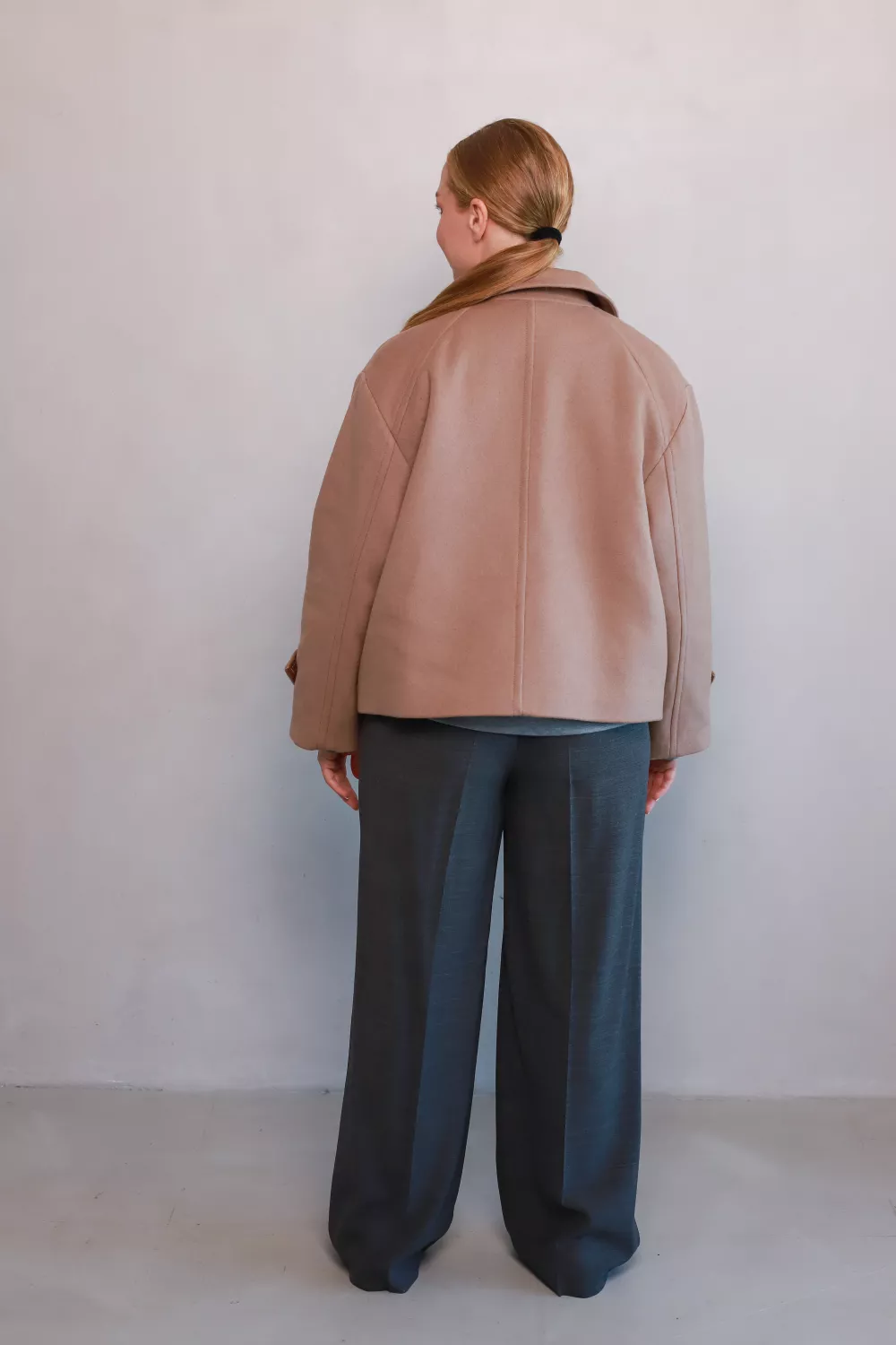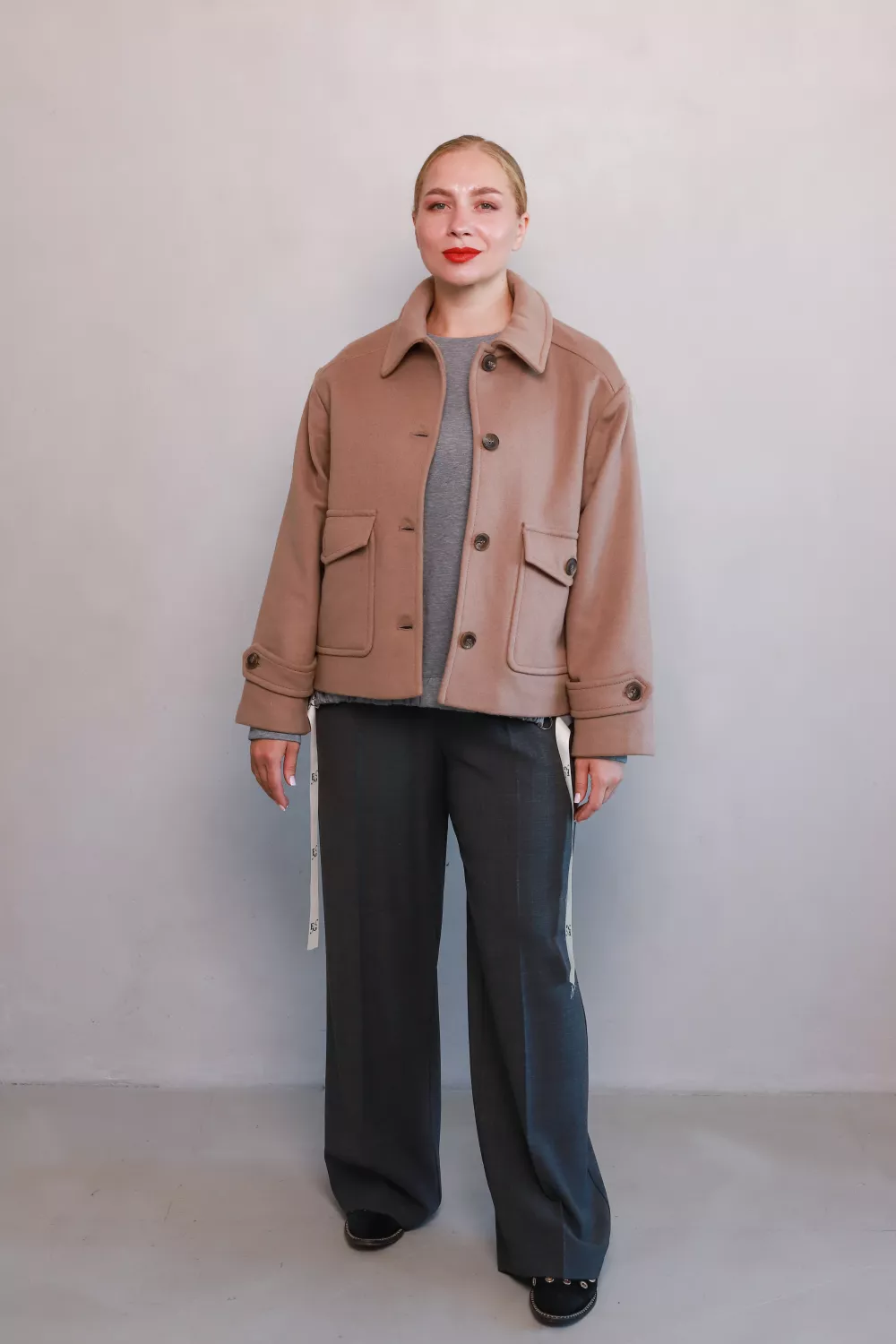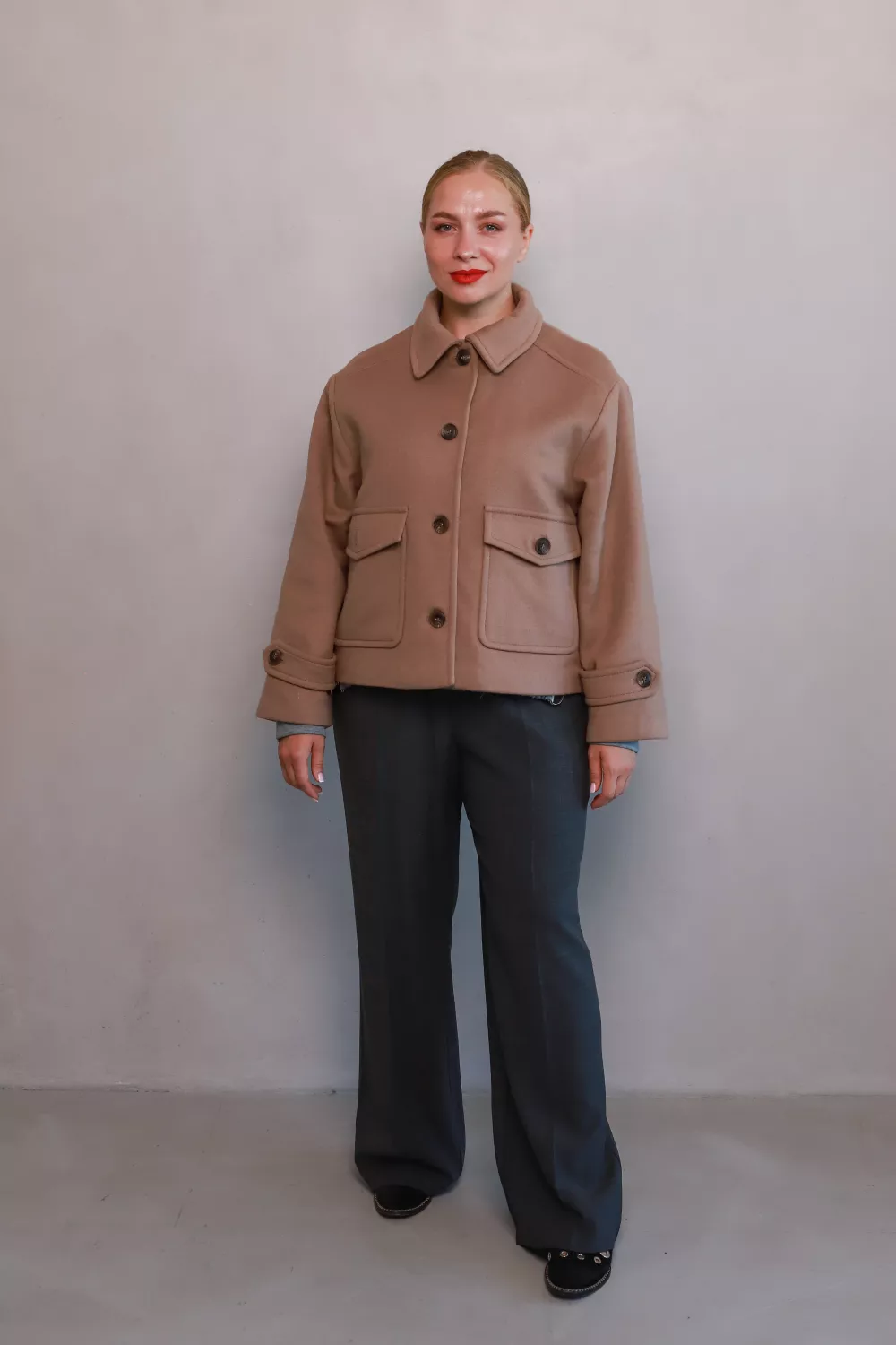 Стиль не всегда в тренде. Это пальто из натуральной шерсти сочетает комфорт, практичность и утонченную эстетику. Лаконичный крой с акцентом на больших накладных карманах создает современный городской образ, а теплый бежевый оттенок делает его идеальным для любых сочетаний.