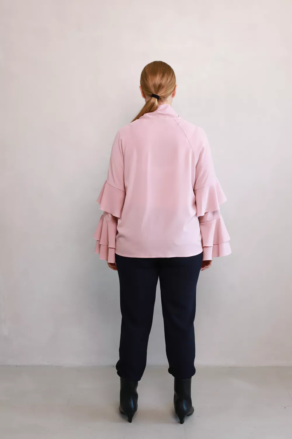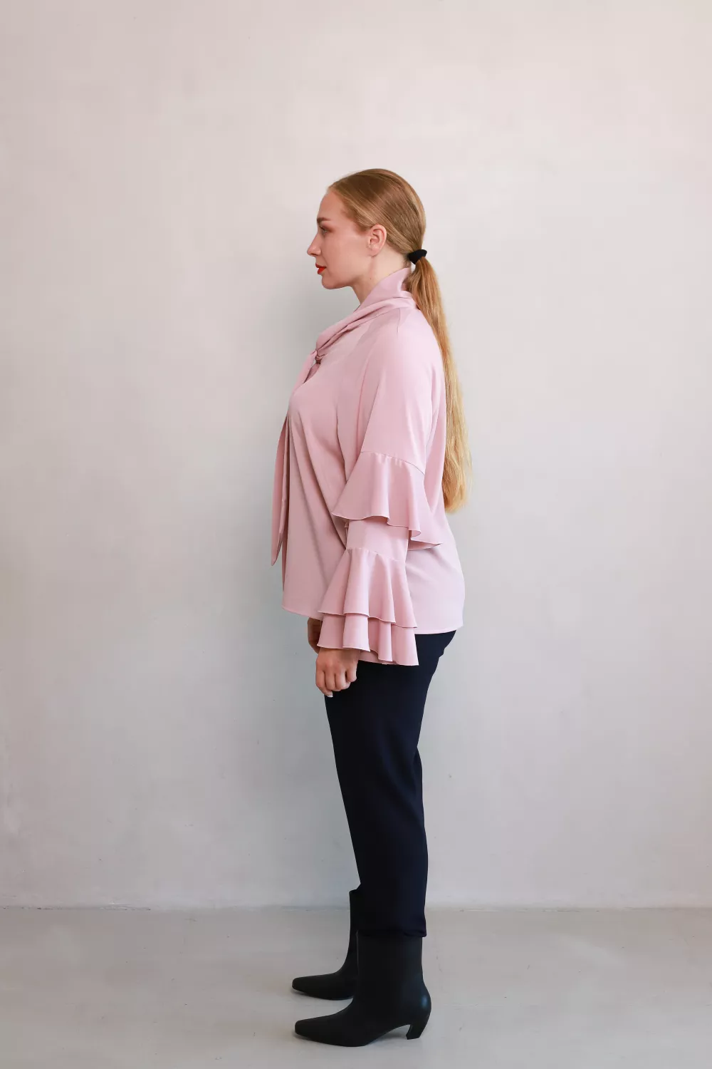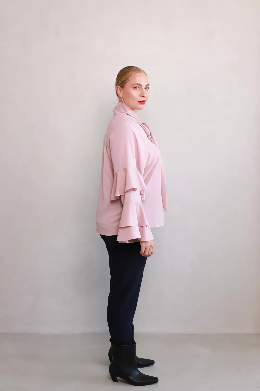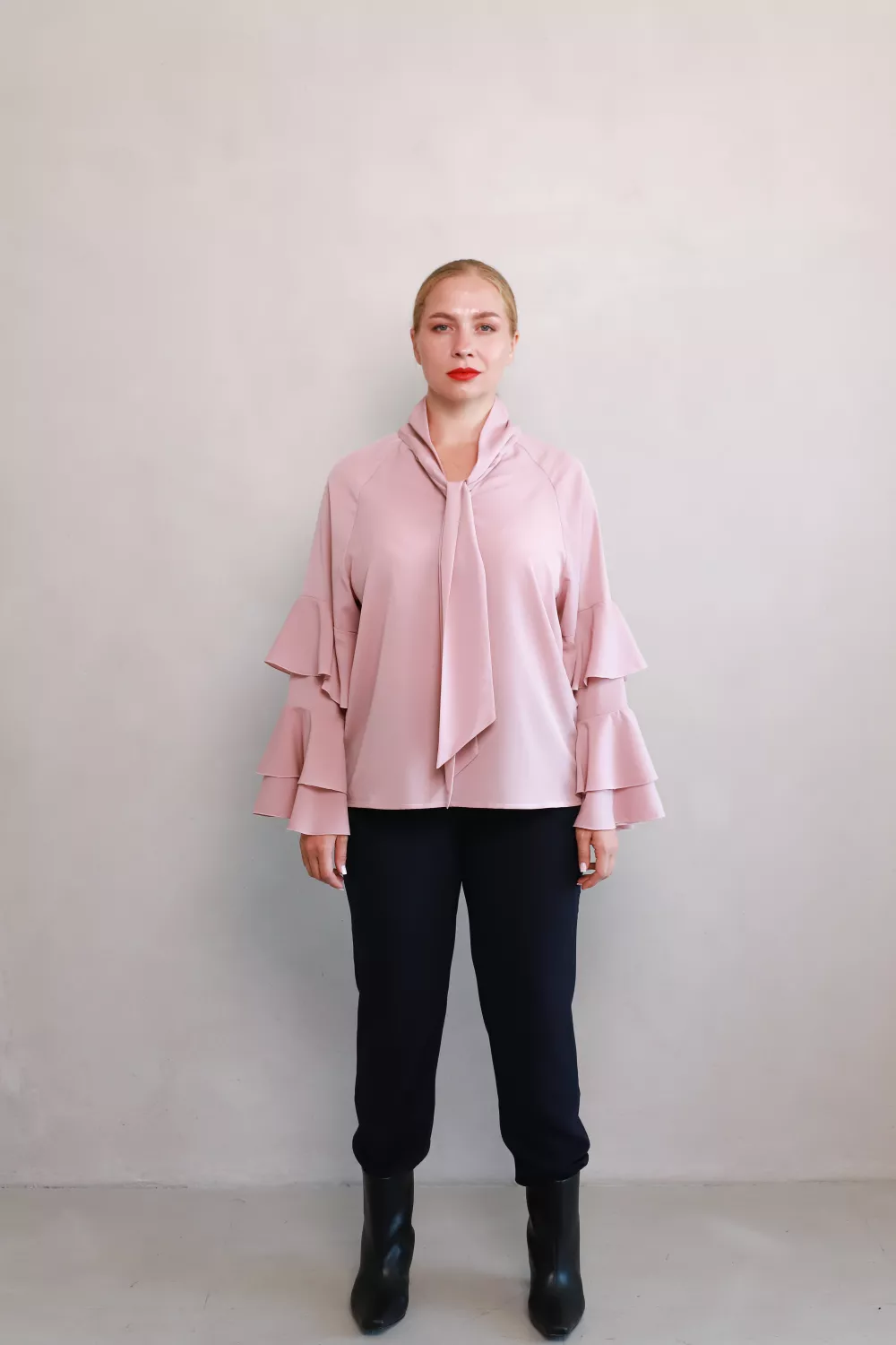 Встречай свою новую женственную музу – блузу Зендая от Dolcedonna. Нежный пудровый цвет создает лёгкий зефирный акцент. Переработанный полиэстр подарит тебе самые нежные ощущения, а бантик на шее и игривые рюши на рукавах – утонченную романтику и современную элегантность.