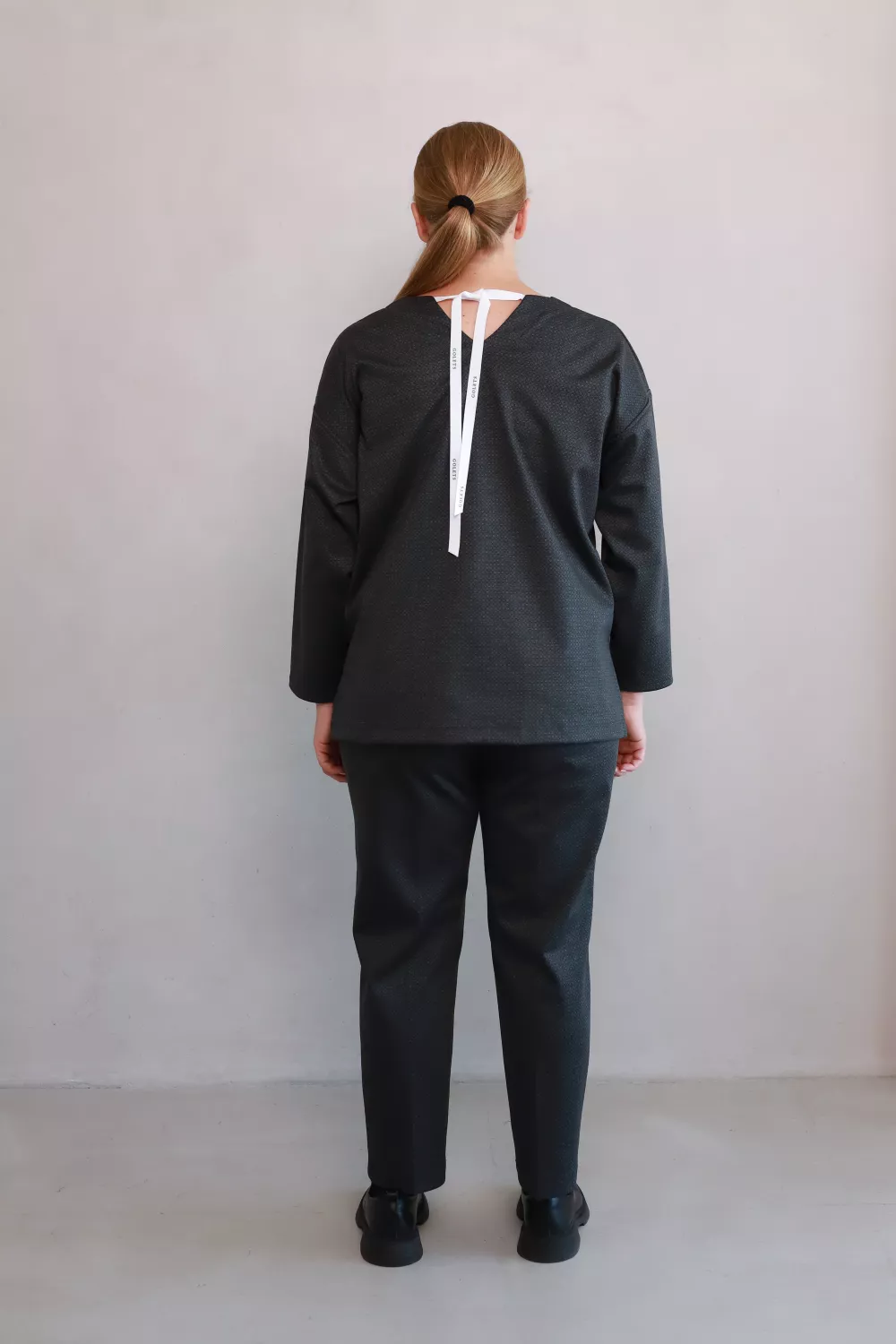 Вискозная черно-серая кофта свободного кроя с завязками на спине Колман