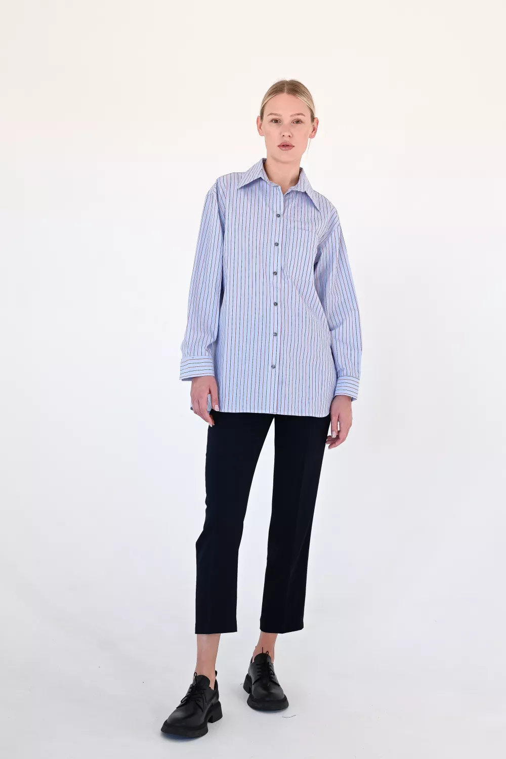 ✔Нейтральный голубой оттенок – универсальный, работает как база под галстук, жакет или как самостоятельный акцент;