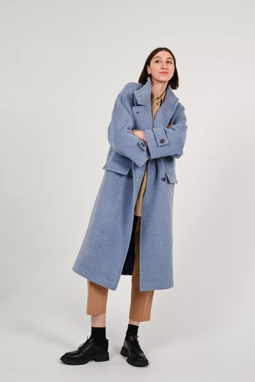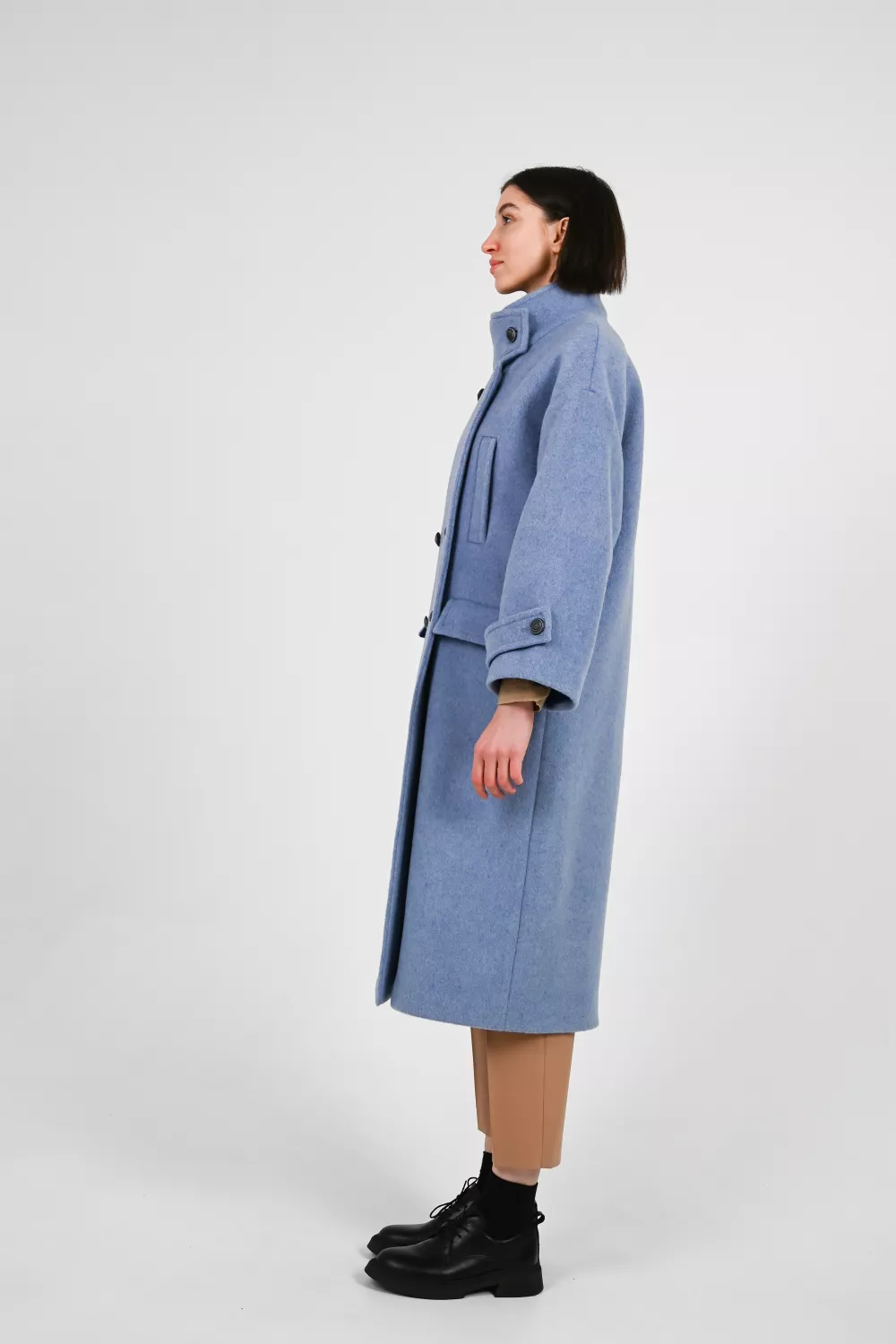 Пальто «Элройс» – это сочетание изящного силуэта, нежного цвета и функциональности. В голубом оттенке, с патами и фасоном миди, оно становится идеальным акцентом в стилистике осенне-зимнего гардероба.